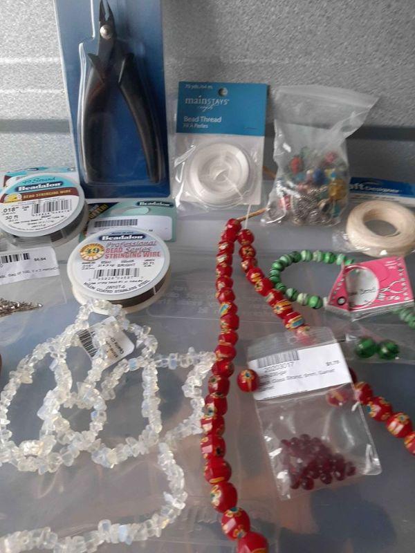 Lot of Jewelry Making Beads,Stringing Wire,Crimp Beads,Nipper Tool, Bead Thread