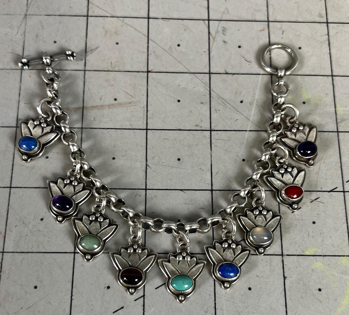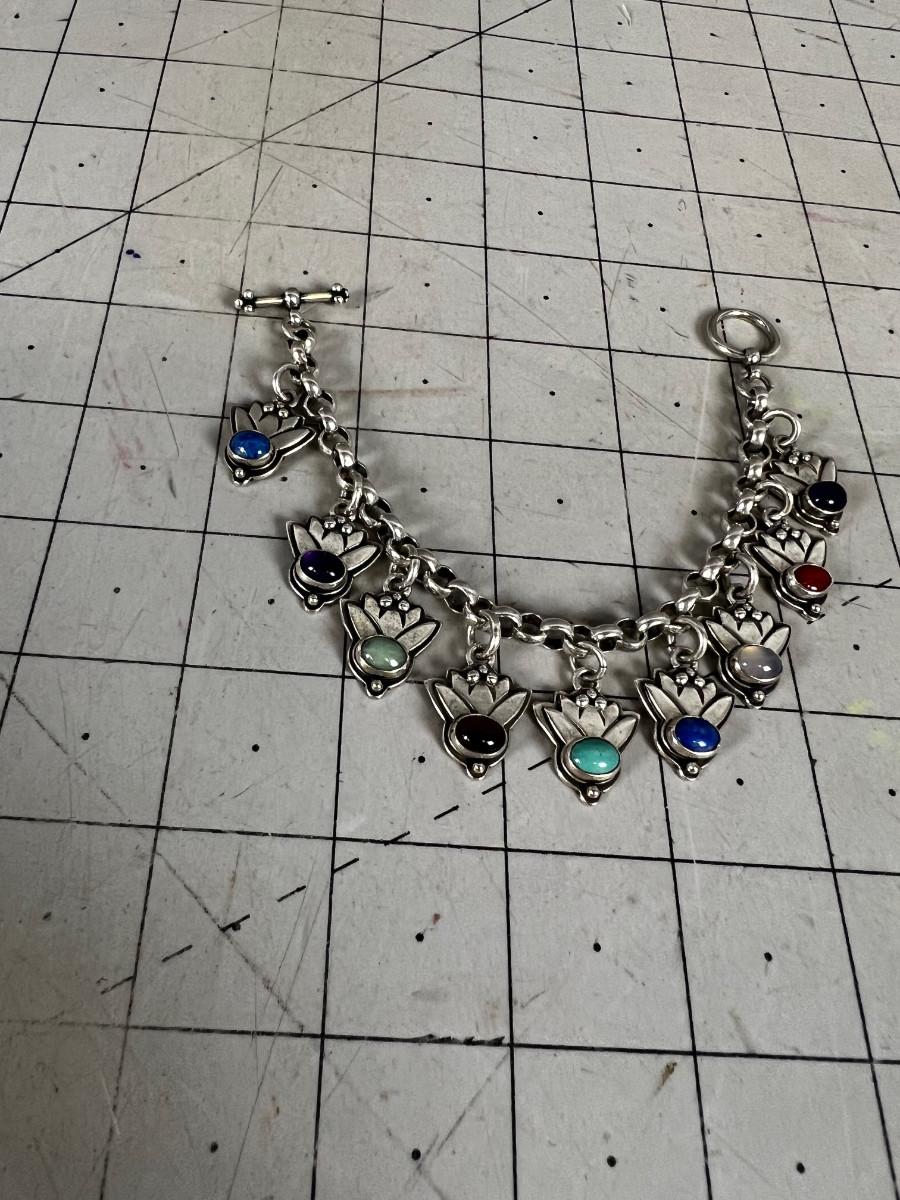 Jewelry Marked 925 Hand Crafted Charms with Lotus and Chakra Stones. NICE