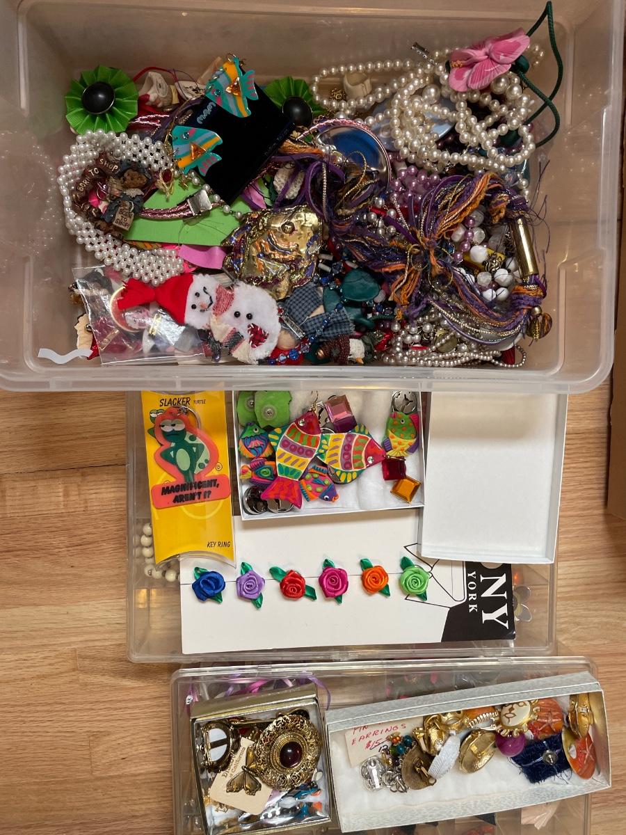 Jewelry organizers and tote of beaded jewelry