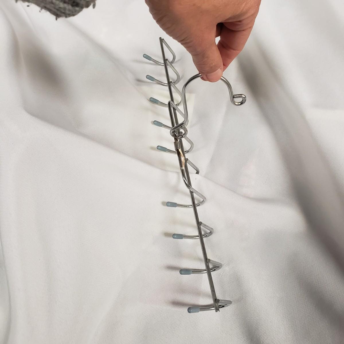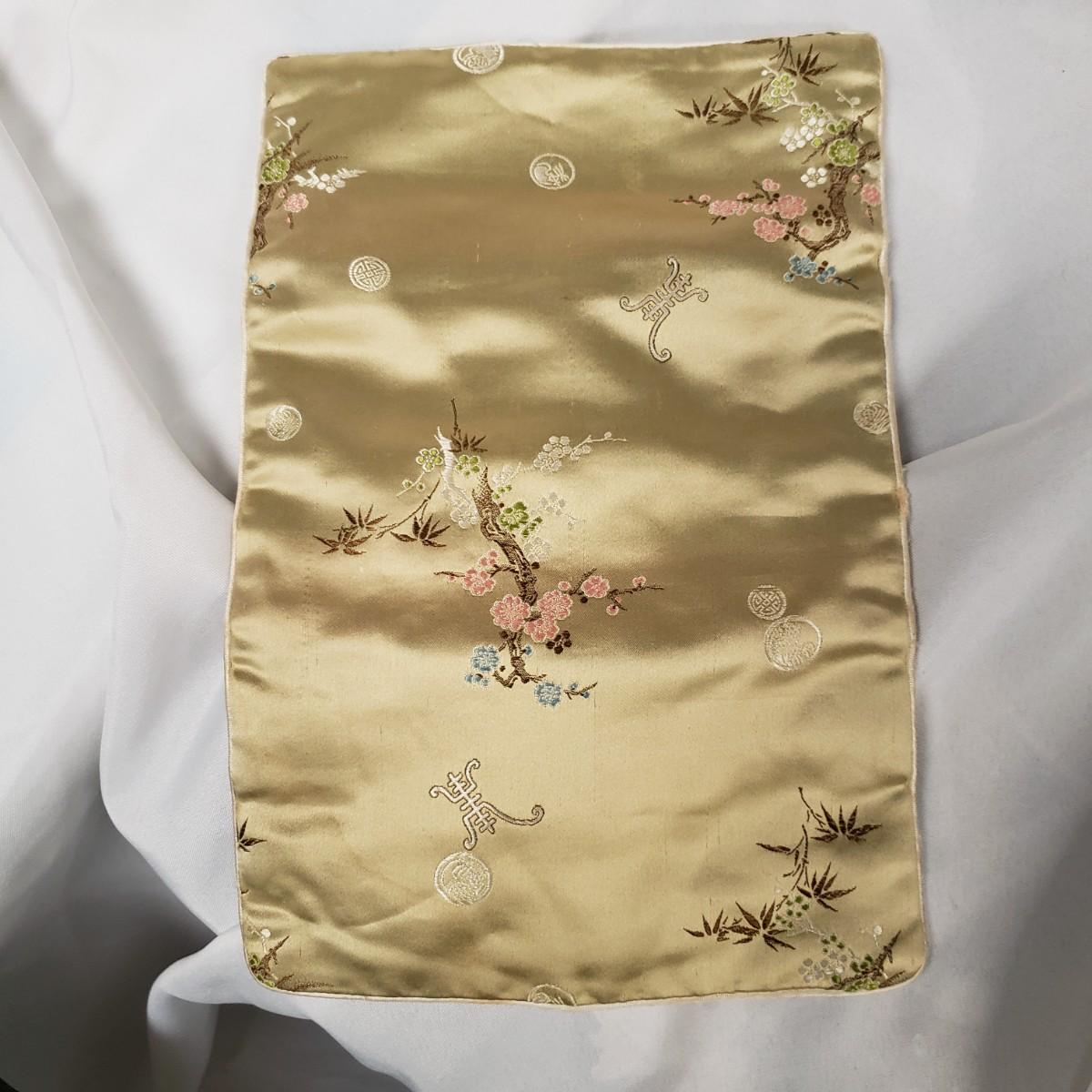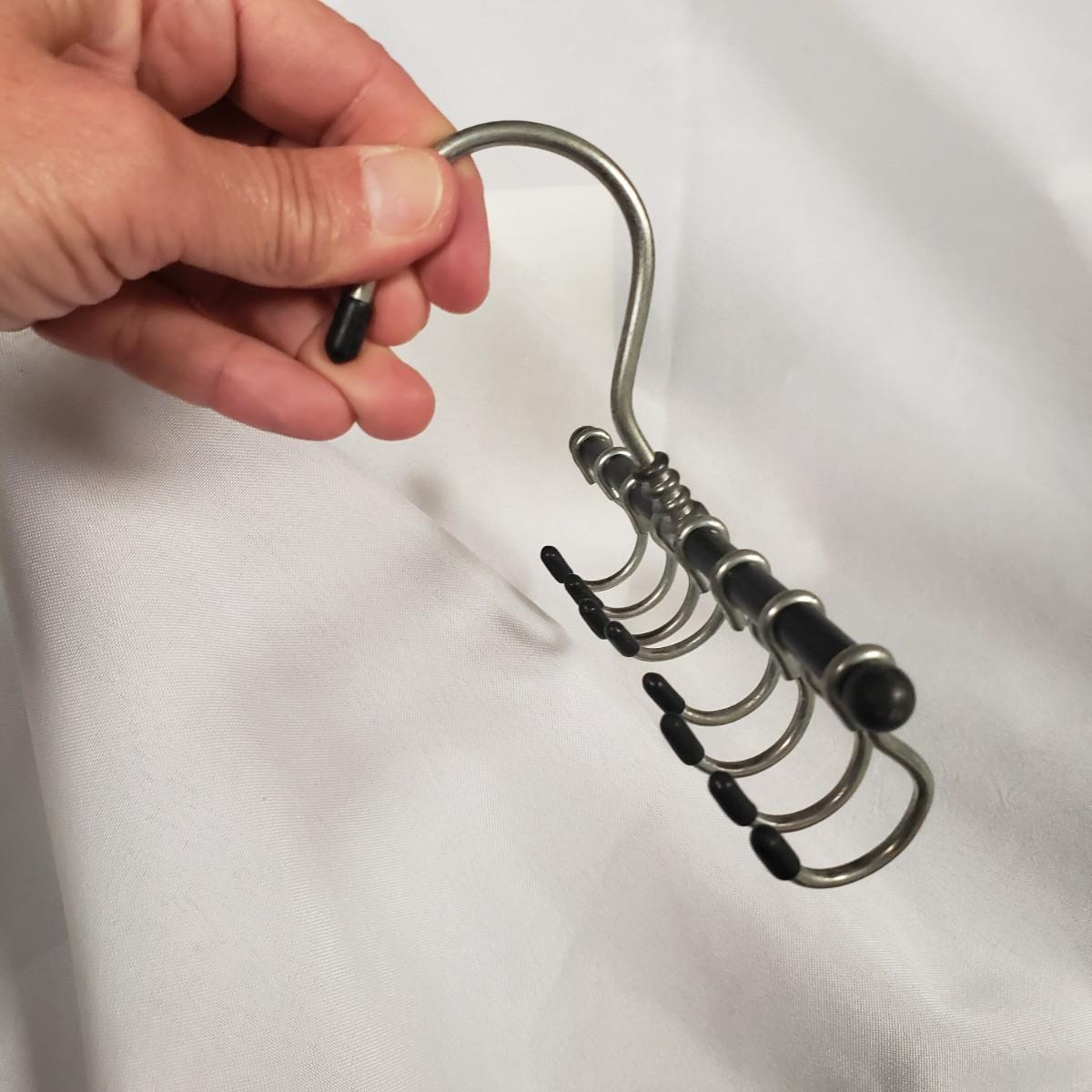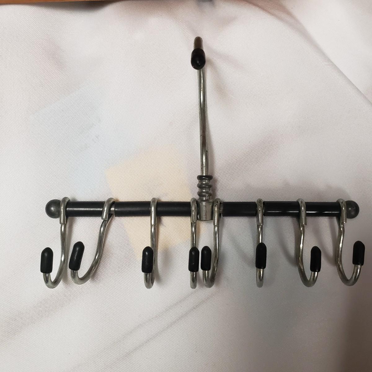 There are two wire racks that can also hang. The silk like material bag with oriental design can roll up for when you travel. The wooden earring rack measures 13" x 1" x 17"H. Finally, is a wooden jewelry box with a removable tray.
