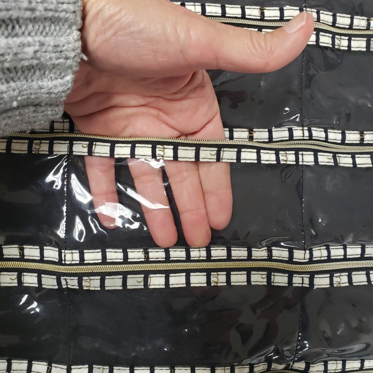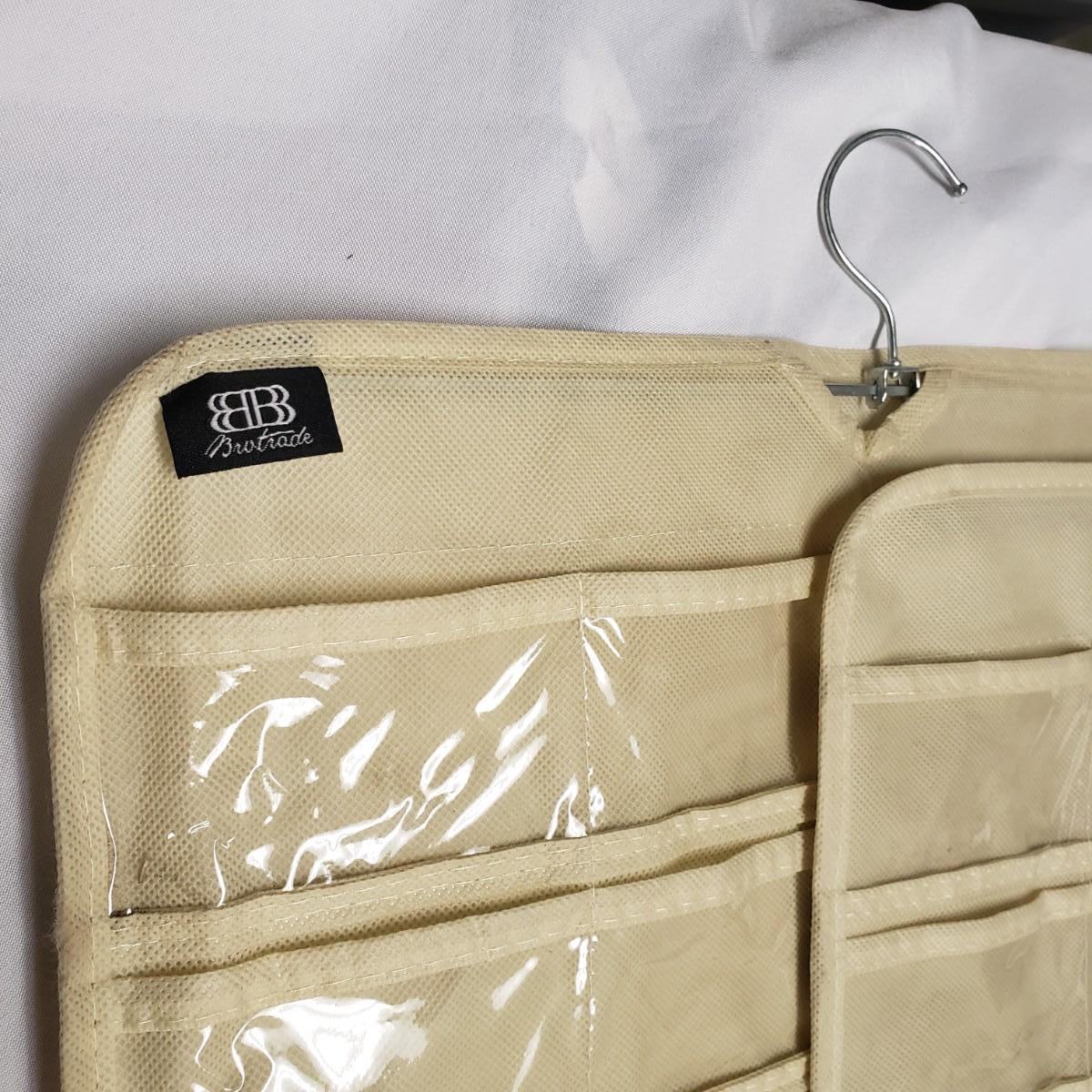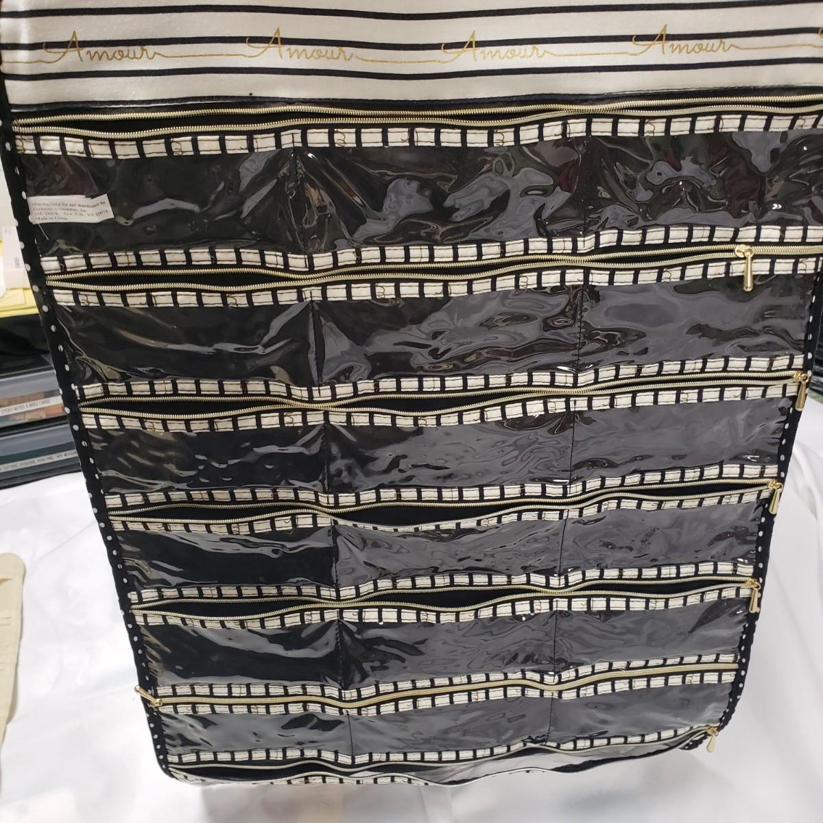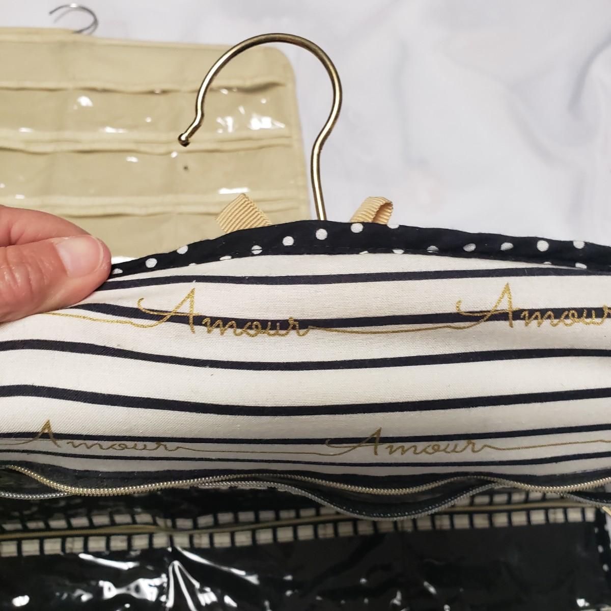 Get your jewelry organized! This lot contains three hanging jewelry bags with compartments on both sides! The two matching tan ones measure 17" x 31"H and have 80 pockets each!