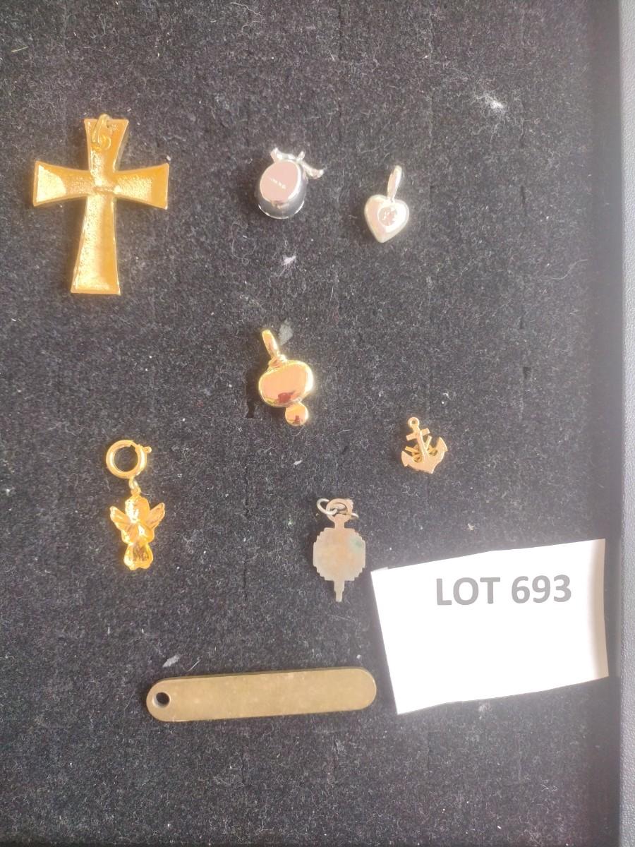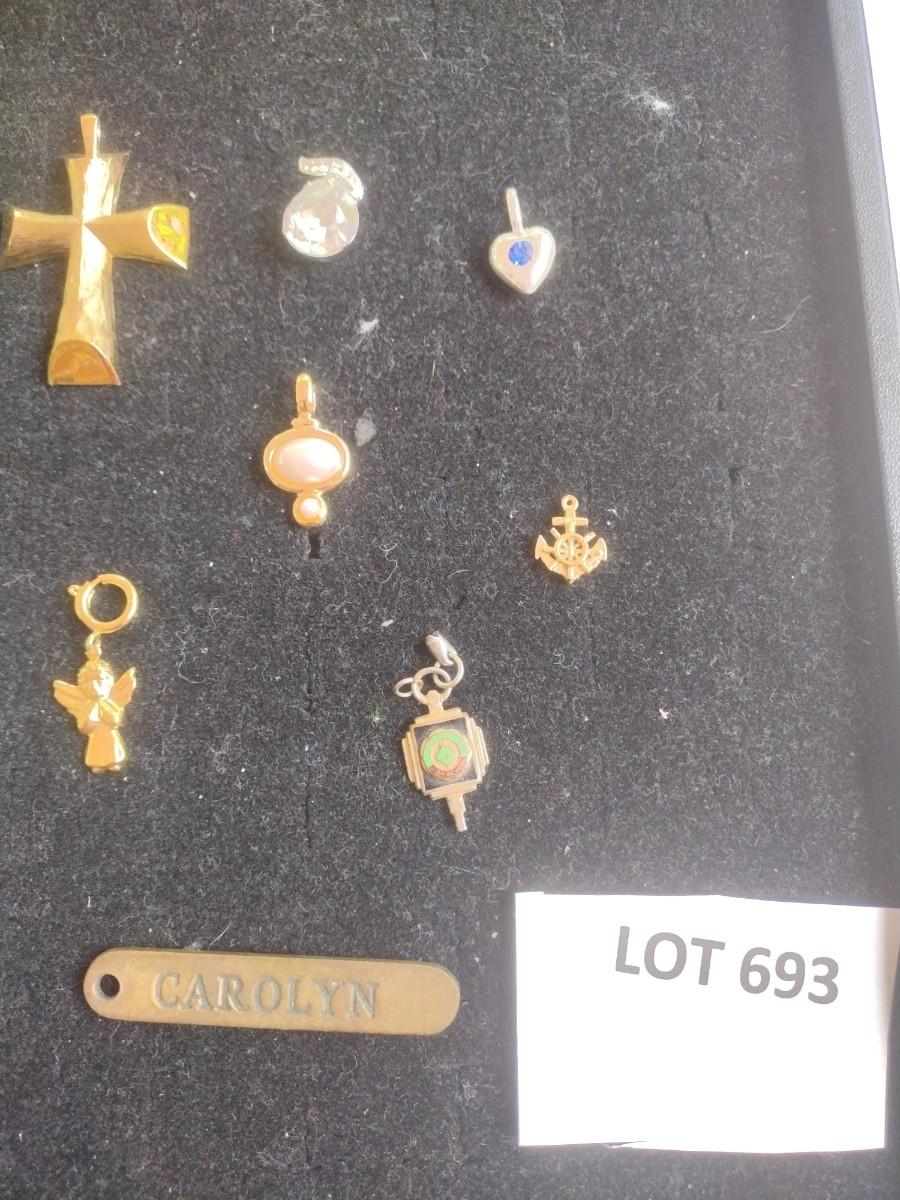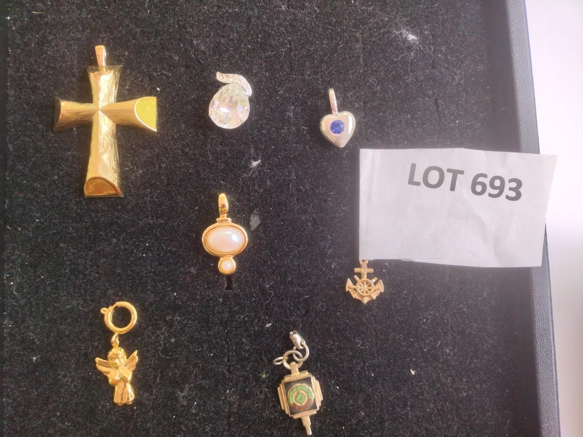 Assorted pendants. Avon Cross, angel, Eisenberg crystal gemstone. Heart, anchor, Joplin High School