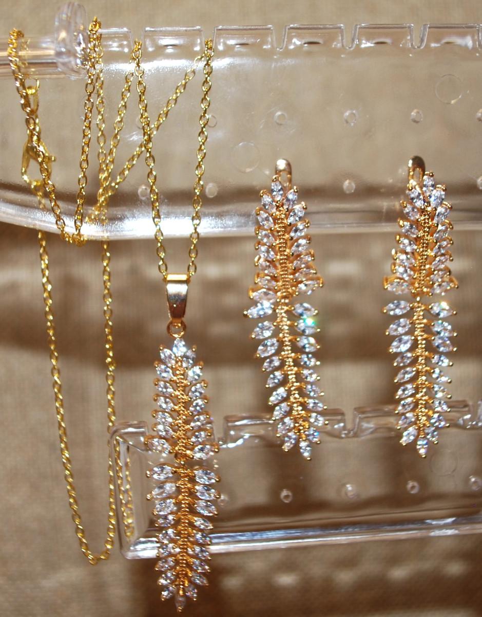 JEWELRY SET Includes Caterpillar Earrings (2" x ½") with English Lock Clasp & PENDANT (2" x ½") on a Gold Tone Necklace Chain 18" L