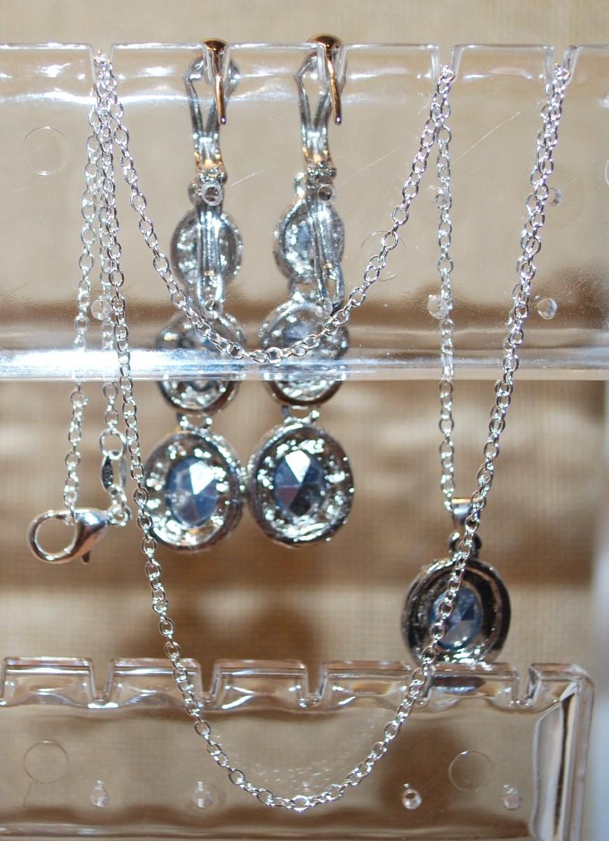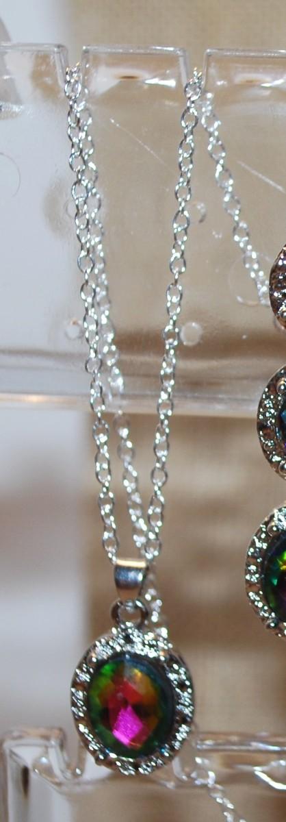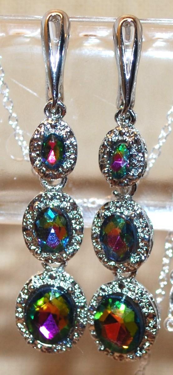 Iridescent JEWELRY SET Includes Earrings (2¼" x ¾") with English Lock & PENDANT ( ¾" x½" ) on a Silver Tone Necklace Chain 18" L