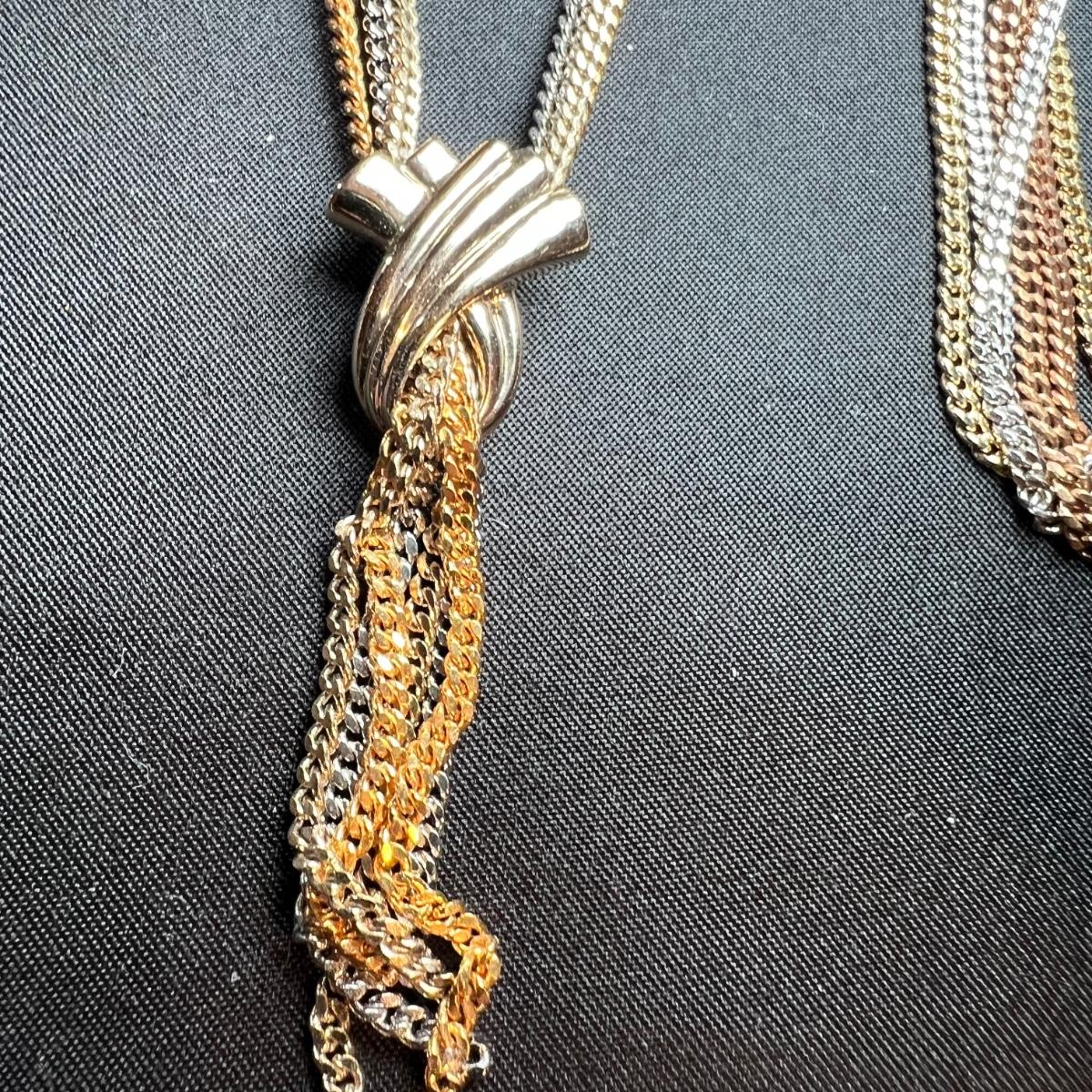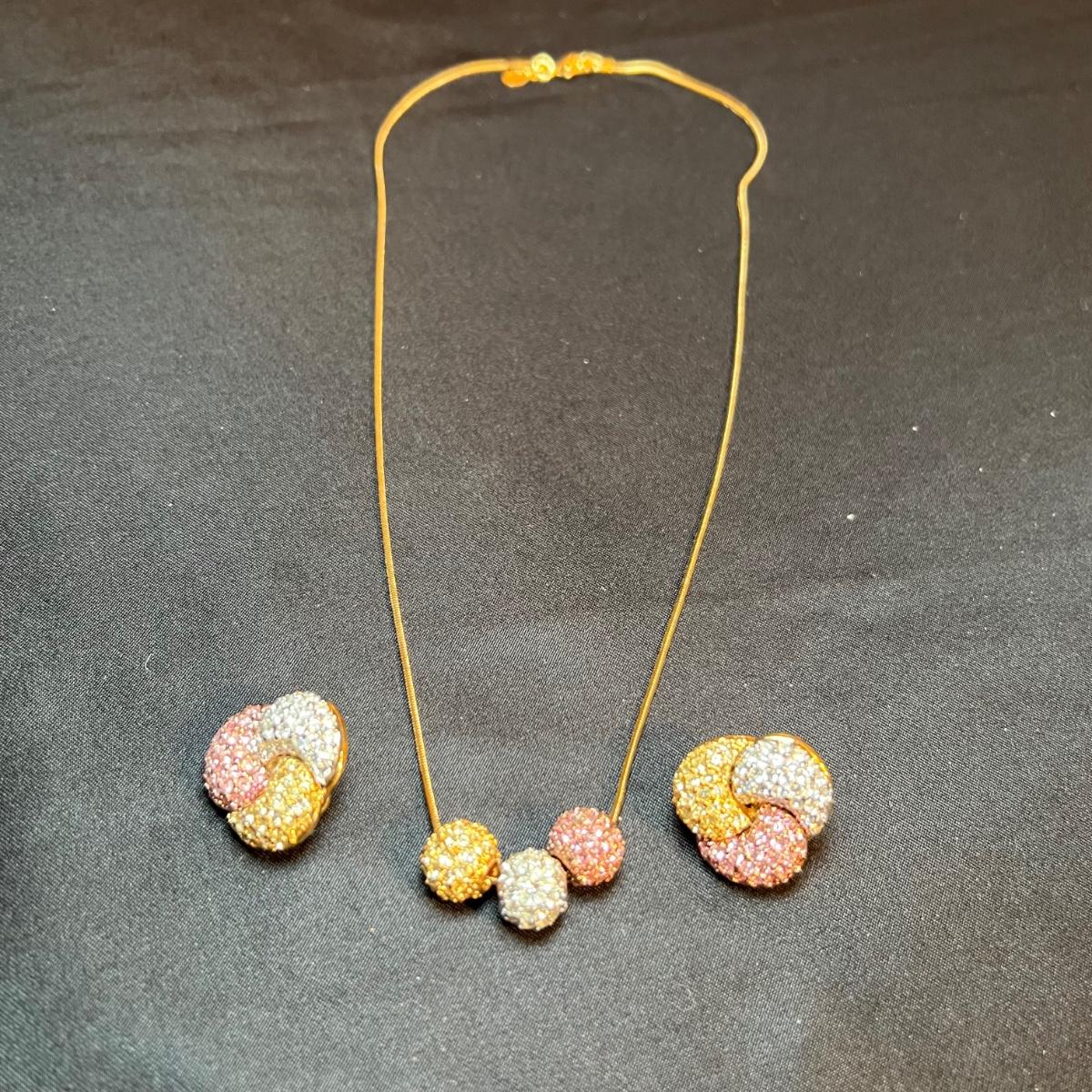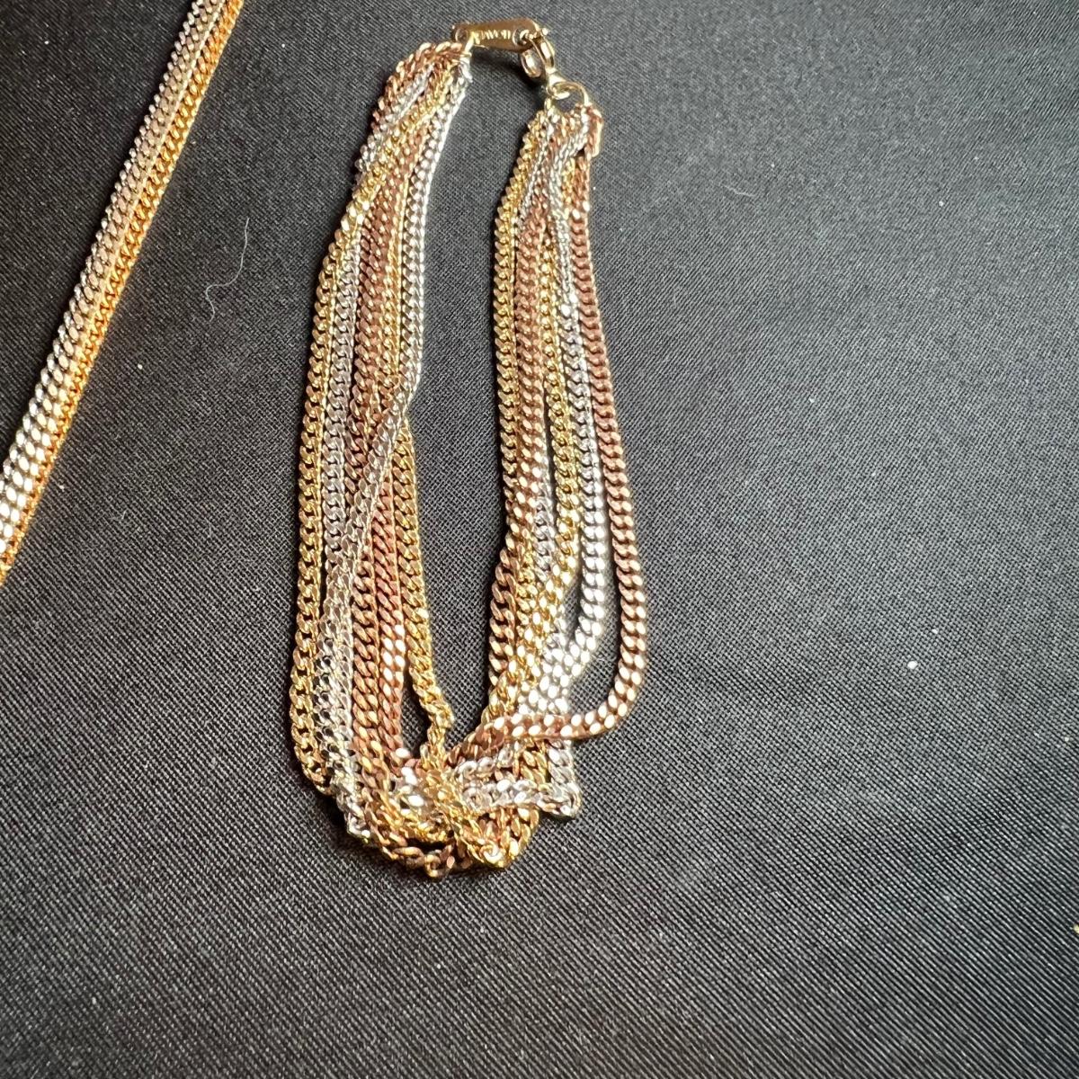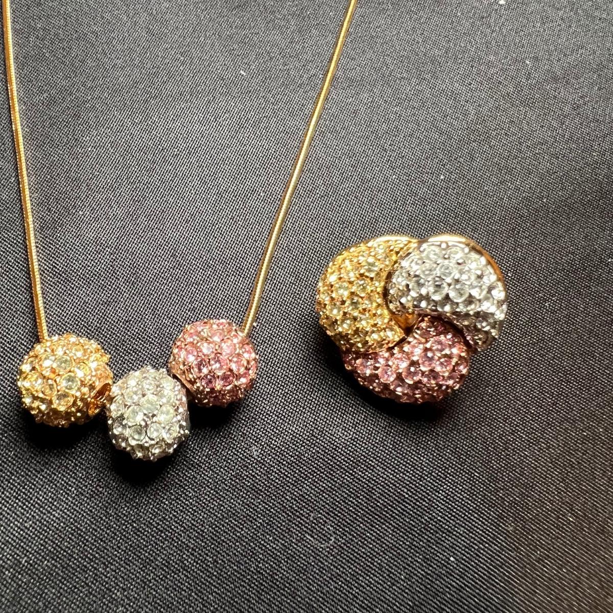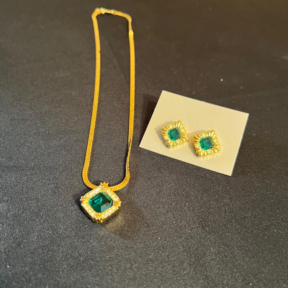 These 11 jewelry sets come with earrings that are a mix of clip-on and backs for pierced ears. Mostly the sets contain a necklace with matching earrings, but a few sets have an accompanying brooch and the pale pink rose set also has a ring and bracelet (the roses appear to be a resin like material). The cameo style necklace has the longest chain measuring 26”. Pieces are gold or silver colored metal. See images for mfg info; most sets are stamped Avon.