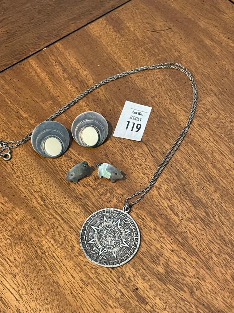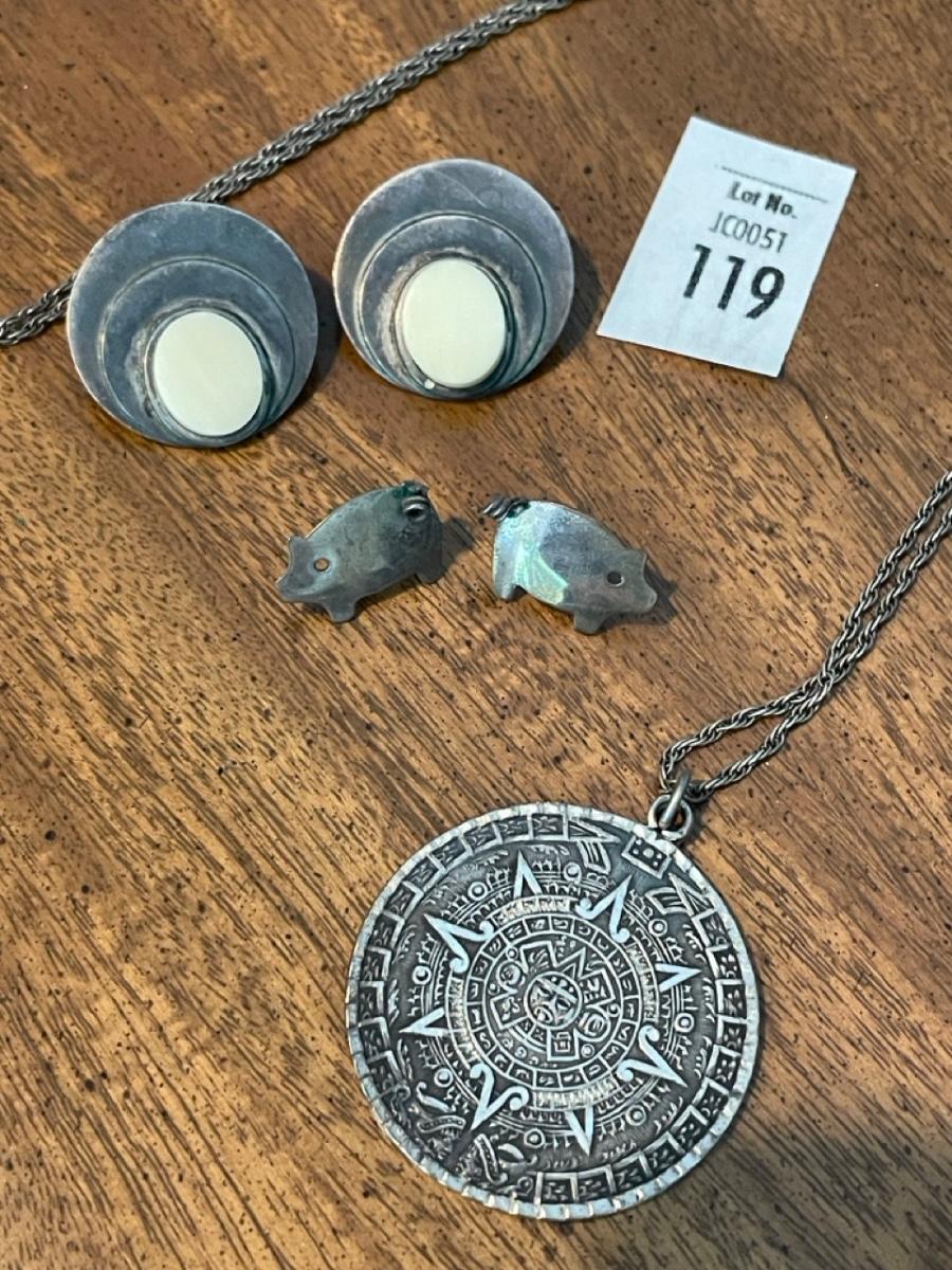 Pair of post earring, pair of little pig post earrings, medallion necklace