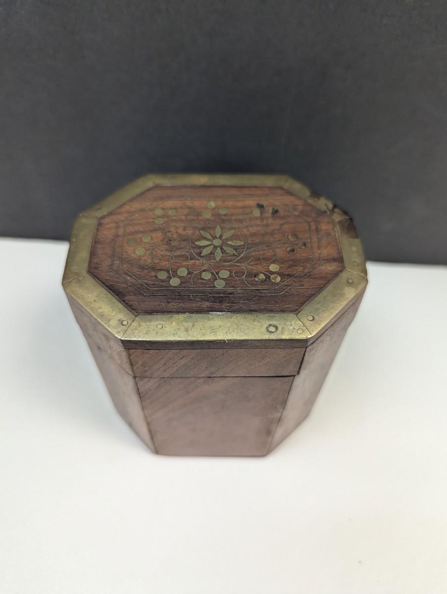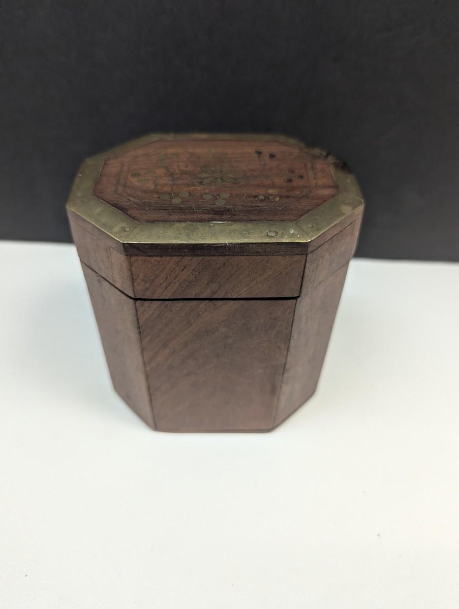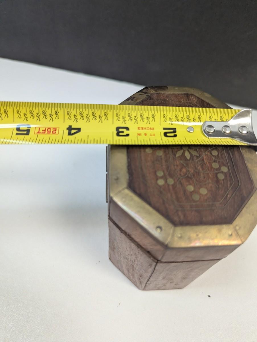 Jewelry Trinket Box Wood Brass Floral Inlay Handmade