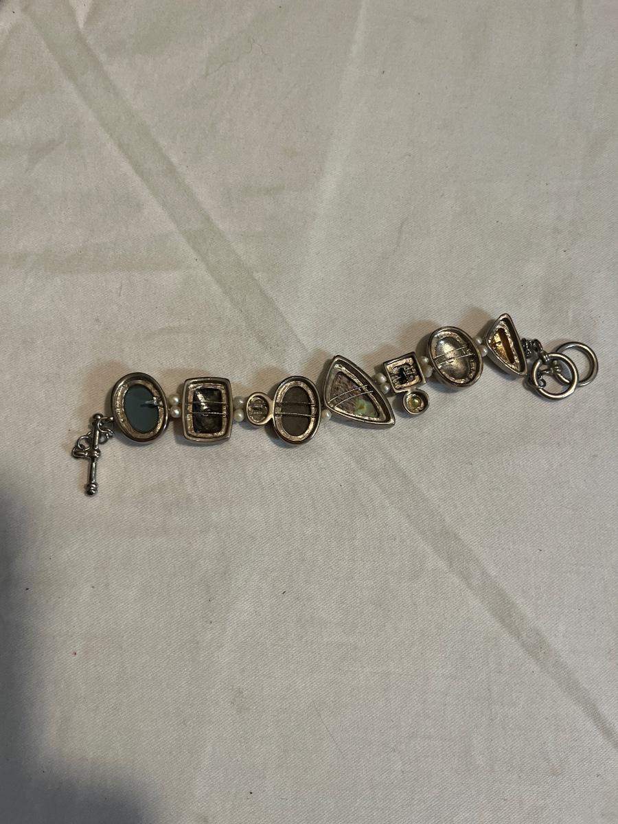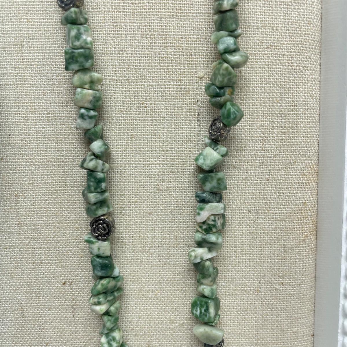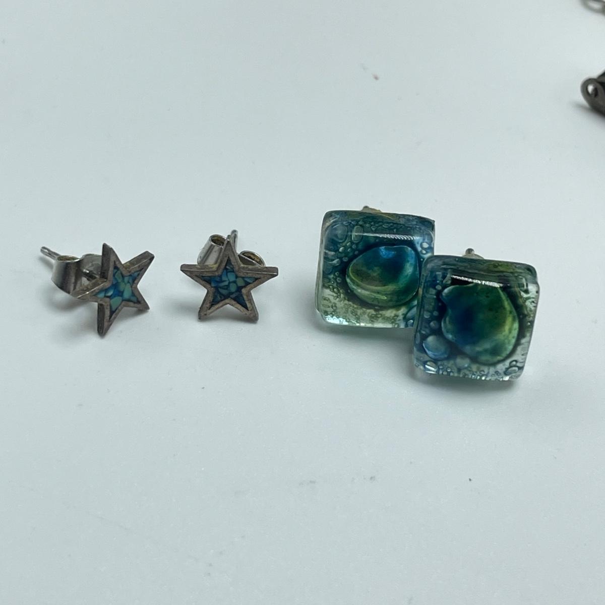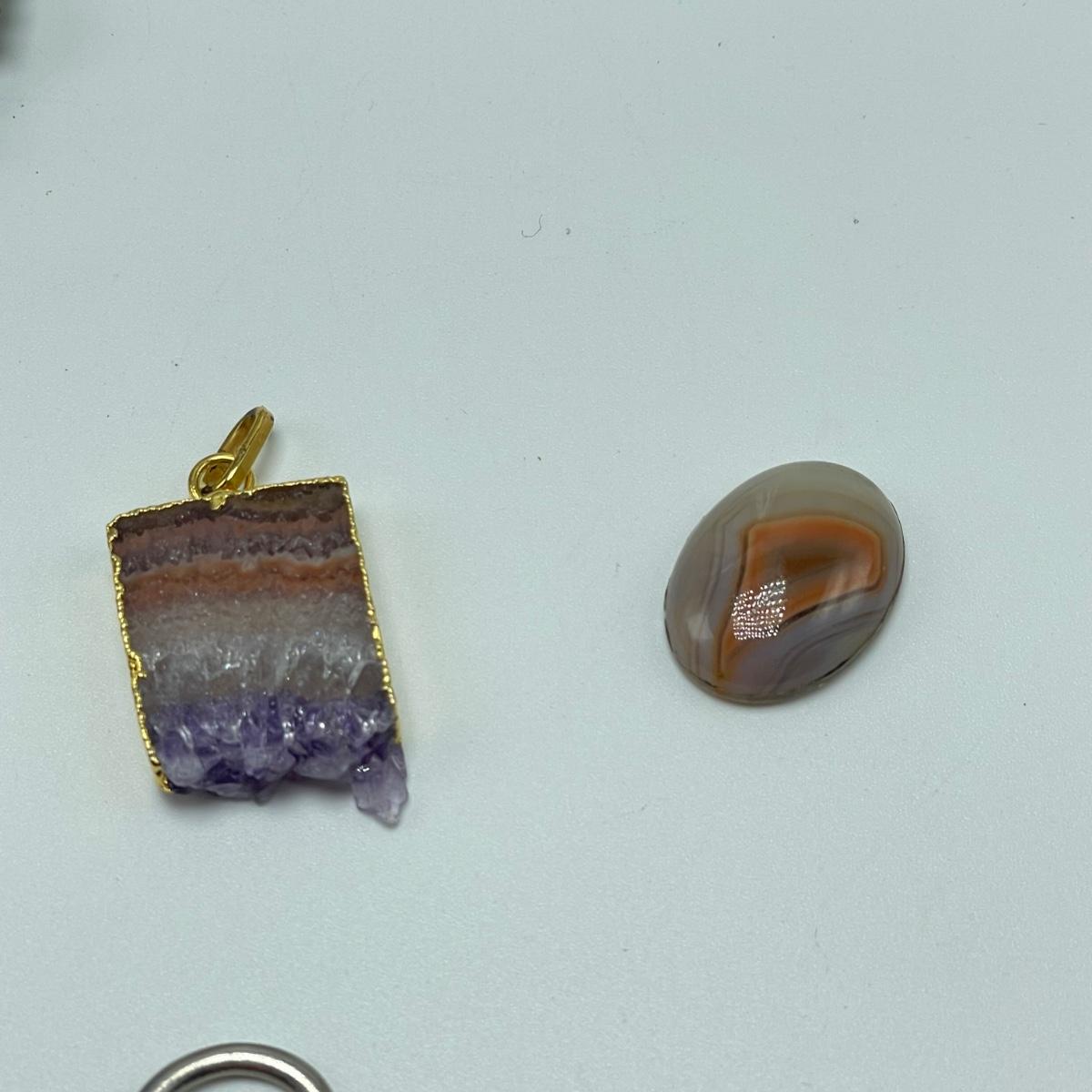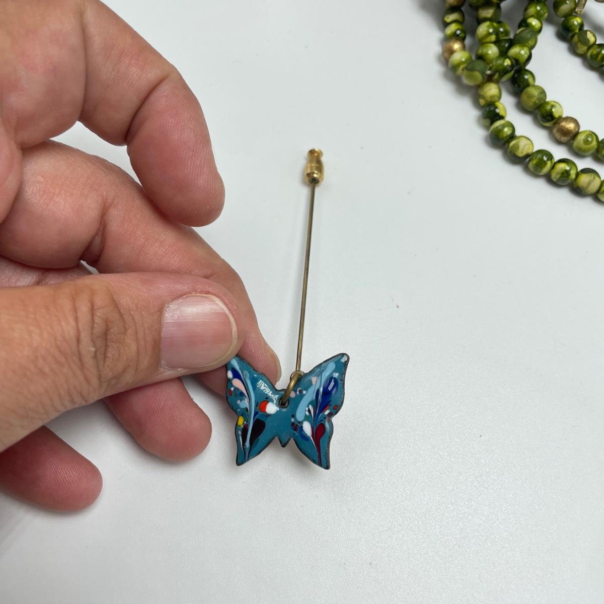 Nice selection of mostly green and blue toned jewelry. The long green and blue necklaces both appear to have real stones, while the shorter green necklace appears to be man-made. Lot features more turquoise like jewelry including a watch by LA Express and a ring with an unclear marking. Lot also includes a beautiful loose stone, a geode pendant, two pairs of earrings for pierced ears, an enamel-like butterfly hat pin and a stone adorned bracelet. See images. All sales are final. No returns or refunds. Please bid accordingly. Shipping available.