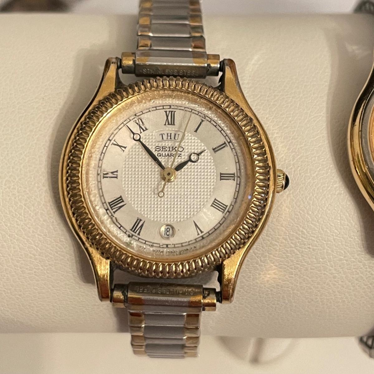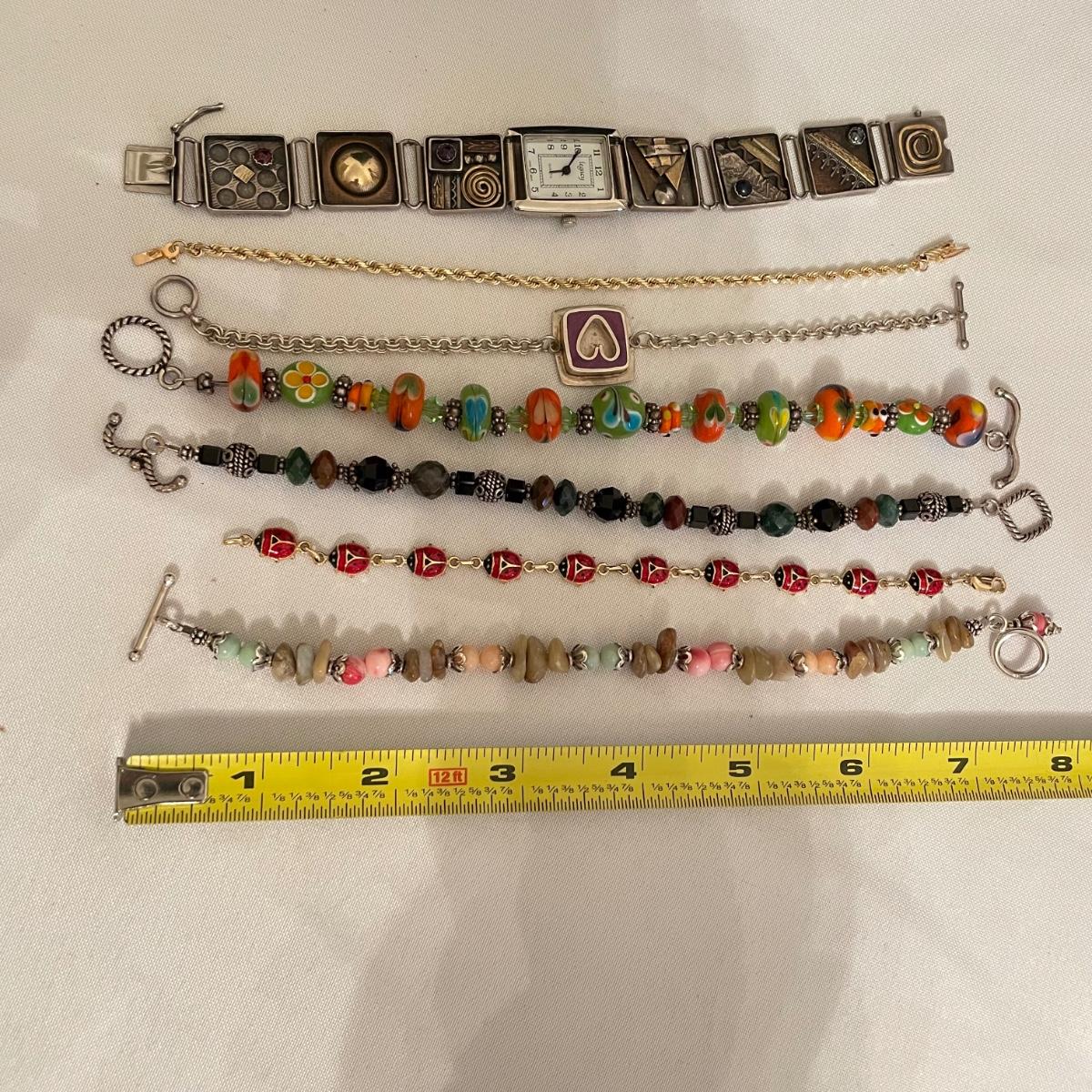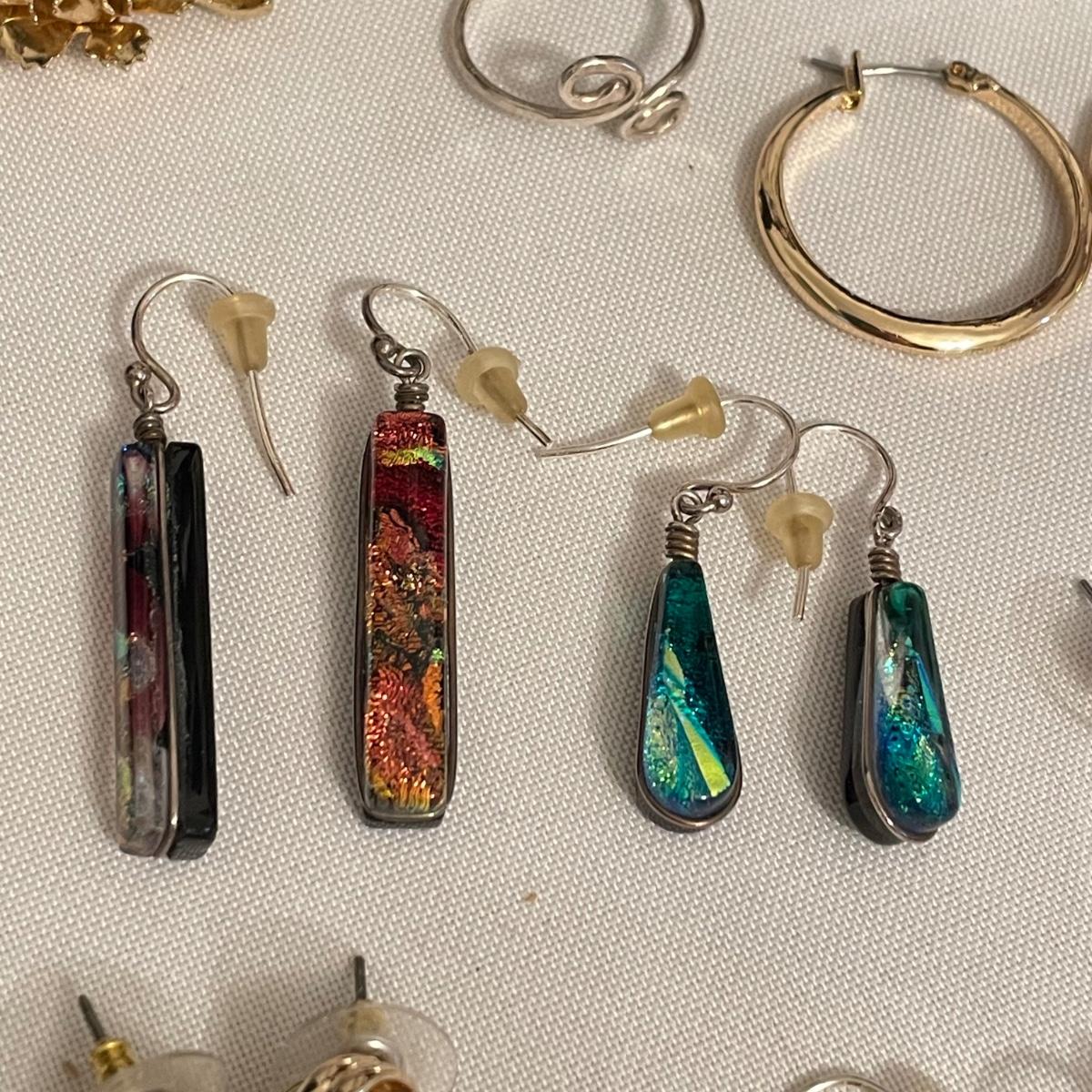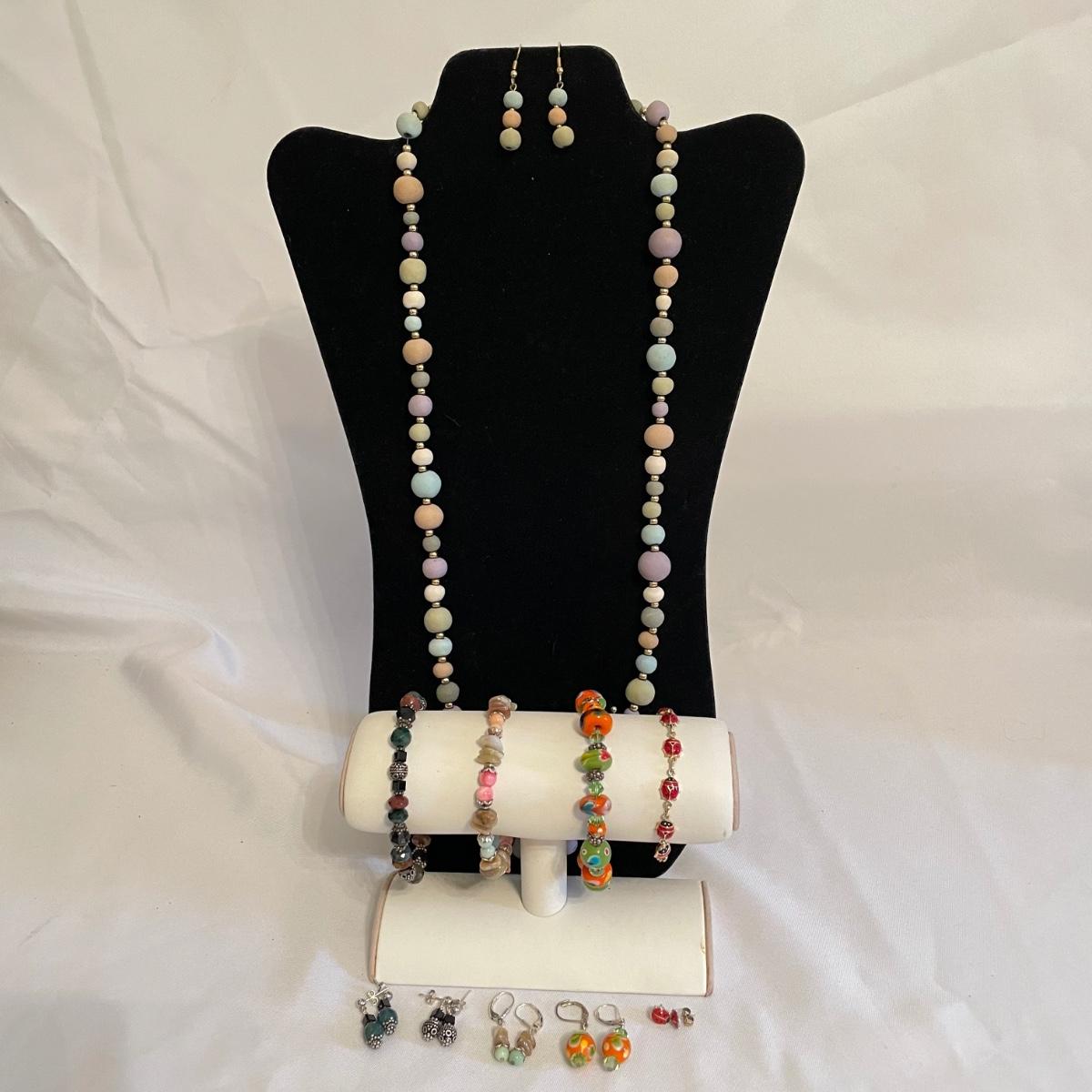 Over 20 pairs of earrings for pierced ears, six those match with other items in the lot (five sets total). Lot also includes Christmas themed brooches, earrings and a necklace, two Seiko and one Legacy watches, six bracelets and twelve necklaces plus one adjustable ring. The necklaces range from about 15” to 30”. See images for markings, including sterling. Shipping available. All sales are final. No returns or refunds. Please bid accordingly.