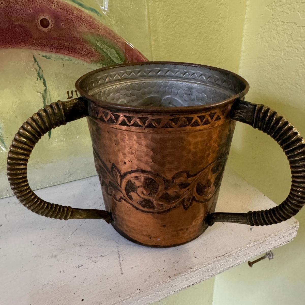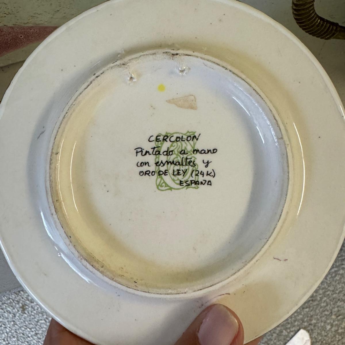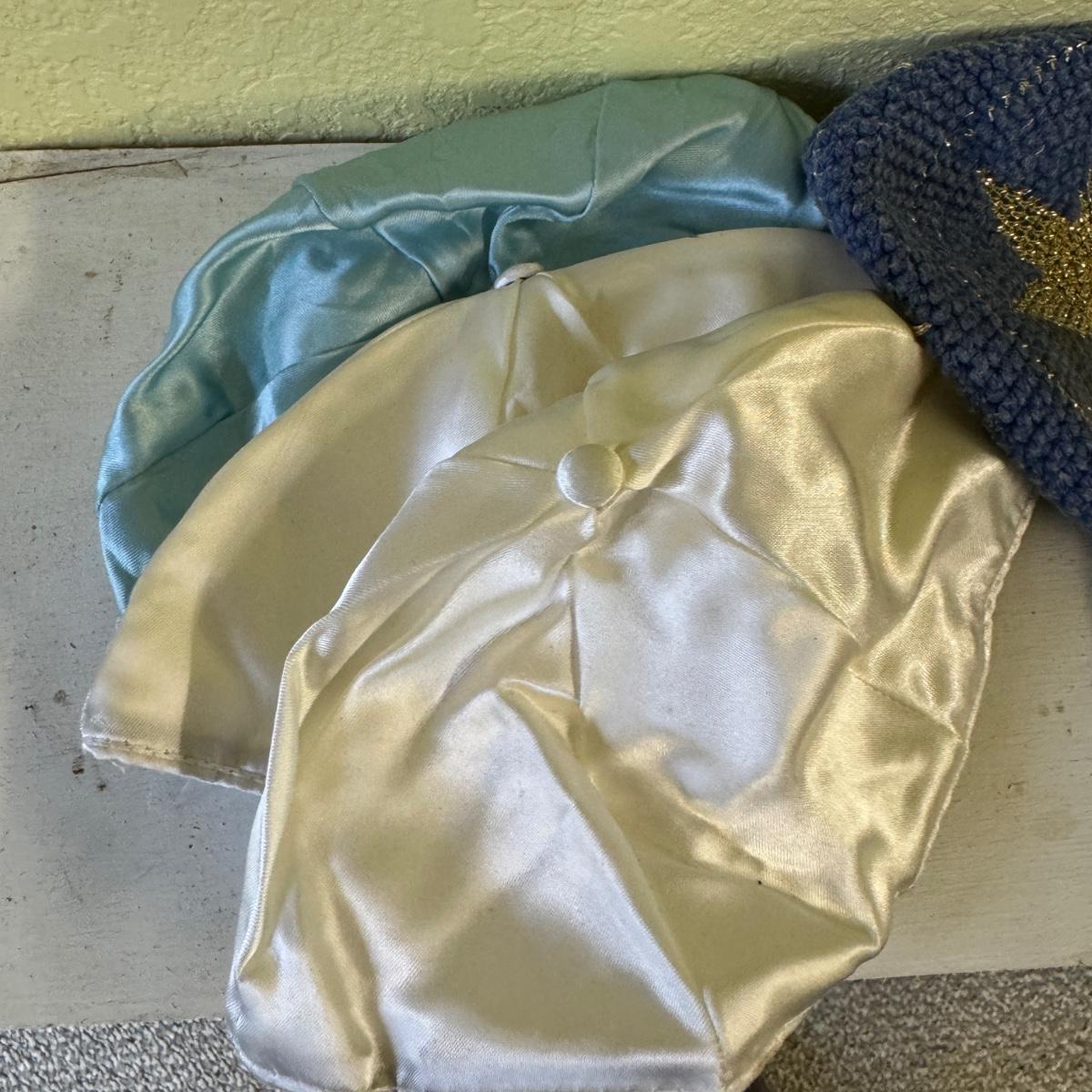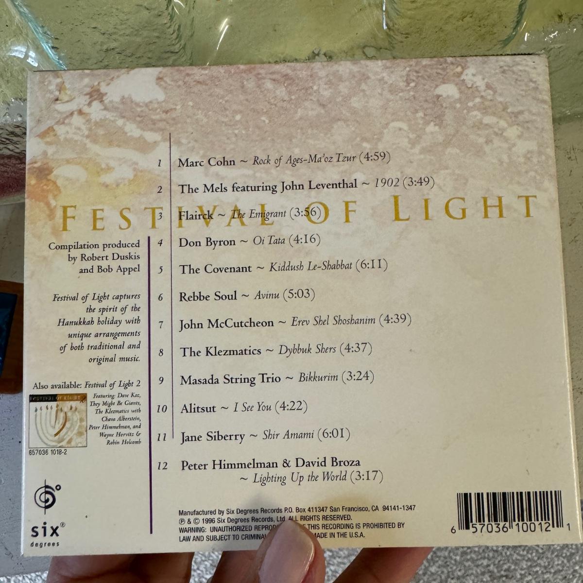 An assortment of items to celebrate Jewish faith. Includes 6 yamakas, trivet, CD, metal two handled mug, 2 dreidels and a signed Glass platter that measures 14.5” x 12”. Shipping available