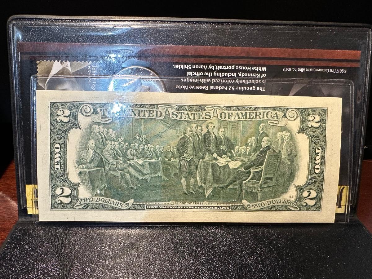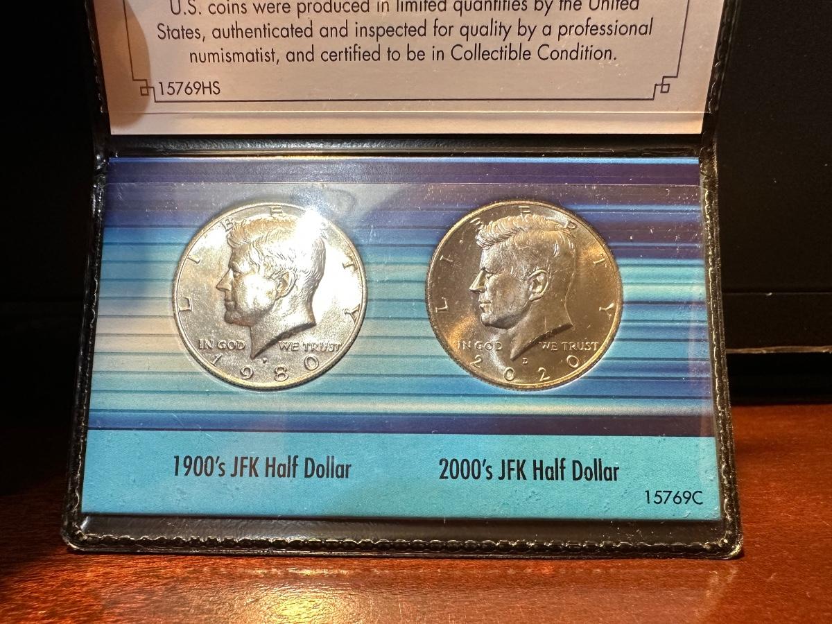 JFK HALF DOLLAR, STAMP AND $2 BILL AND 1980/2020 JFK HALF DOLLARS