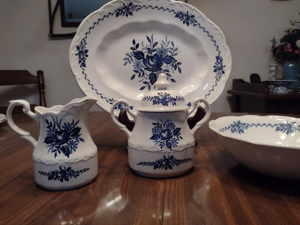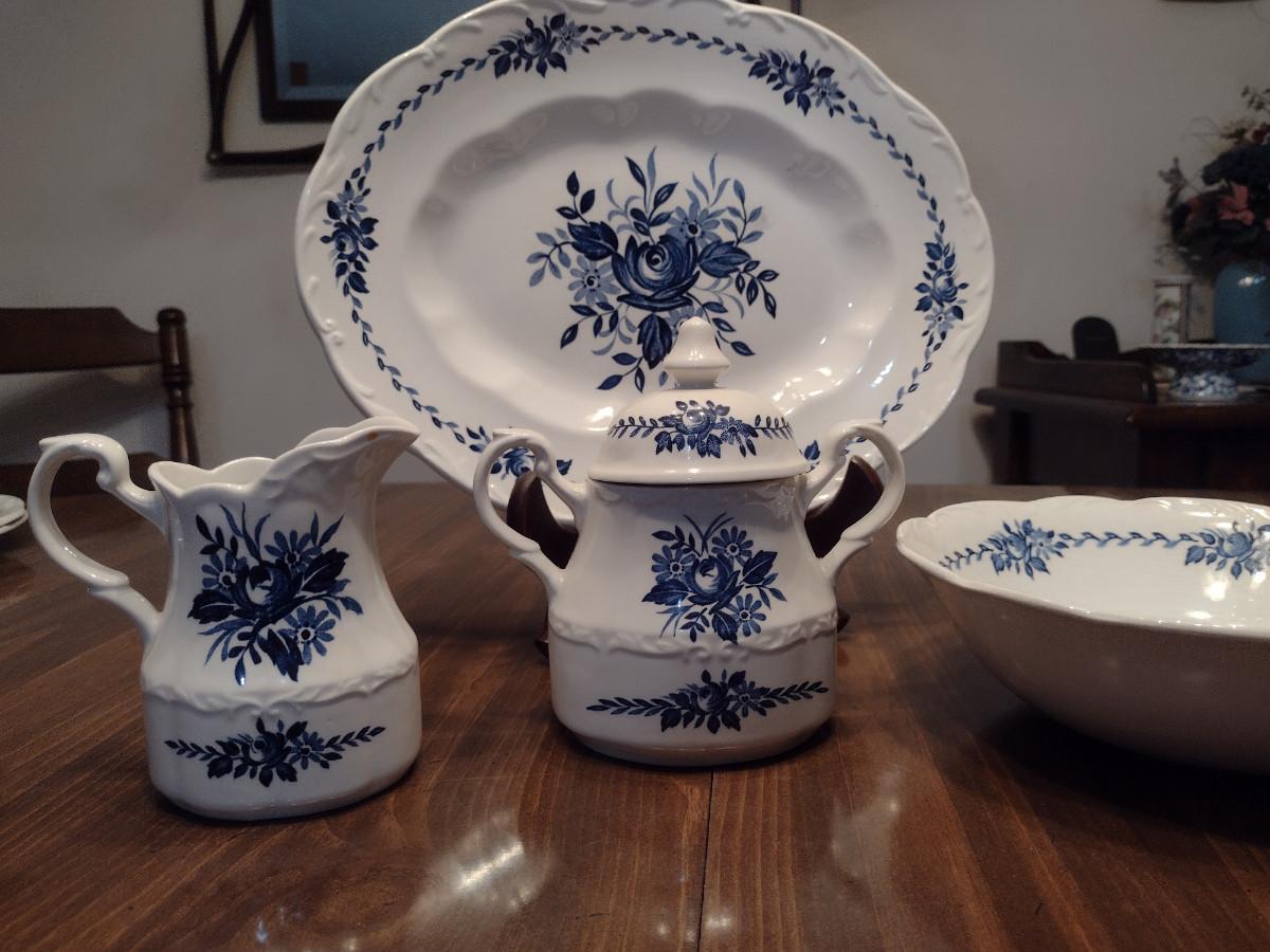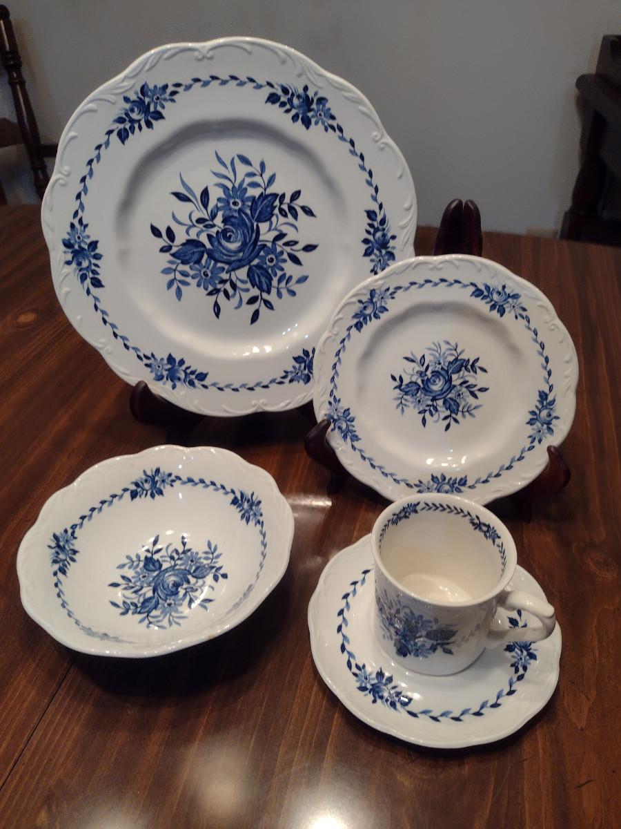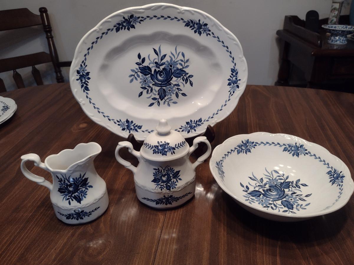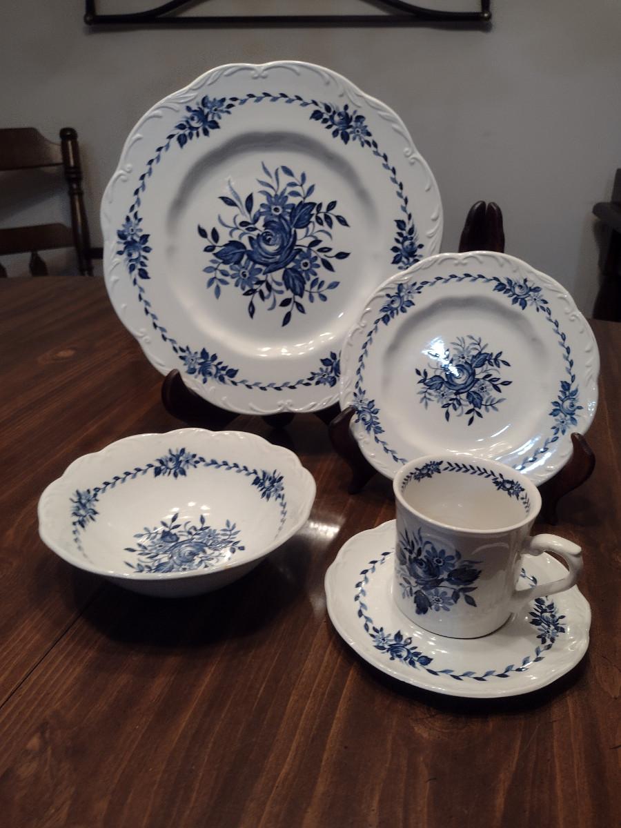 J&G Meakin Dresden Blue English Ironstone- Approx 40 Pieces, 8 Place Settings