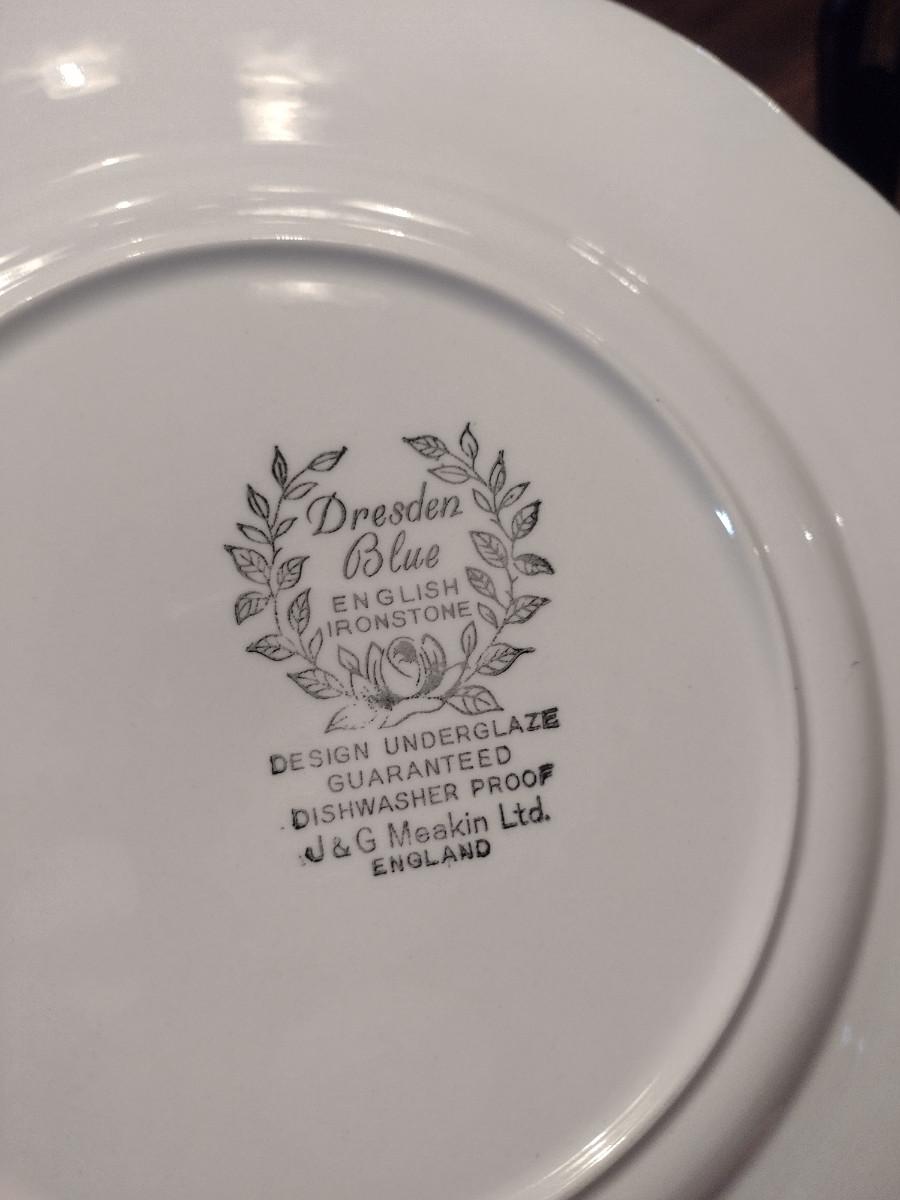 J&G Meakin Dresden Blue English Ironstone- Approx 40 Pieces, 8 Place Settings. Items are in used condition and may have occasional chipping.