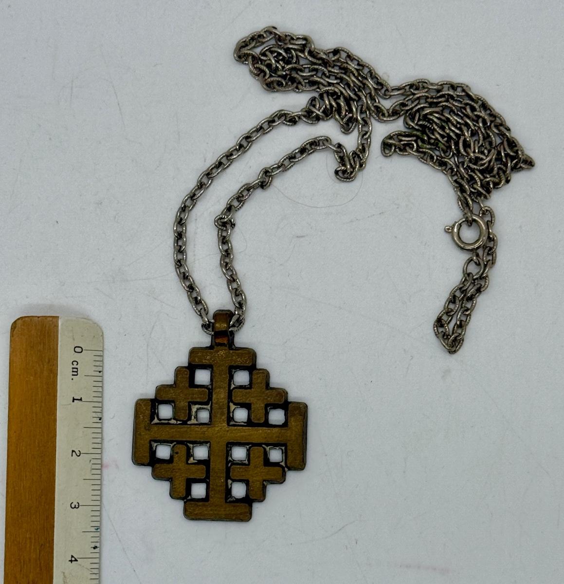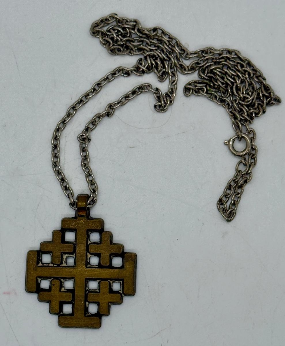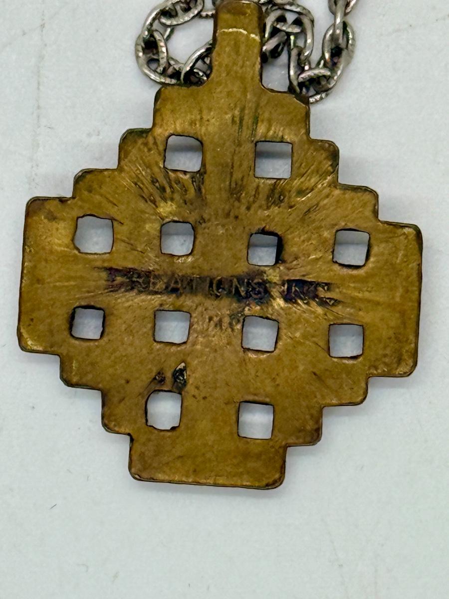 Vintage Brass Jerusalem Cross Pendant Necklace