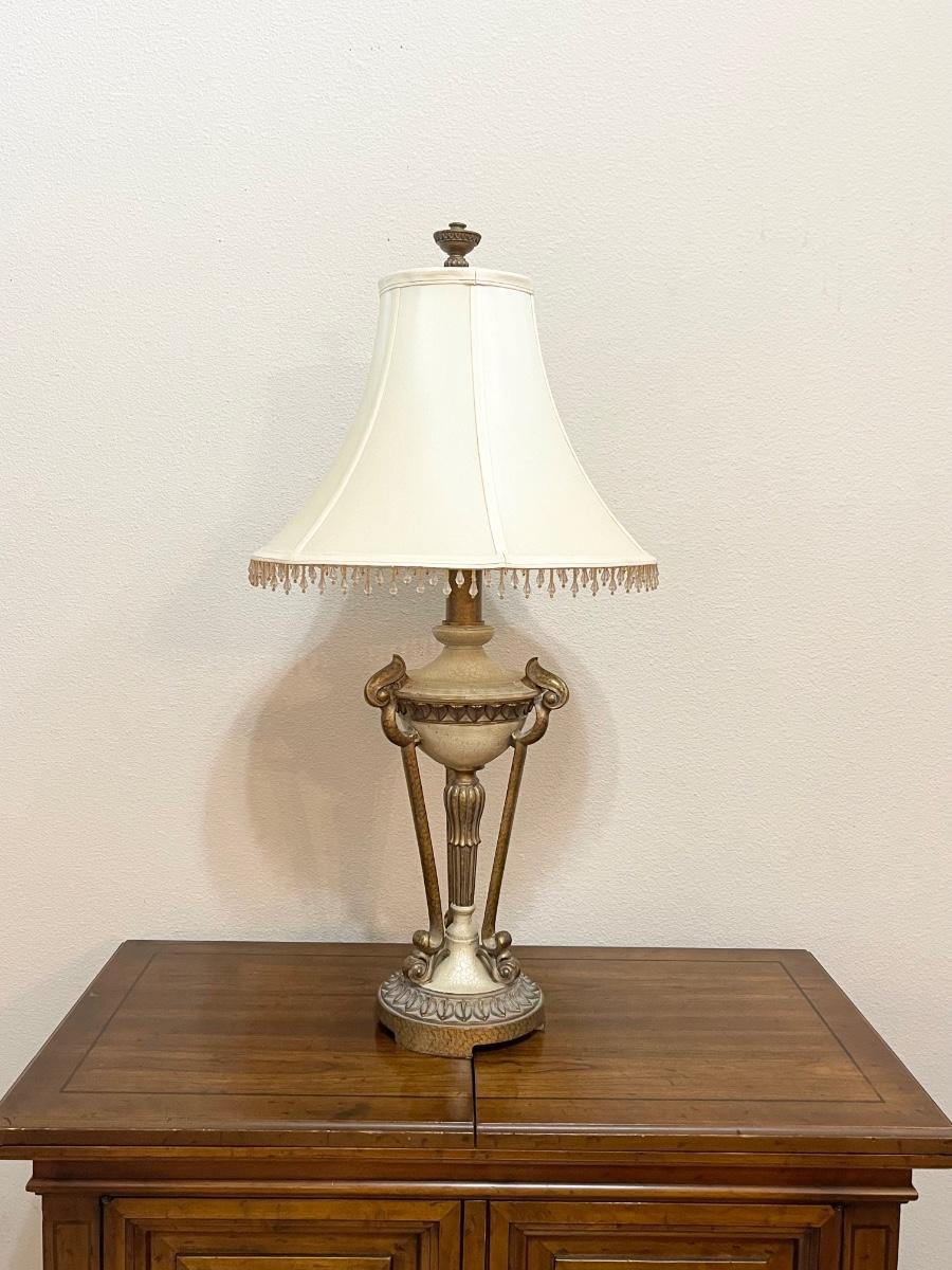32” H with a 16” Round Beaded Shade ~ Made from a resin based material ~ Great Condition