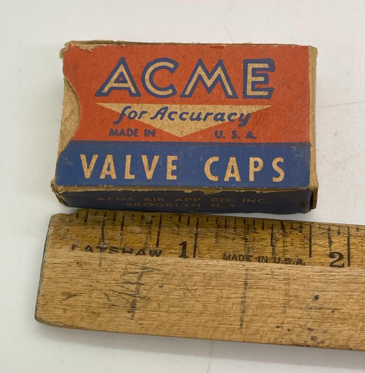 Vintage Advertising Acme Valve Caps box empty except for release pin