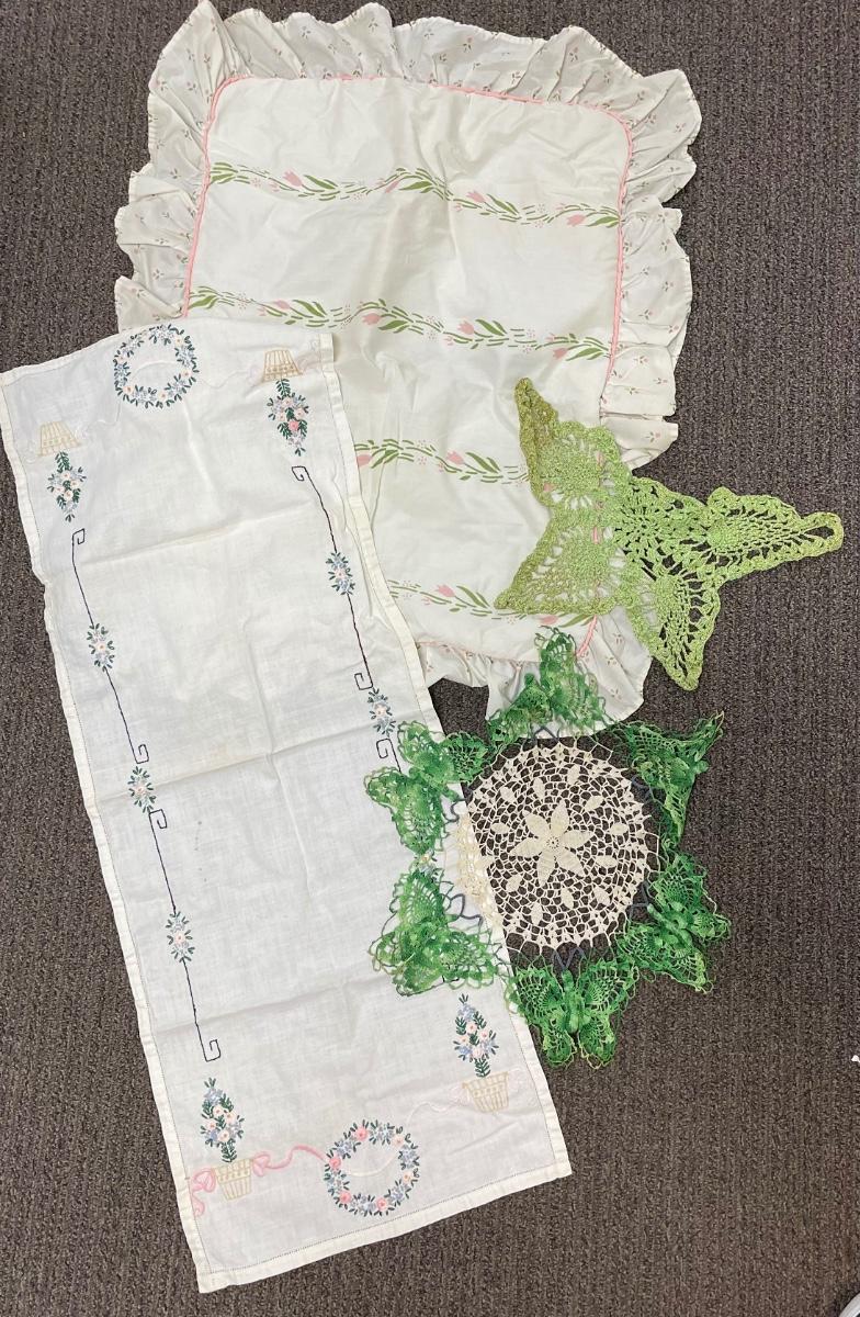 Linen Lot - Pillow Case Sham, Doilies, Table Runner