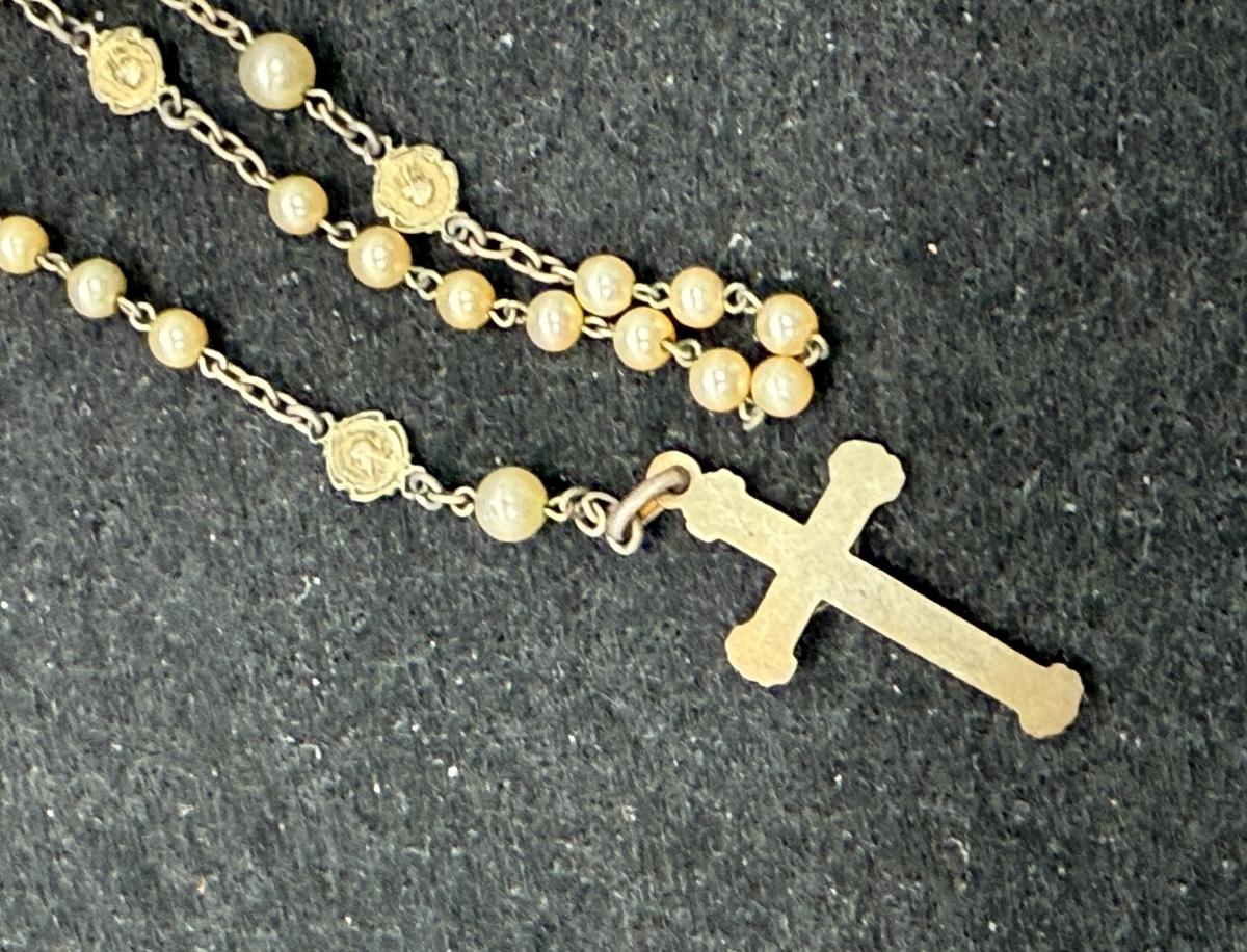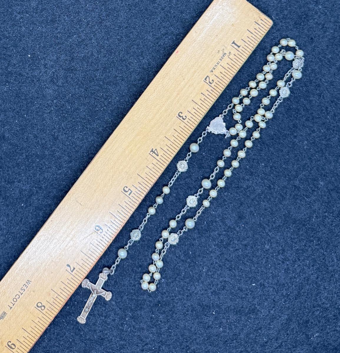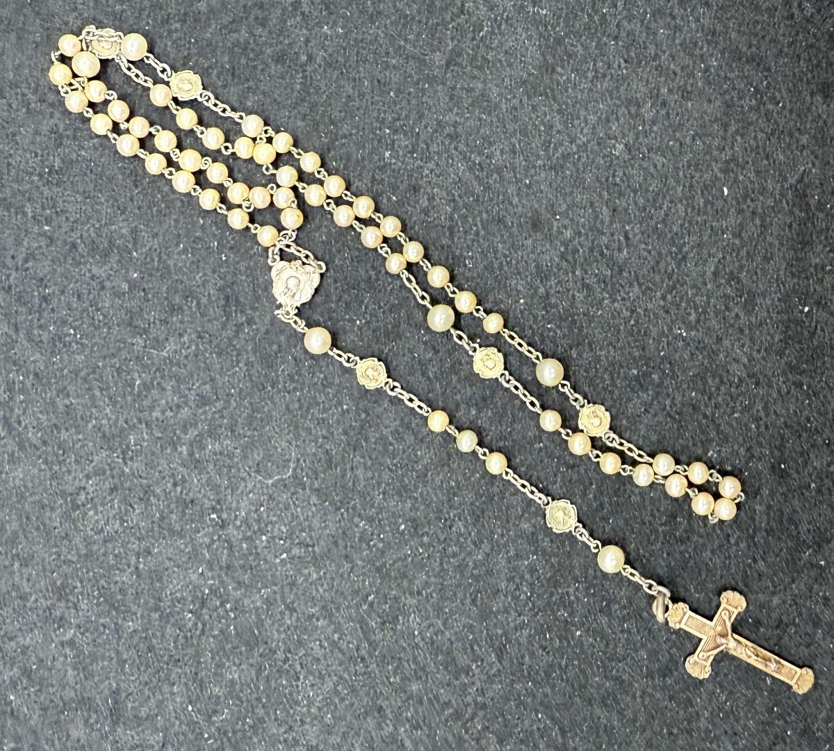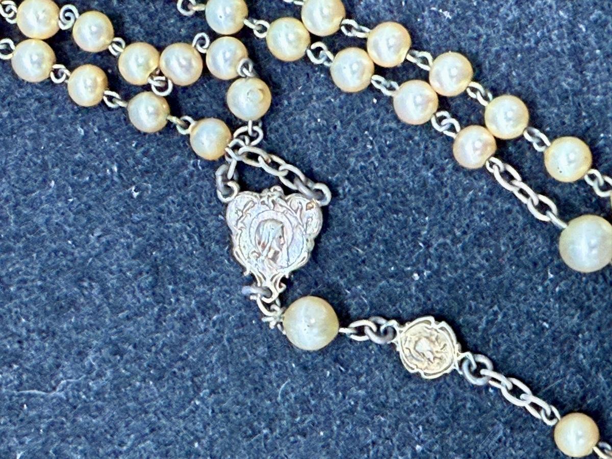 Vintage Rosary Beads: Pearls on a Silvertone Chain