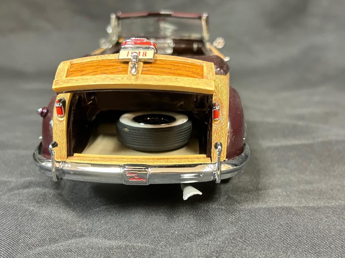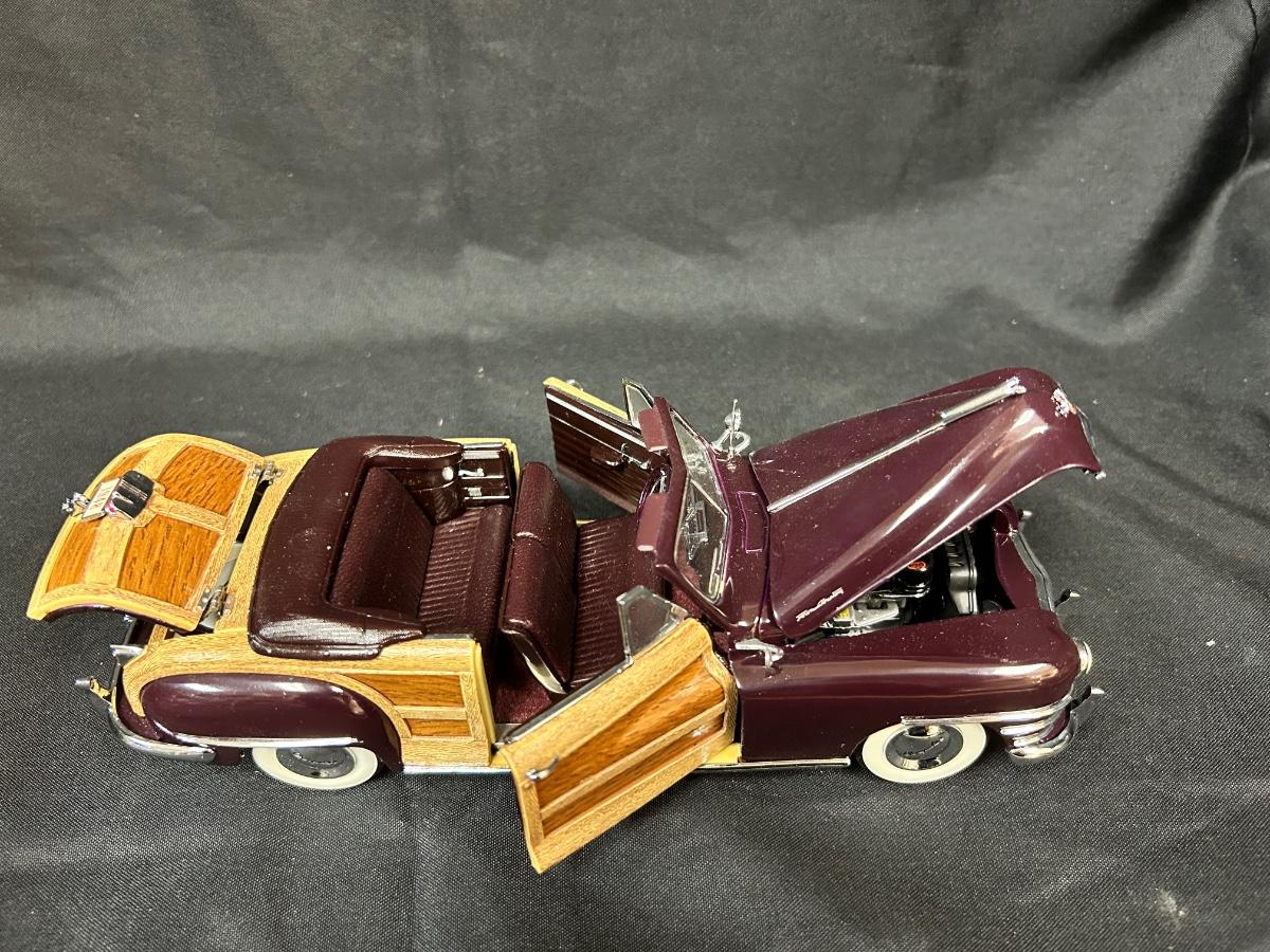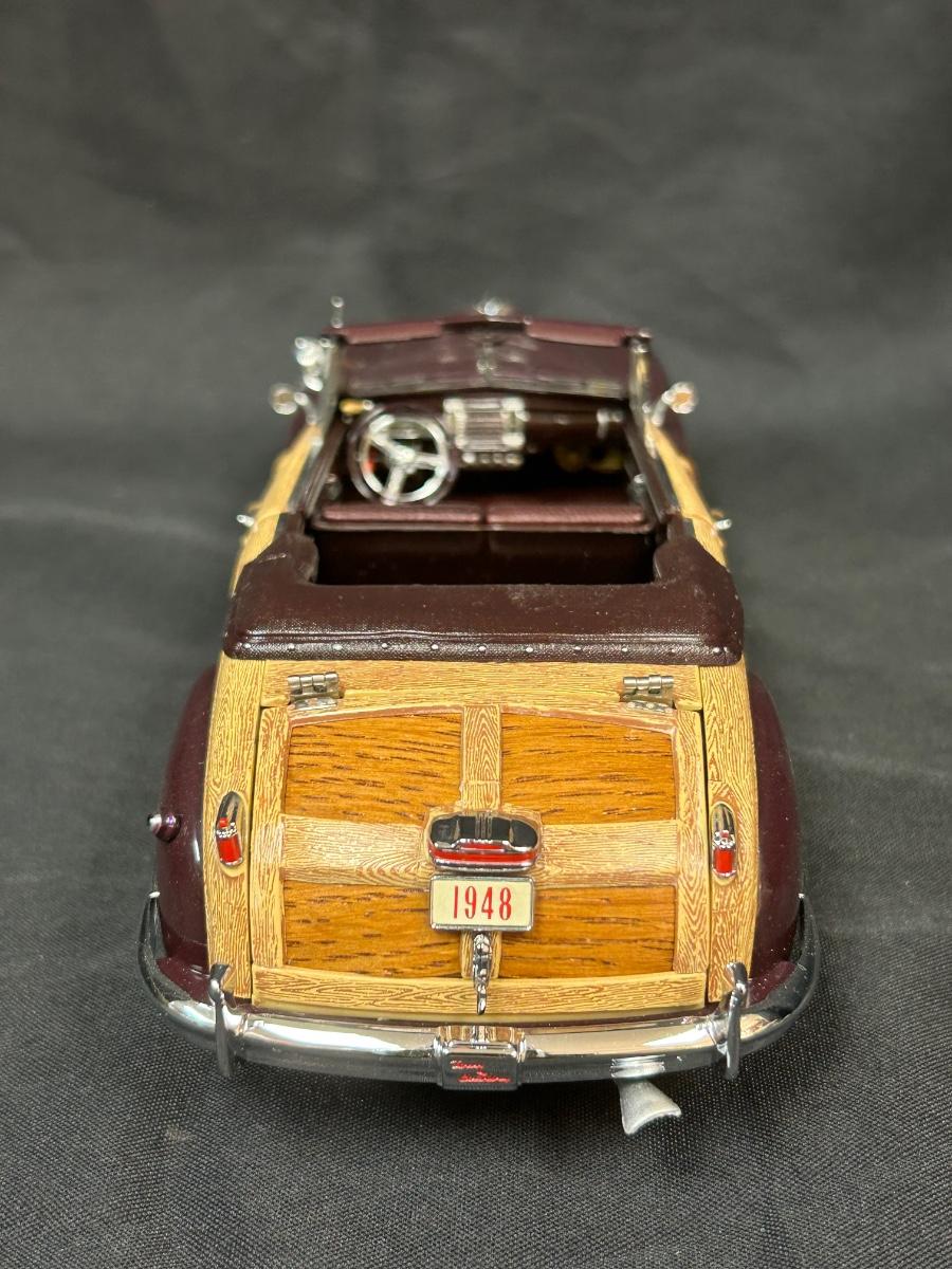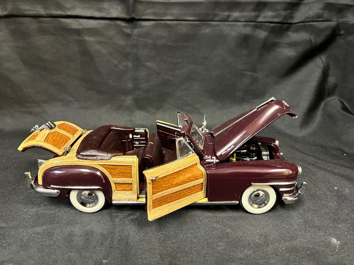 1948 Regal Maroon Chrysler Town & Country Convertible Premium Scale Model Replica Car Auto Automobile with COA Danbury Mint. In good collector condition. Doors, hood and trunk open; steering wheel controls the front tires. About 9" size. Does not come with plastic display box.