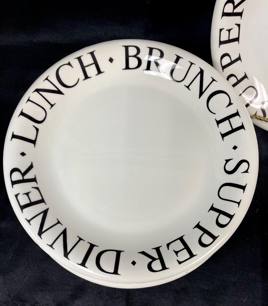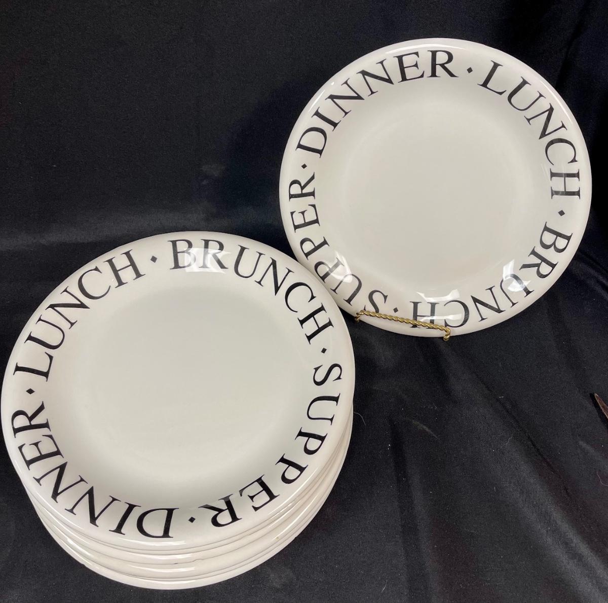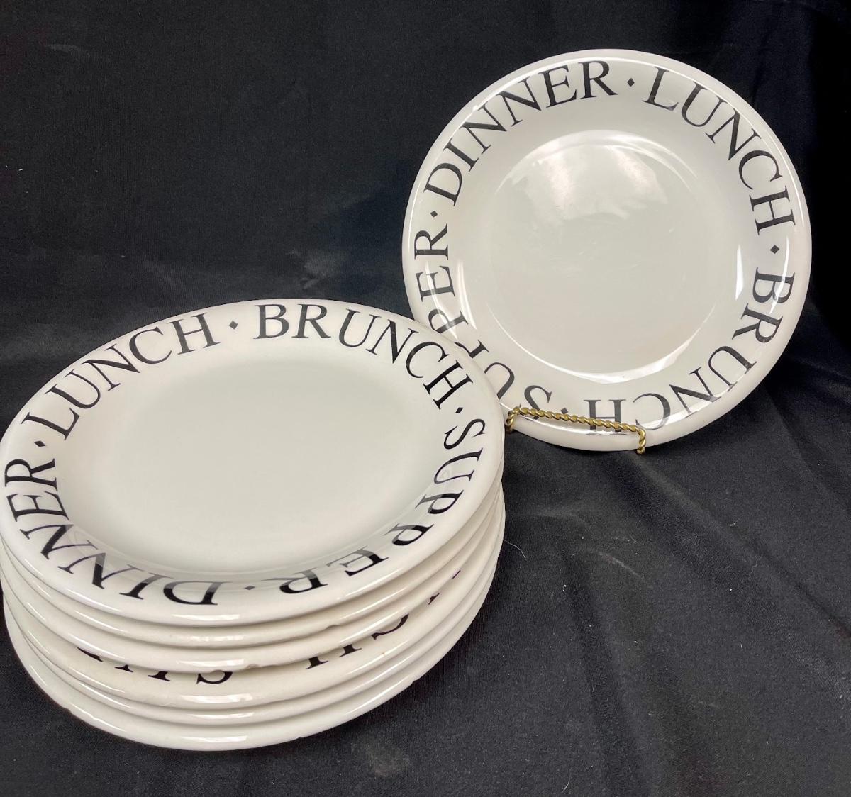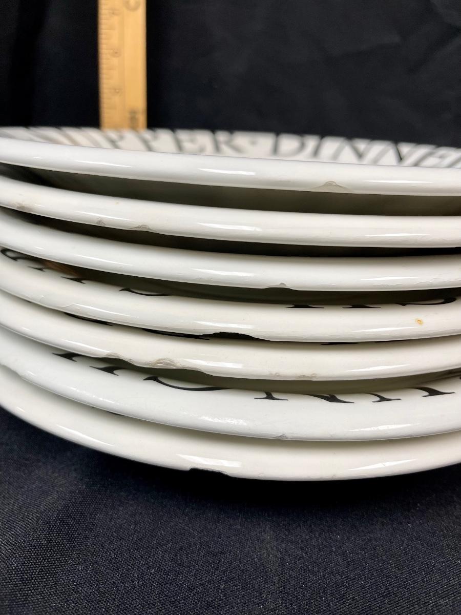 Set of Brunch Lunch Supper Dinner Ceramic Plates. There are some chipped edges along the undersides, good for display.