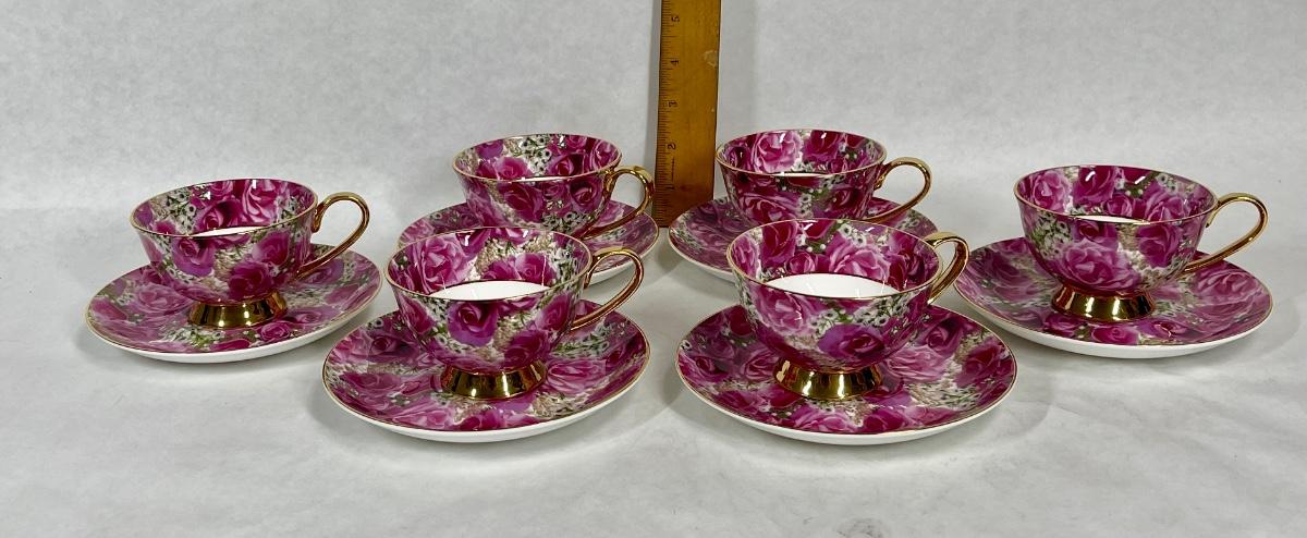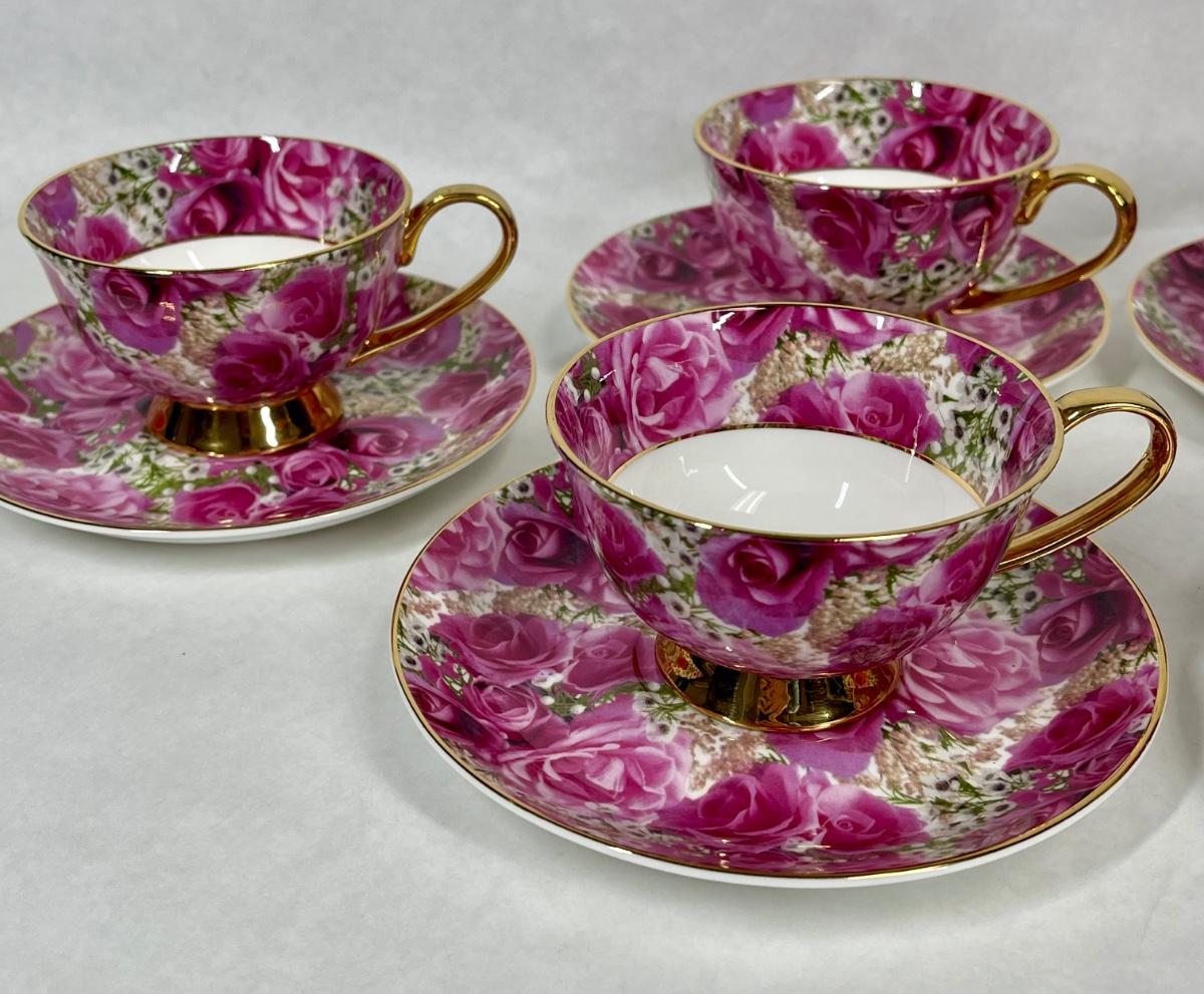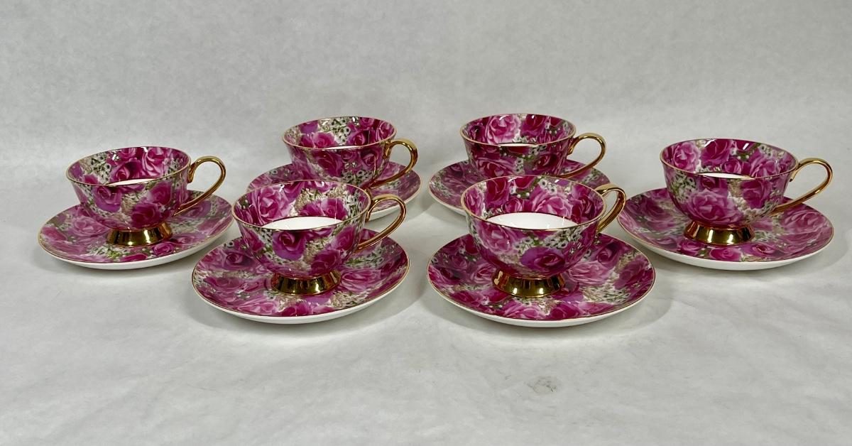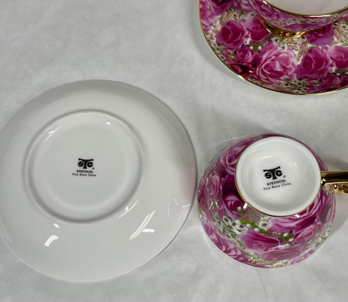 Set of 6 Stechcol Fine Bone China Teacups and Saucers