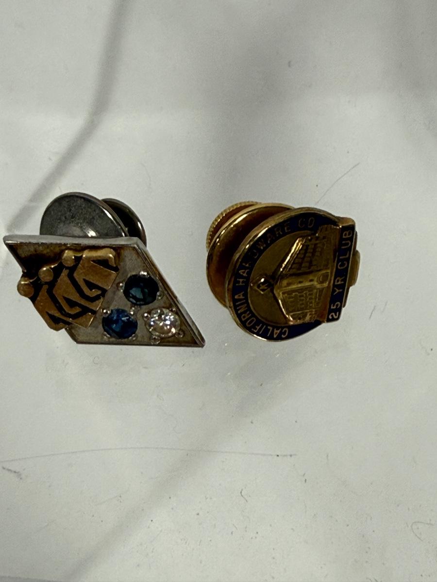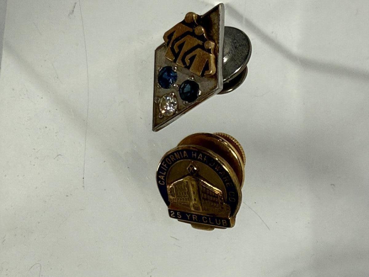 Service Anniversary Pins: California Hardware Company and Unknown Pin with Sapphires and Diamond