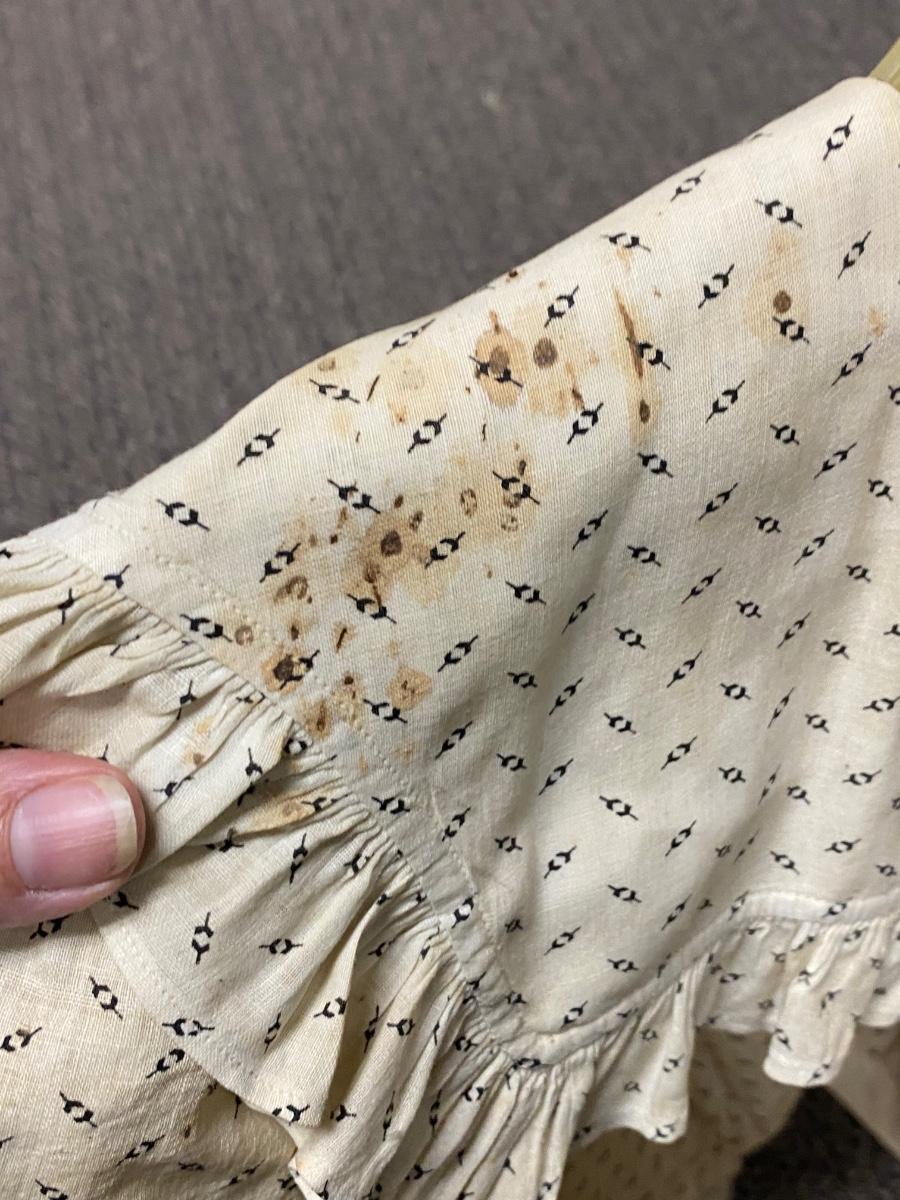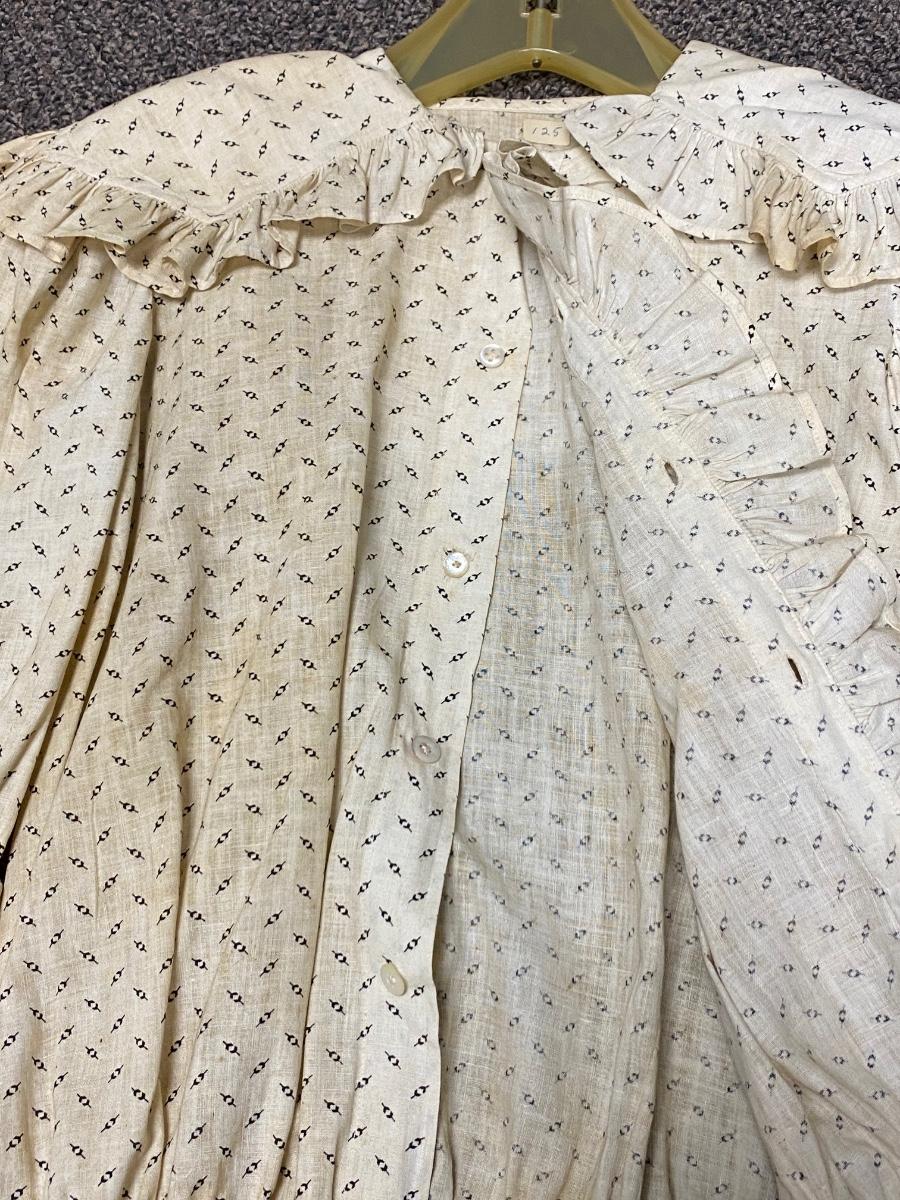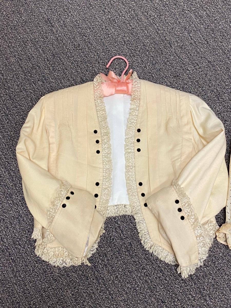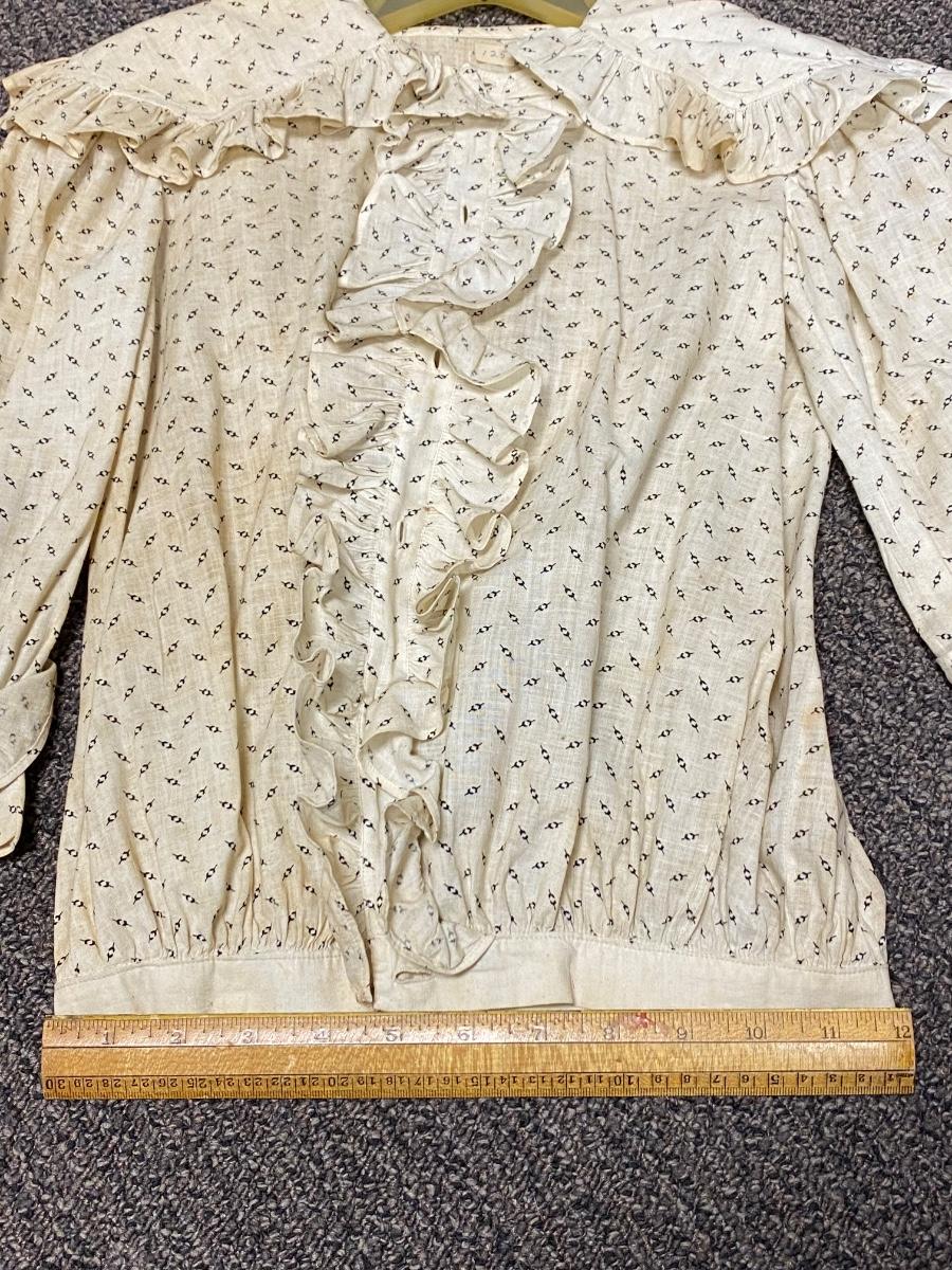 Pair of Vintage Victorian Blouse Tops Crop Jacket. Some discolor and spots, more on the blouse than crop jacket. Did notice a couple tiny moth holes also. Small size, about 14" - 16" across the chest.