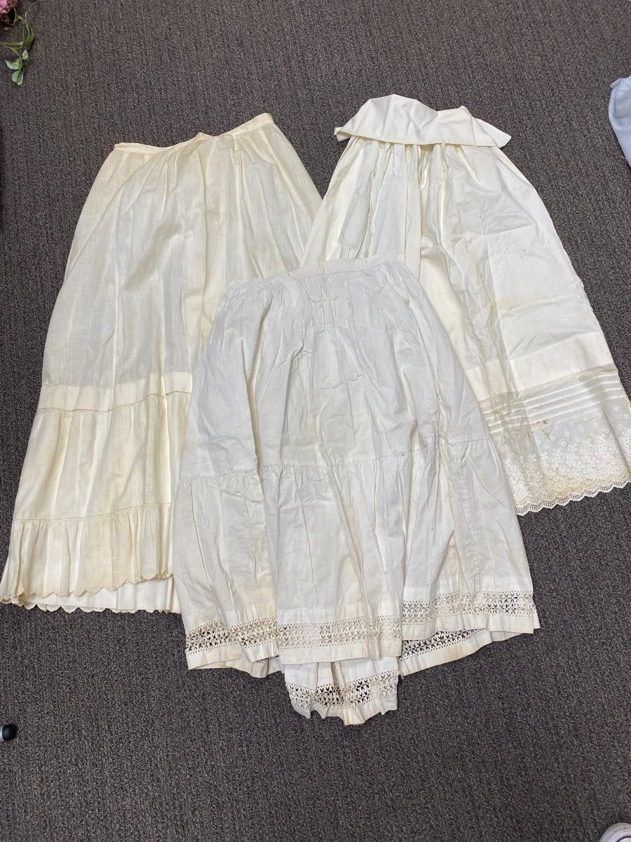 Lot of Three Vintage Victorian Gibson Girl White Cotton Skirts Boho Romantic