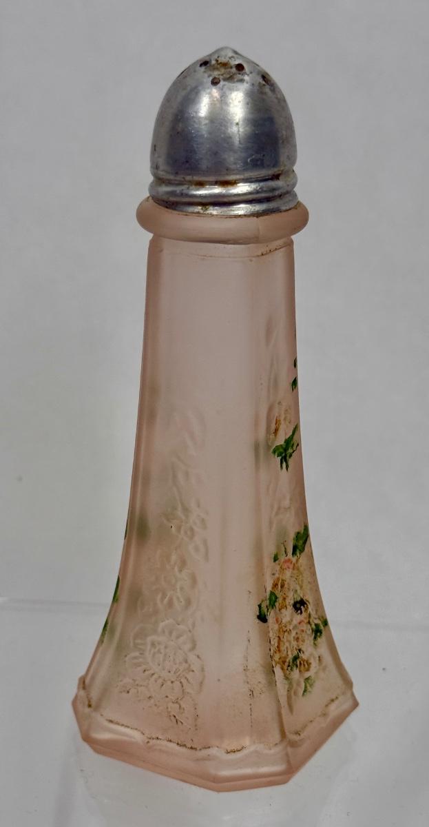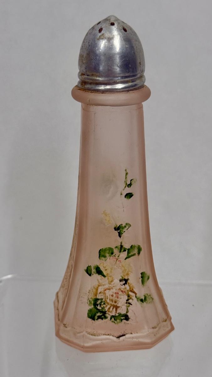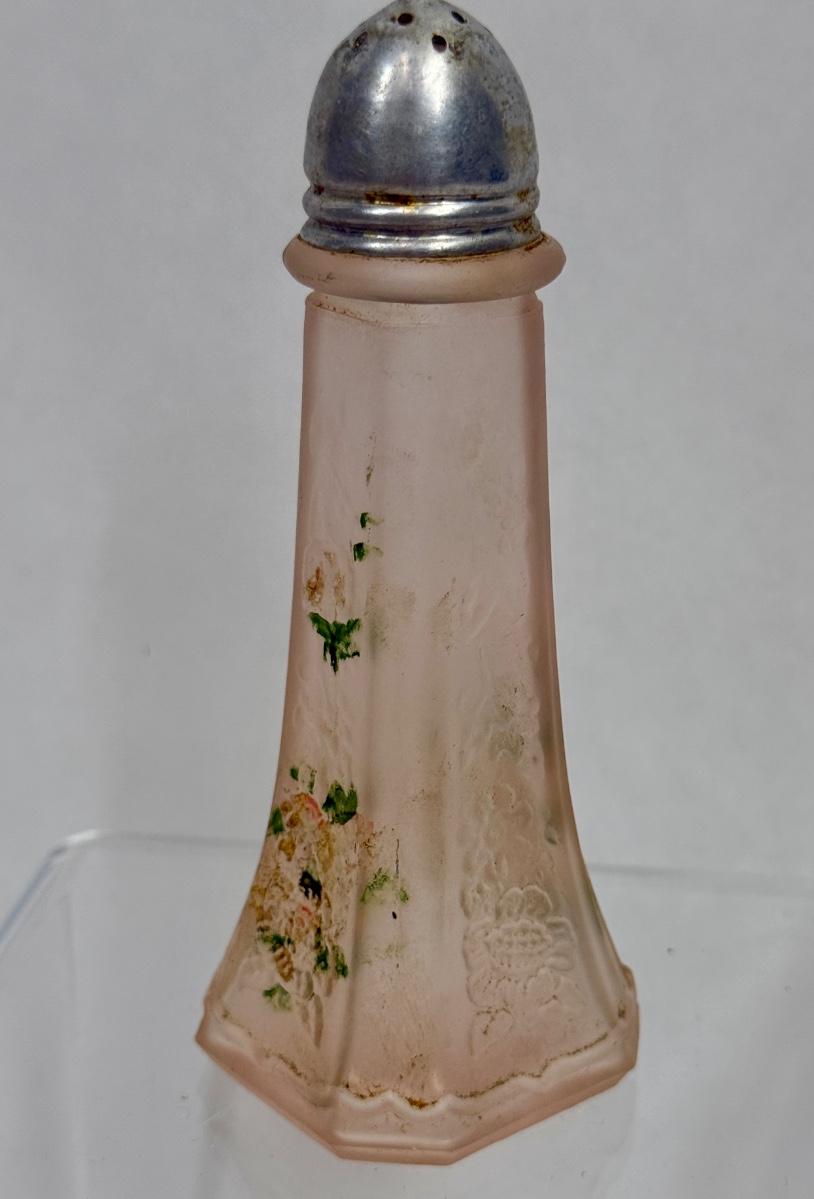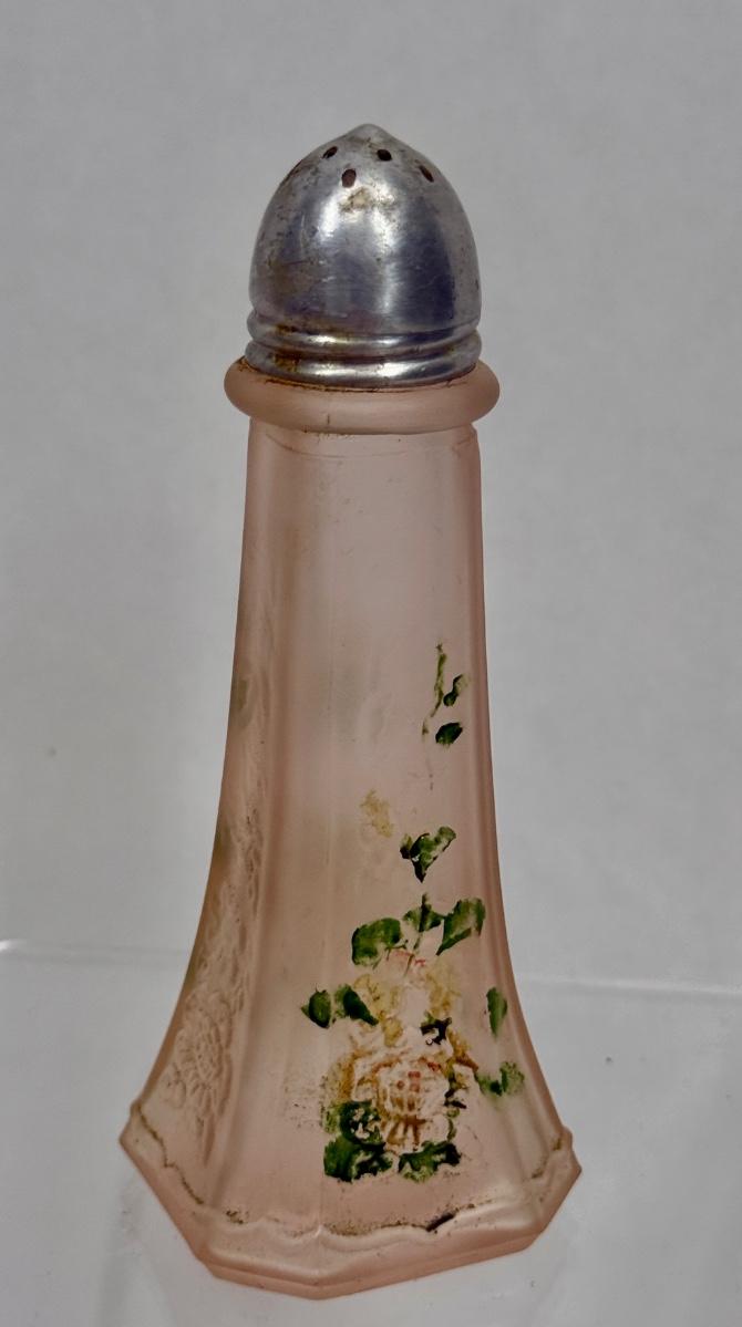 One Pink Depression Glass Shaker Mayfair Open Rose Frosted Pink 4" tall
