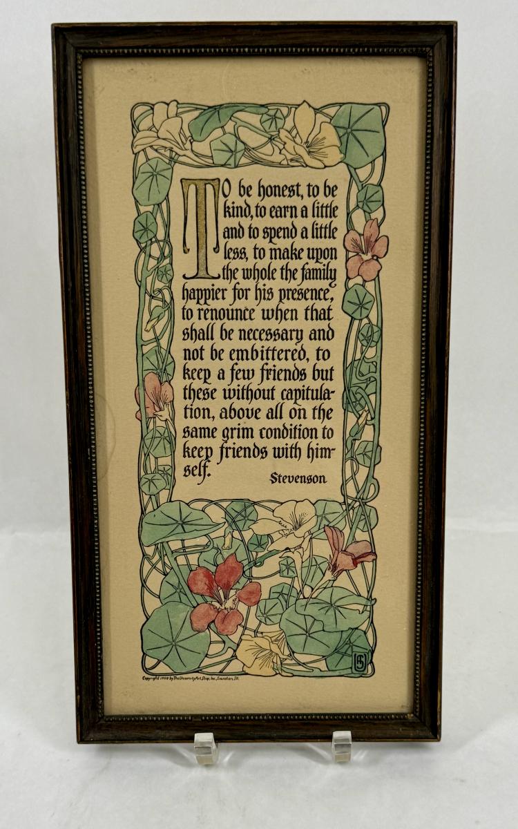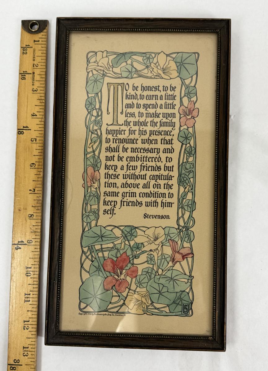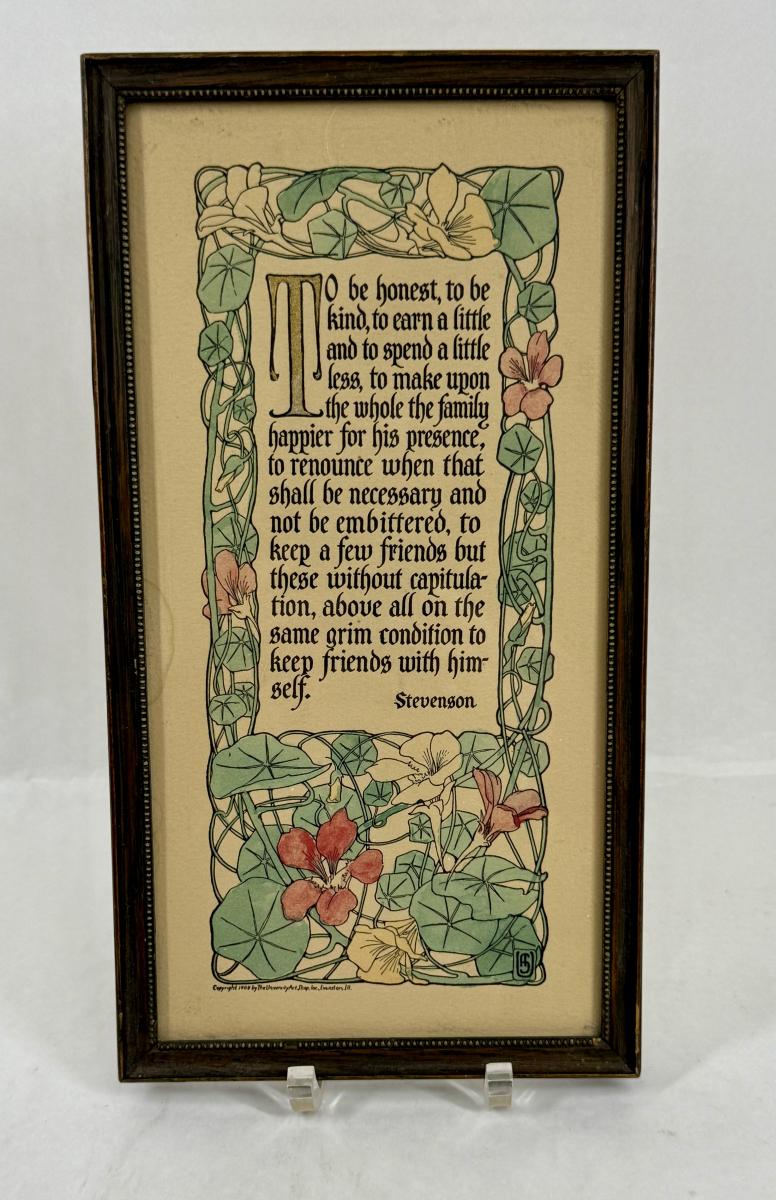 Vintage Framed Poem attributed to Robert Louis Stevenson Guide to a Virtuous Life