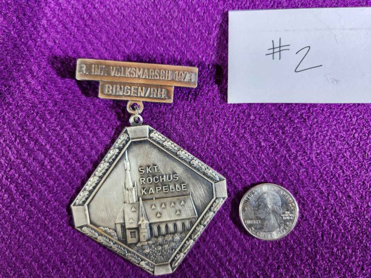 This auction lot is for a GERMAN-STYLE VOLKSMARCH MEDAL - #2 This medal is from the 1973 Bingen German March. There is an identical medal elsewhere in this auction.