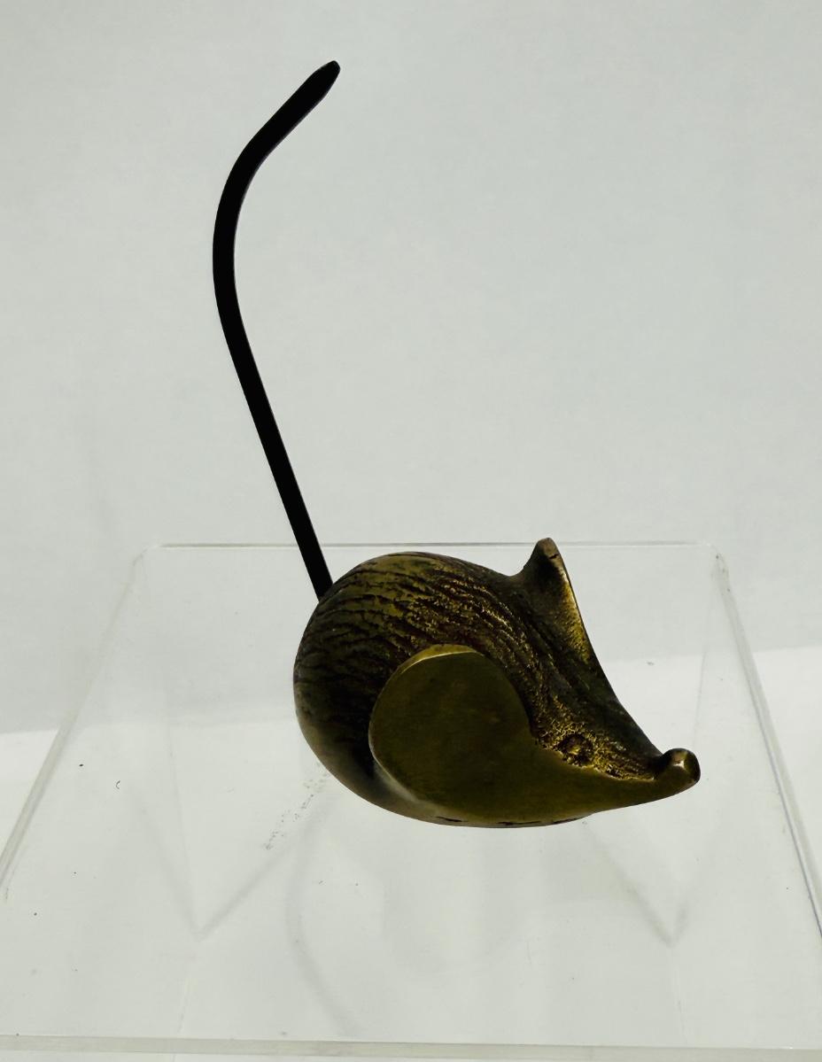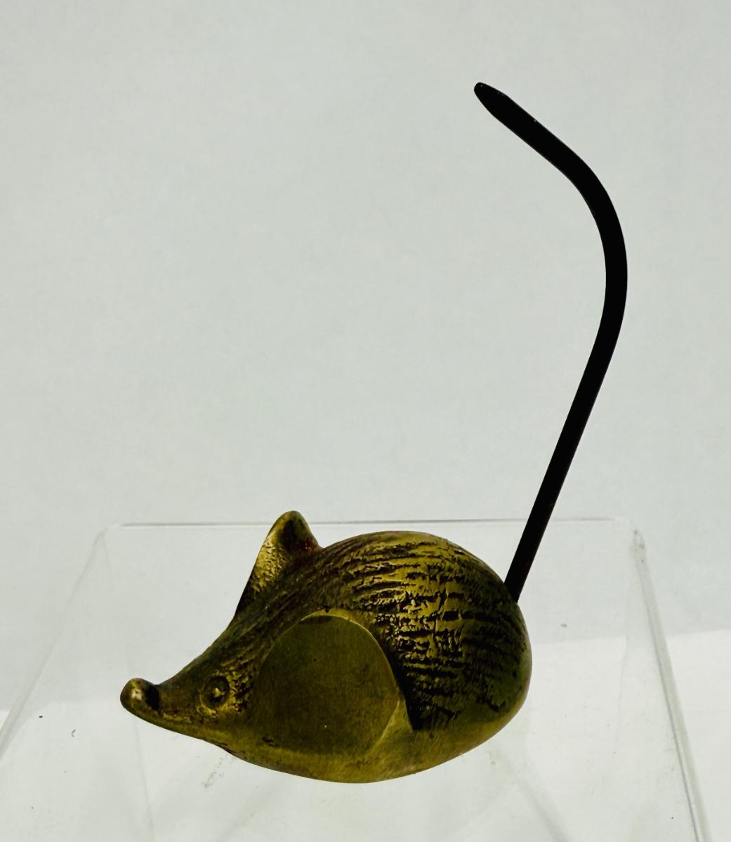 Vintage Brass Mouse Figurine Paperweight Note Holder Desk Decor Ring Holder Spike Tail