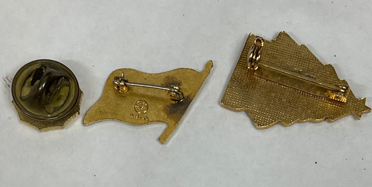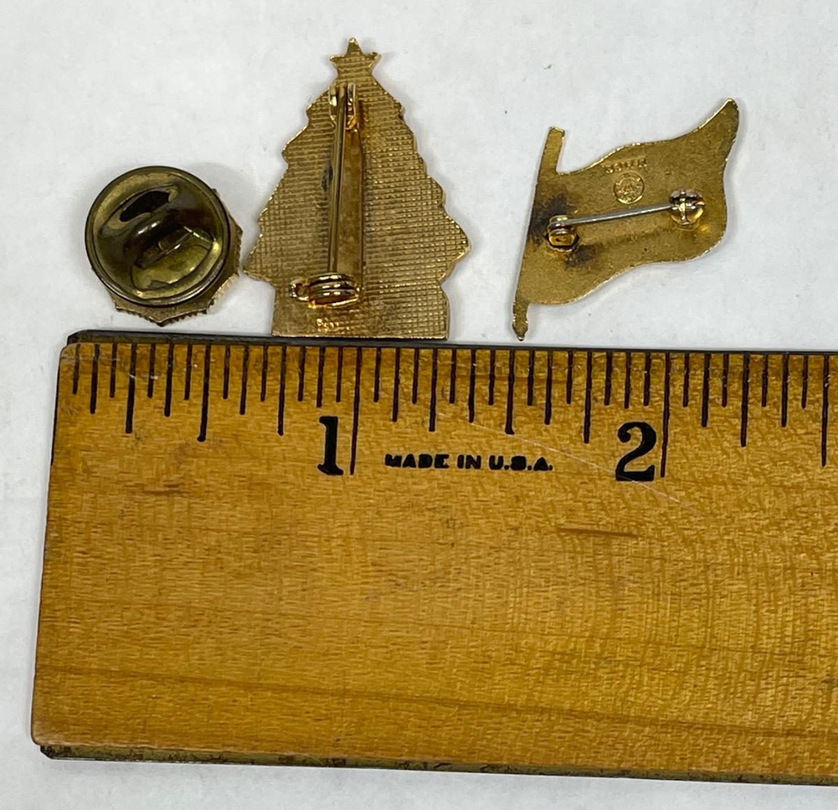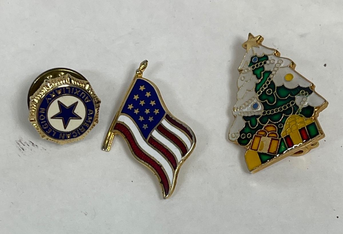 Lot of three Pins: American Legion Auxiliary, American Flag, Christmas Tree
