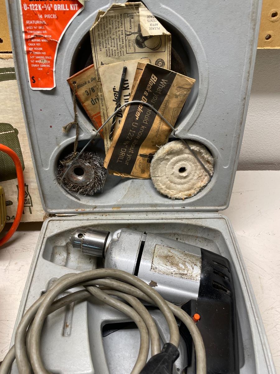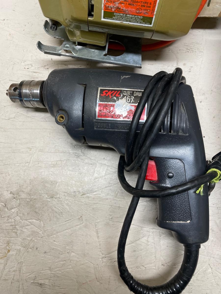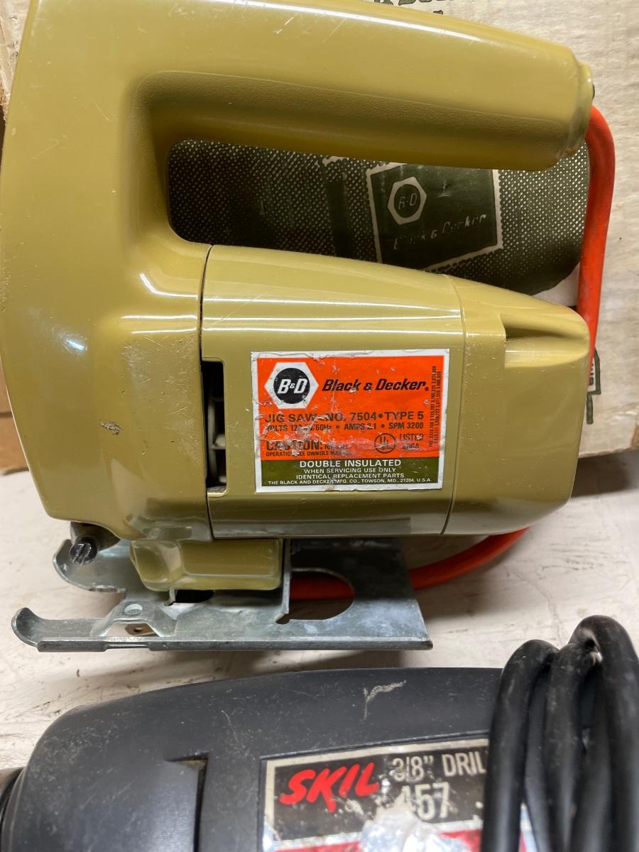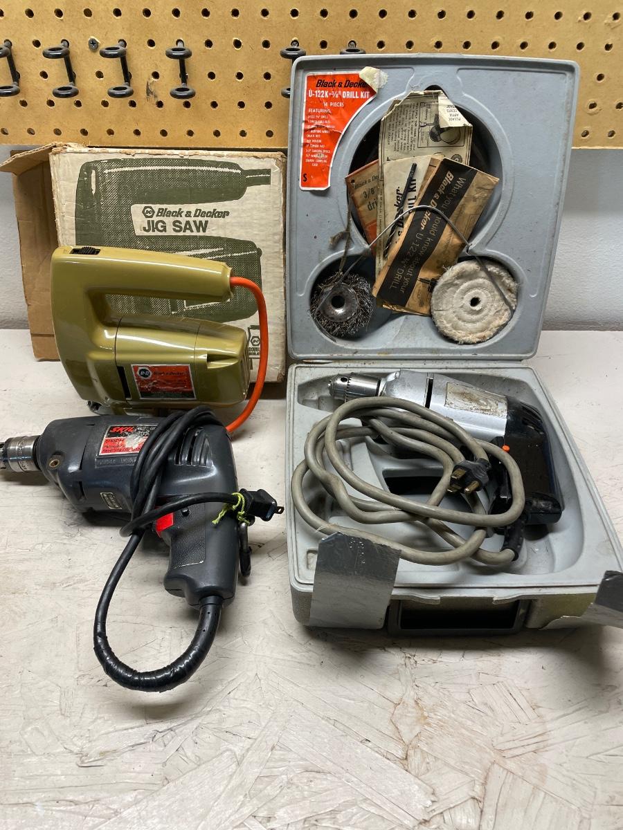 Includes Skip 3/8” drill, Black & Decker Jig Saw Type 5 and Black & Decker 3/8” drill kit. All work as they should.