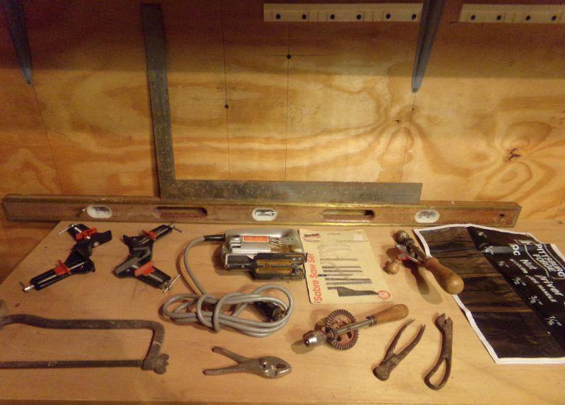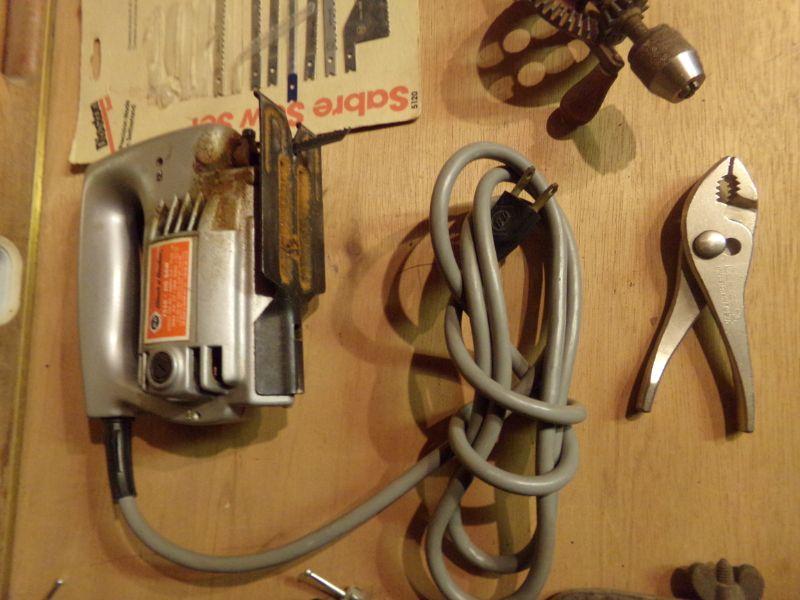 B-109  JIG SAW, HAND DRILL, ANGLES, PLIERS & NUT DRIVER SET