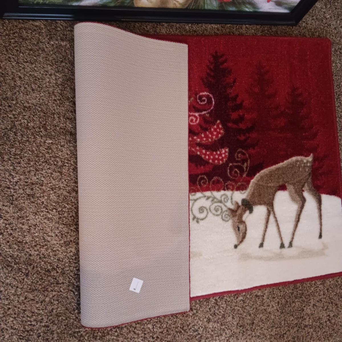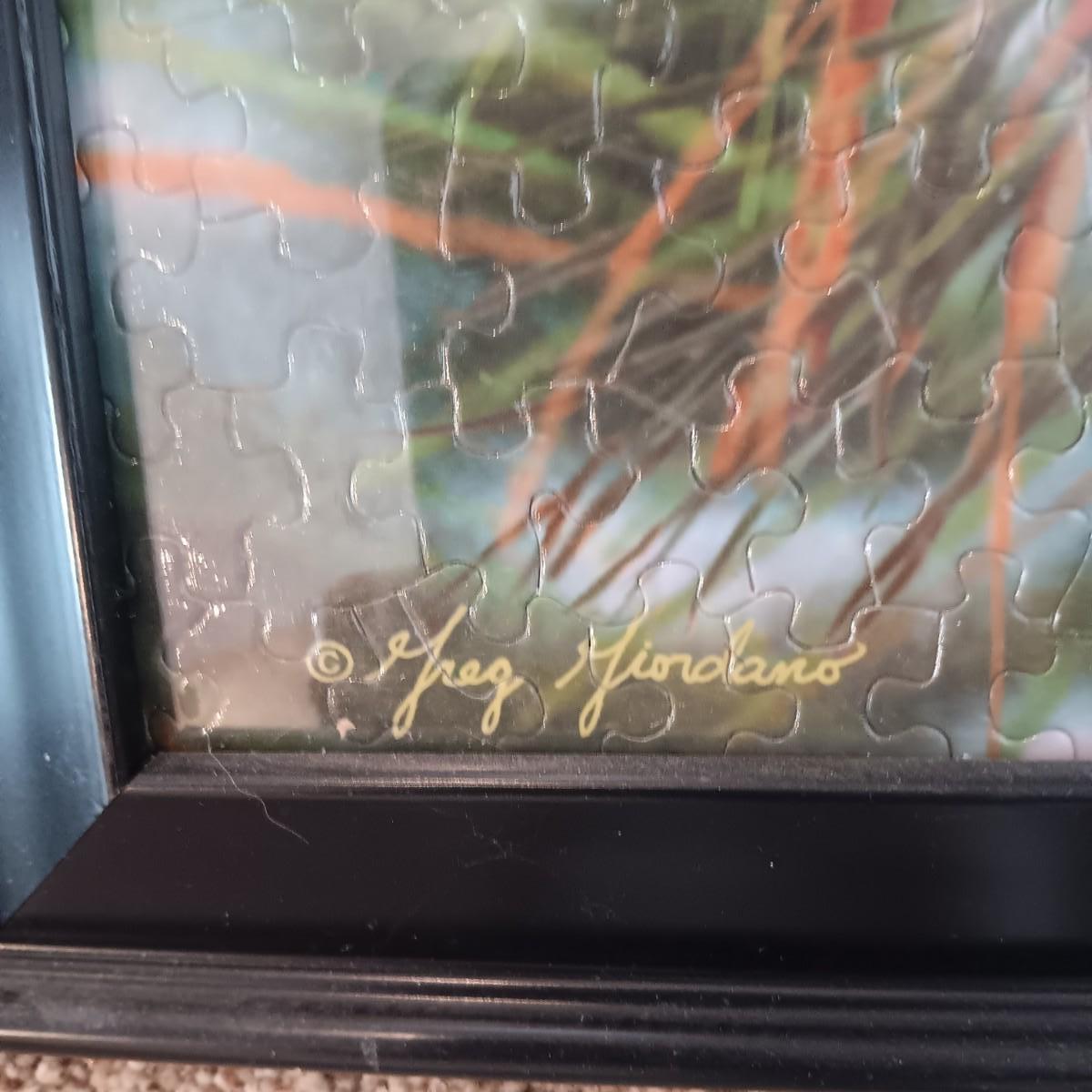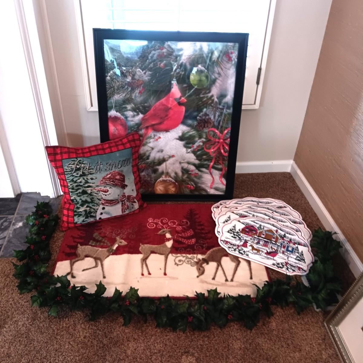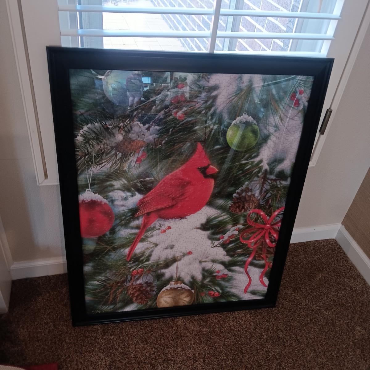 JIGSAW PUZZLE CARDINAL PICTURE, RUBBER BACK RUG, THROW PILLOW AND 5 PLACEMATS