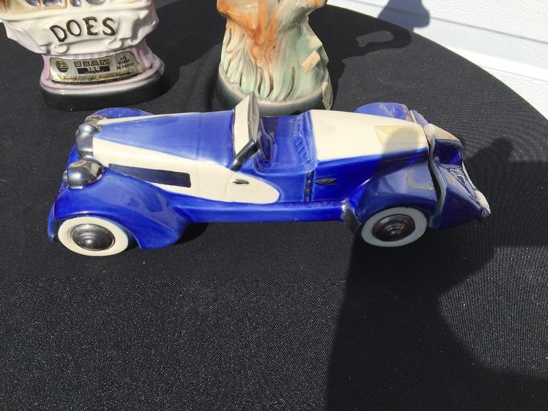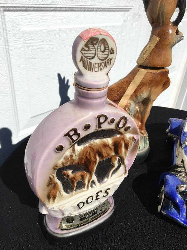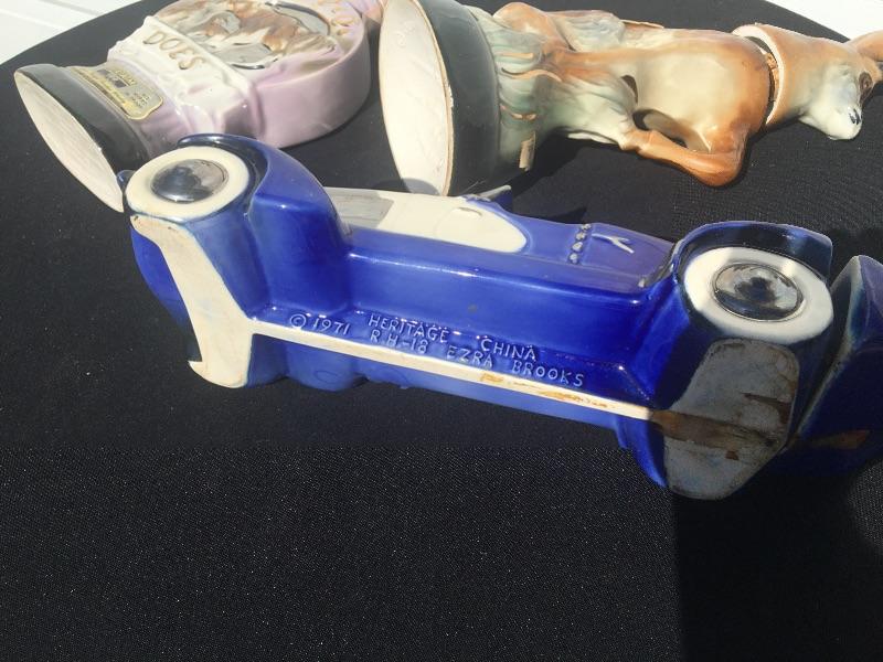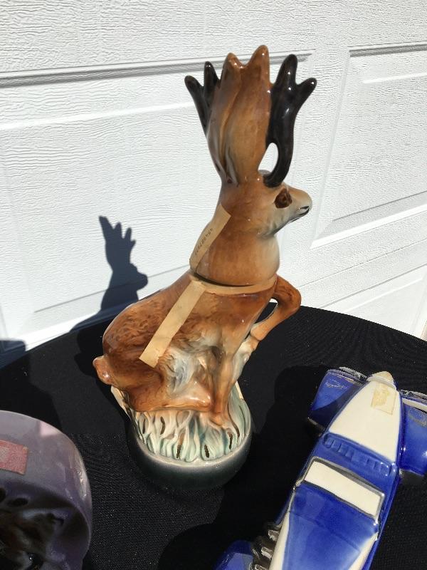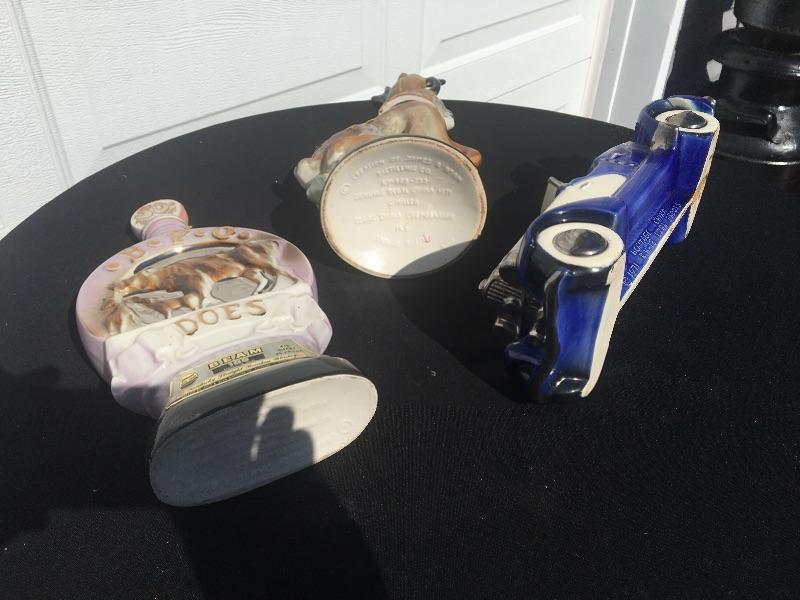JIM BEAM Collection of three collectible bottles 12 to 14 inches with stag and race car