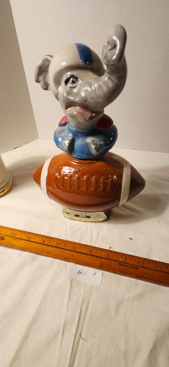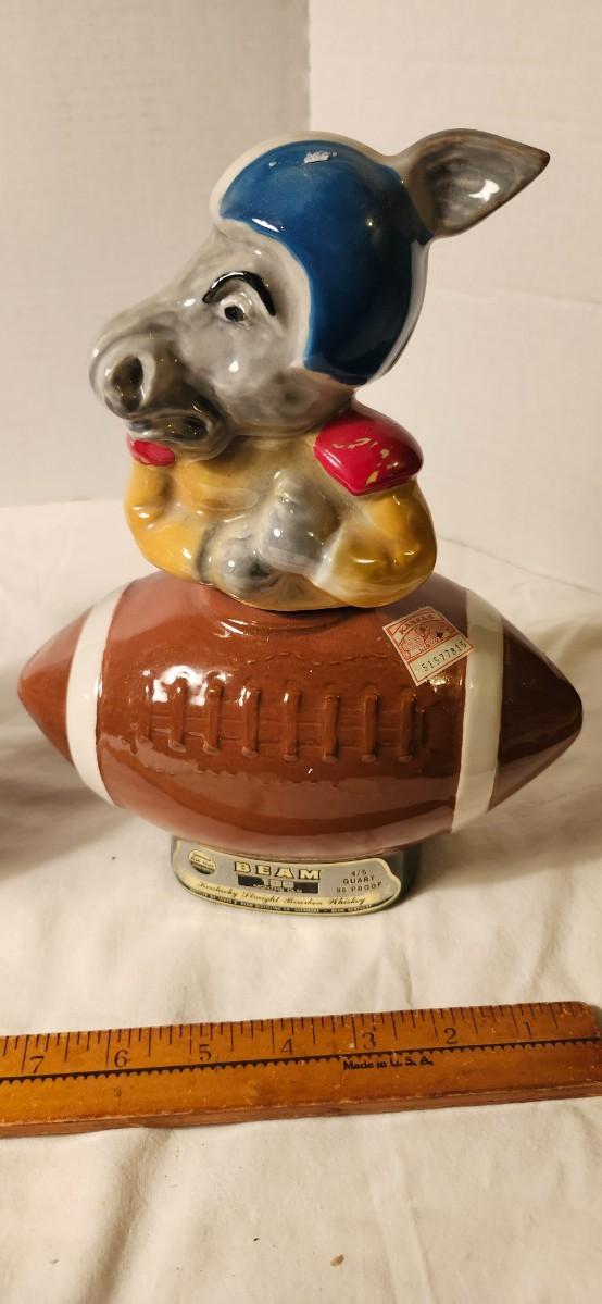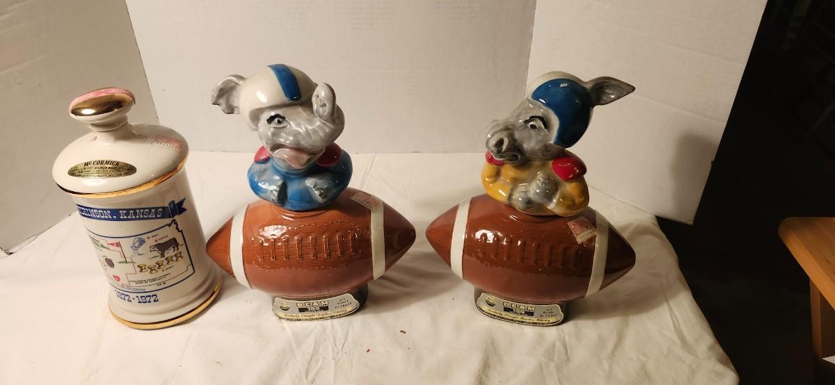 JIM BEAM EMPTY FOOTBALL DECANTER REPUBLICAN ELEPHANT & DEMOCRATIC DONKEY