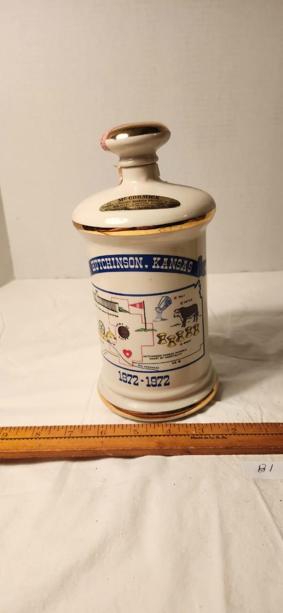872-1972 HUTCHINSON KANSAS CENTENNIAL CERAMIC MCCORMICK WHISKEY DECANTER