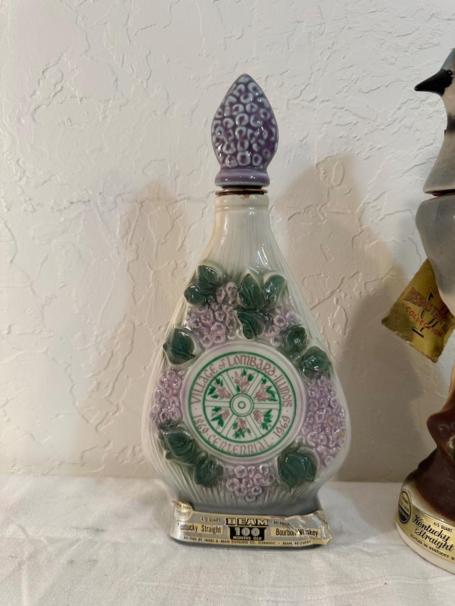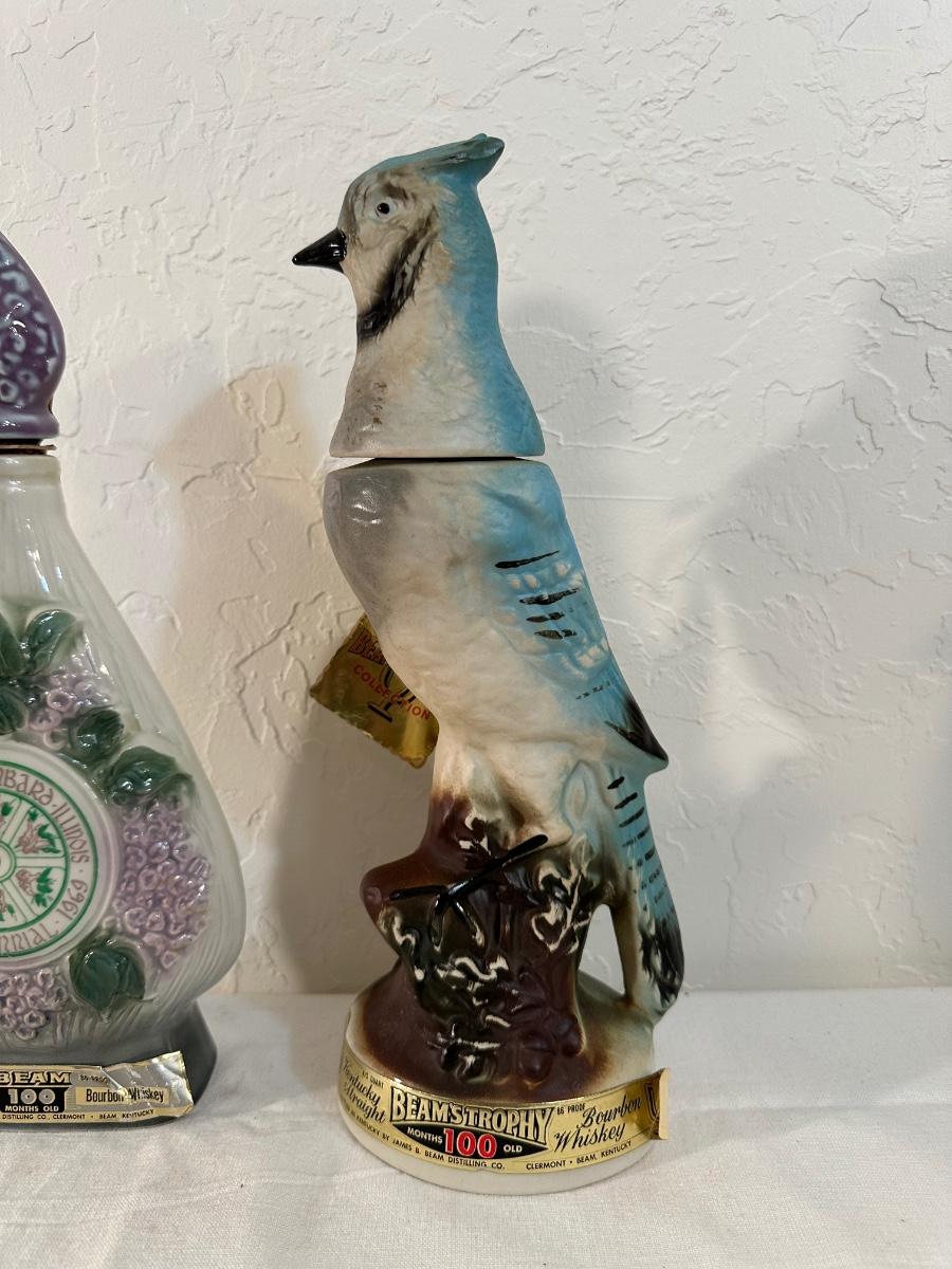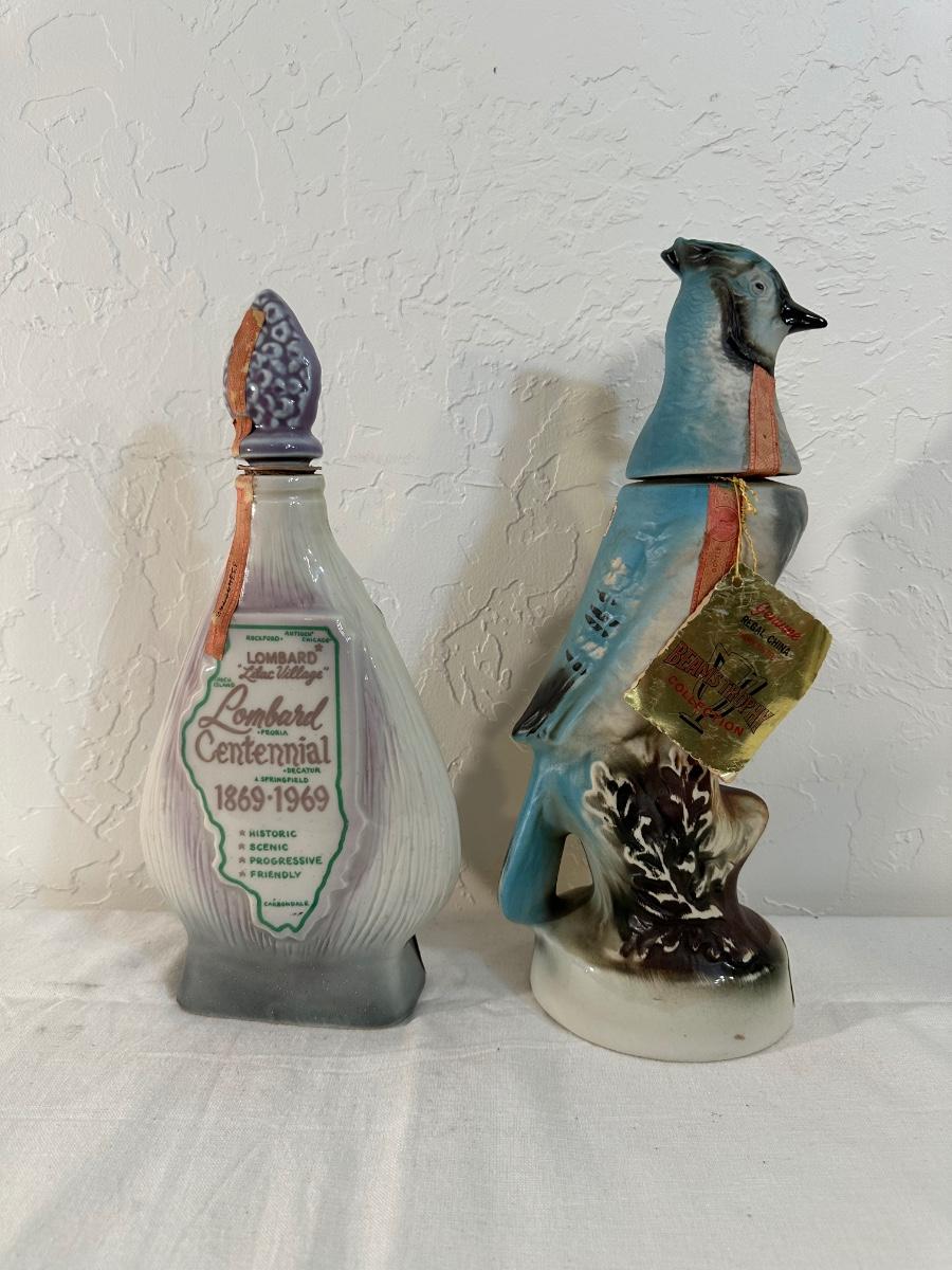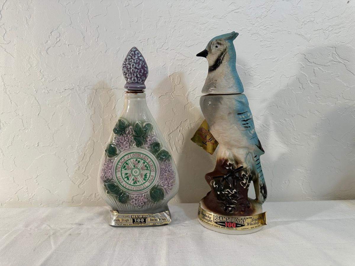 JIM BEAM LOMBARD LILAC VILLAGE & BLUE JAY DECANTERS