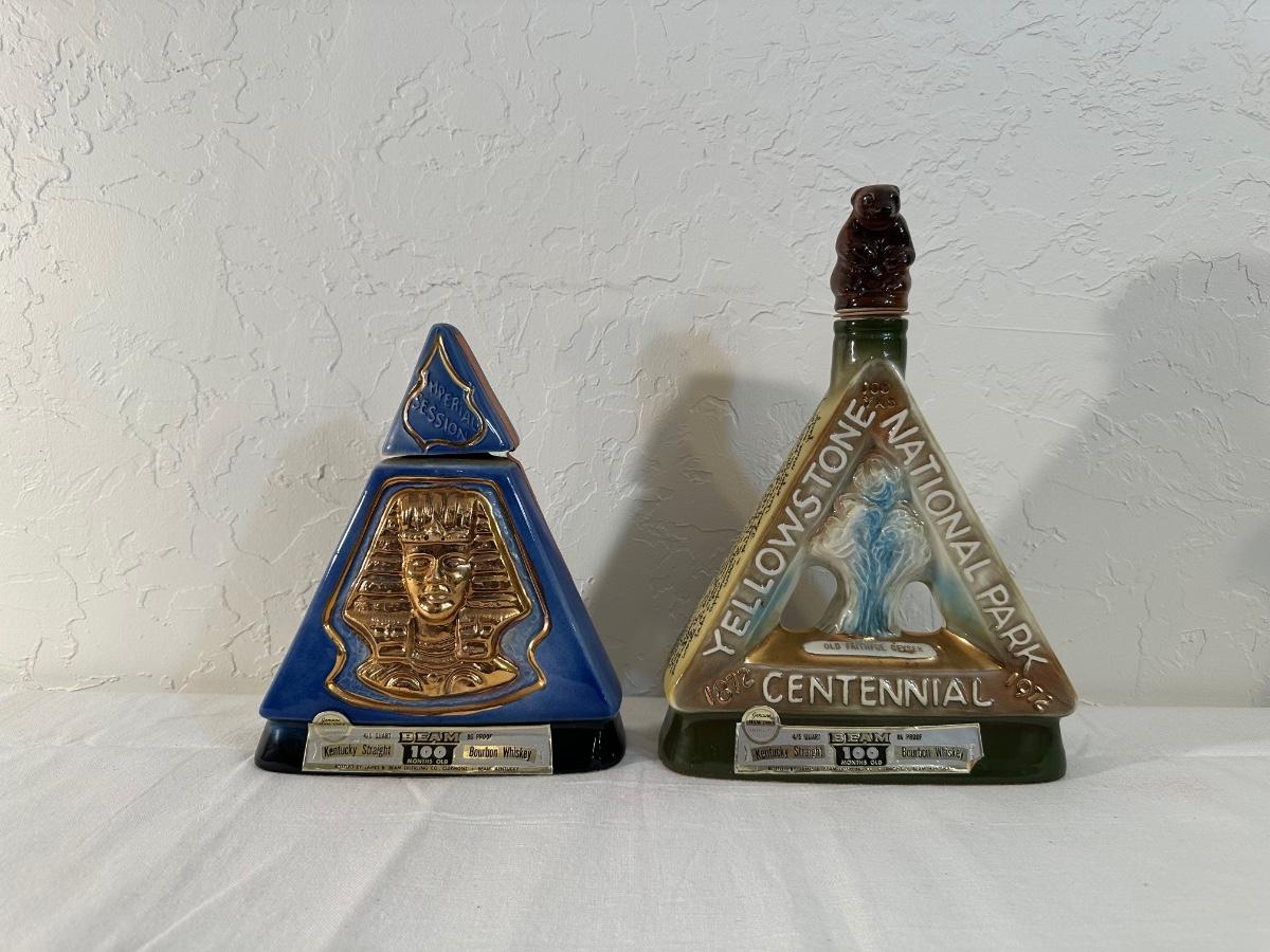 JIM BEAM "YELLOWSTONE NAT. PARK" & "KING TUT" DECANTERS