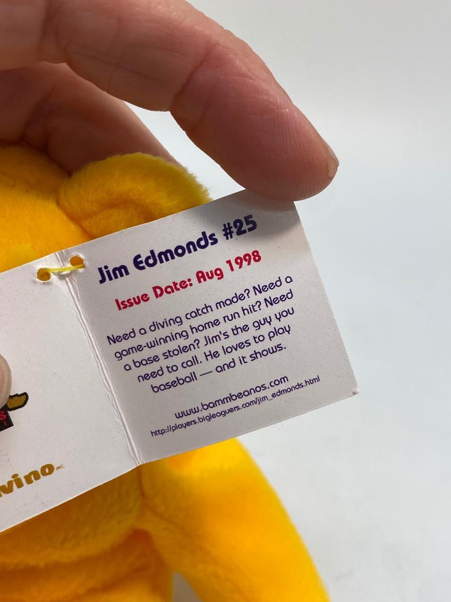 Jim Edmonds #25 Salvino’s Bamm Beano’s Plush Stuffed Bear. Good condition. Original hang tag attached.
