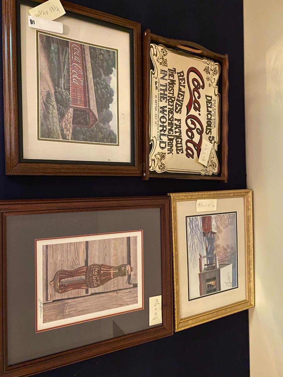 3 Jim Harrison Coca Cola Framed Prints, 1 Coca Cola tray