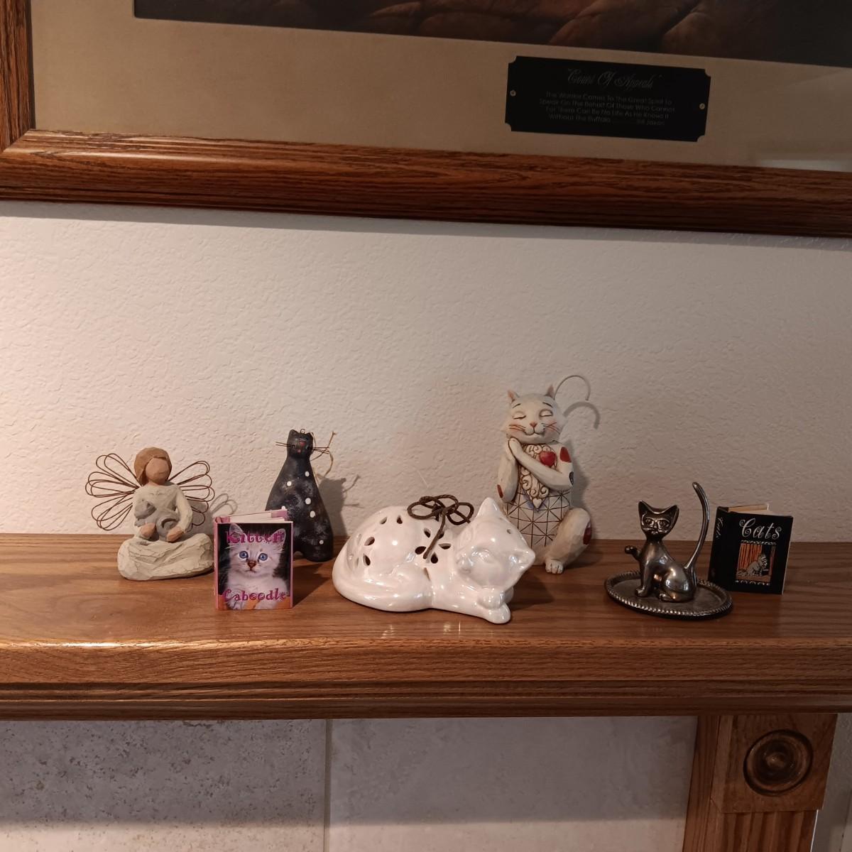 JIM SHORE CAT, PEWTER CAT RING HOLDER, WILLOW TREE ANGEL, MINIATURE CAT BOOKS AND MORE