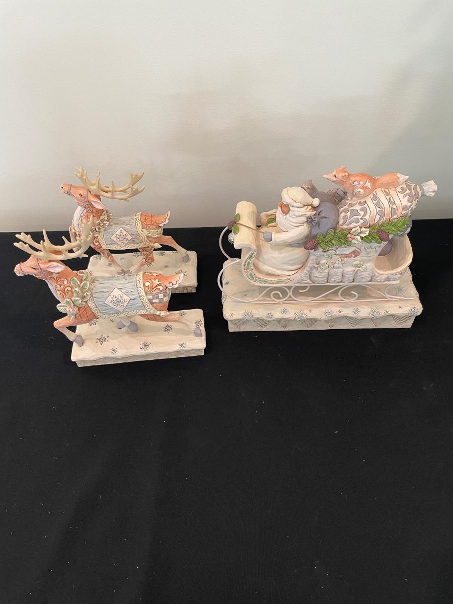 Jim Shore Christmas Sleigh, Santa and Reindeer set