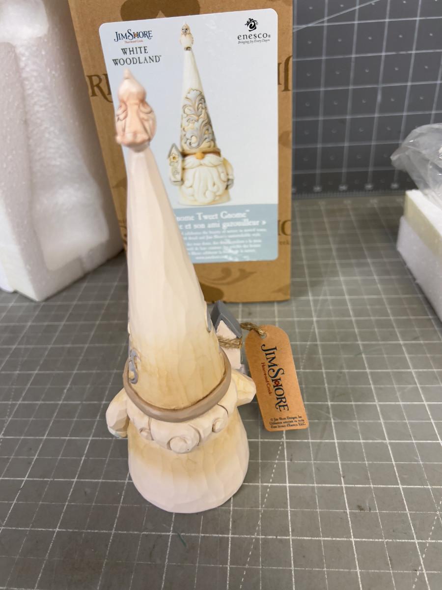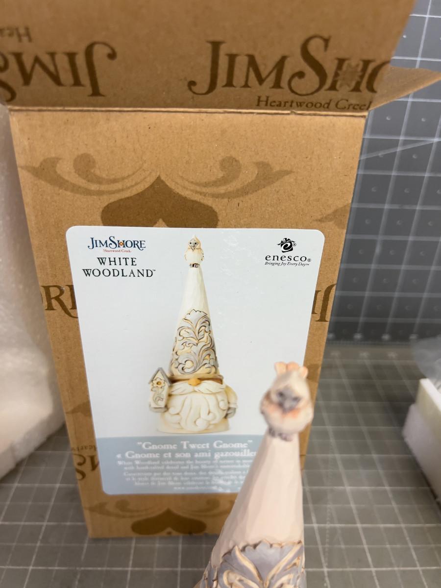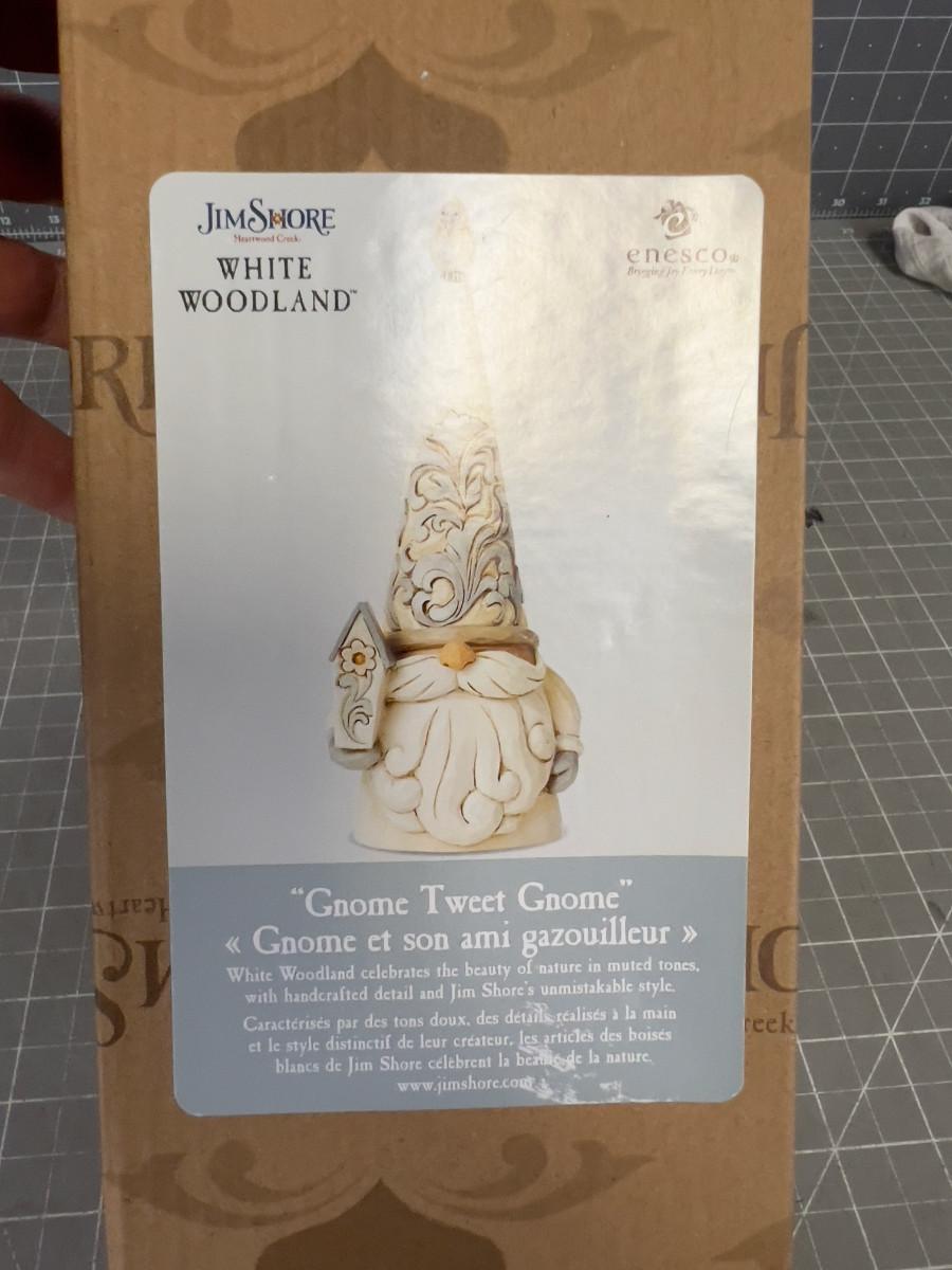 Jim SHORE: Gnome Tweet Gnome, White Woodland, NEW in the Box.