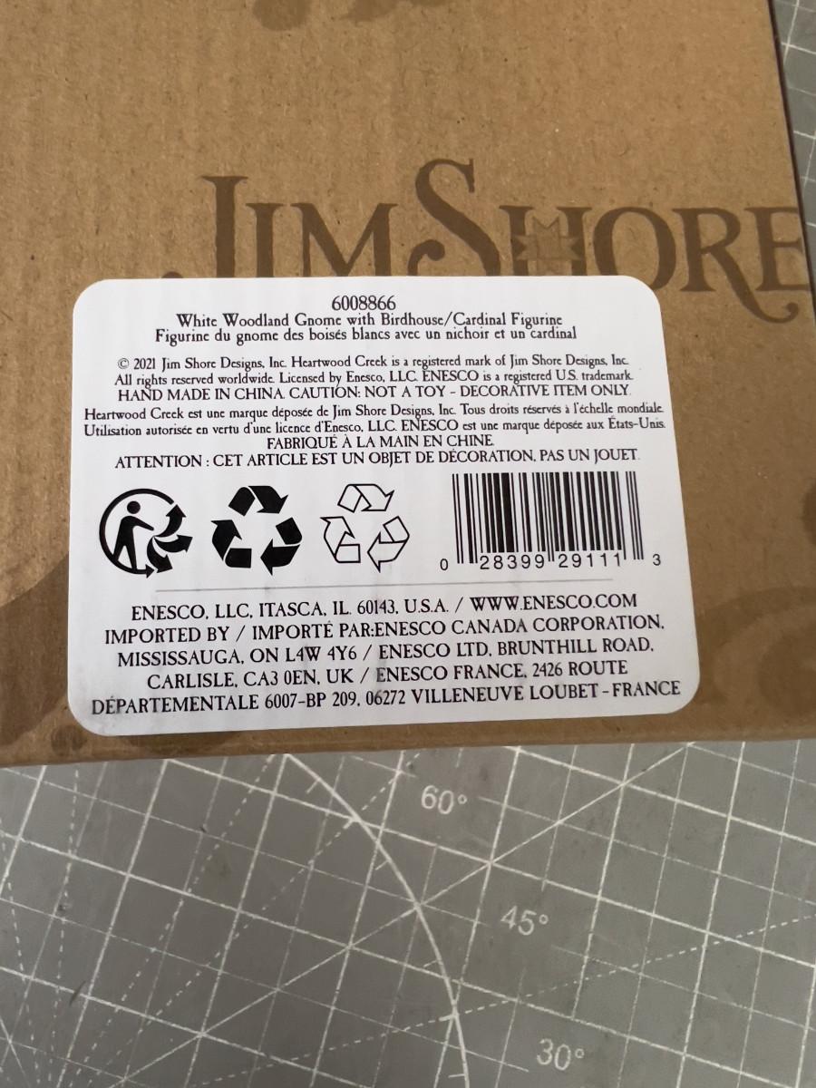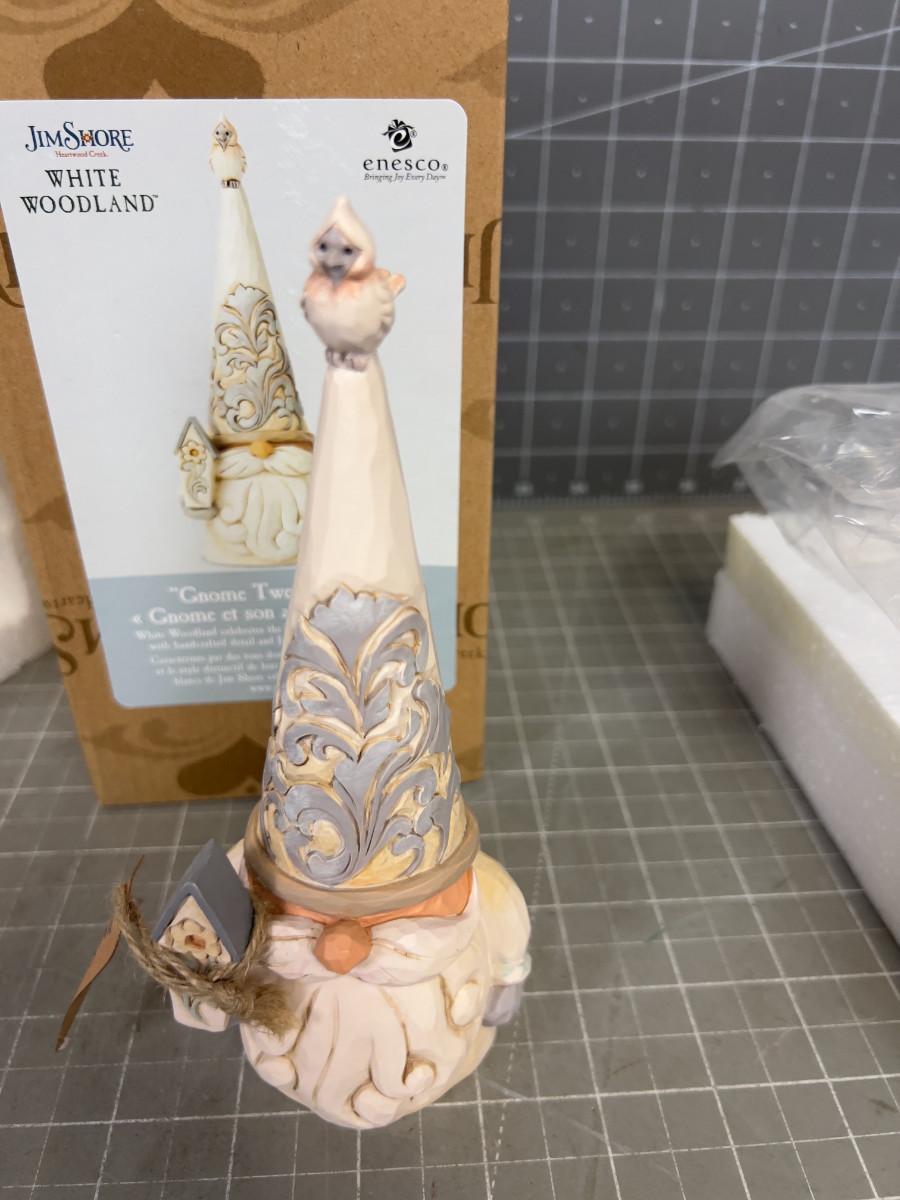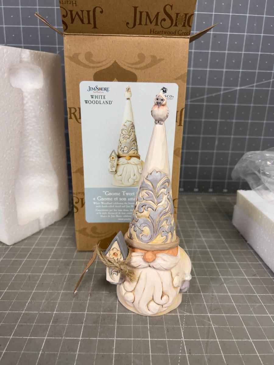 Jim SHORE: Gnome Tweet Gnome, White Woodland, NEW in the Box.