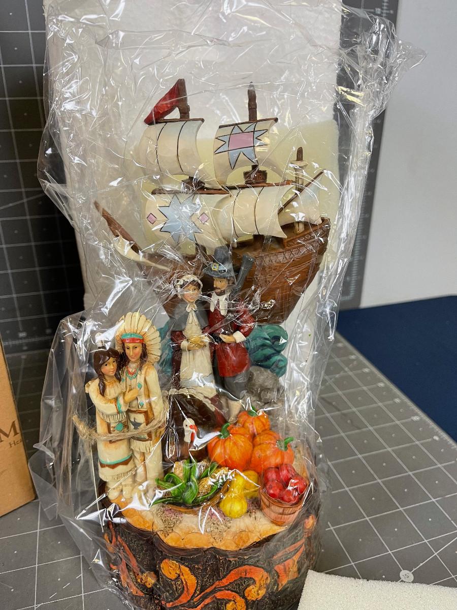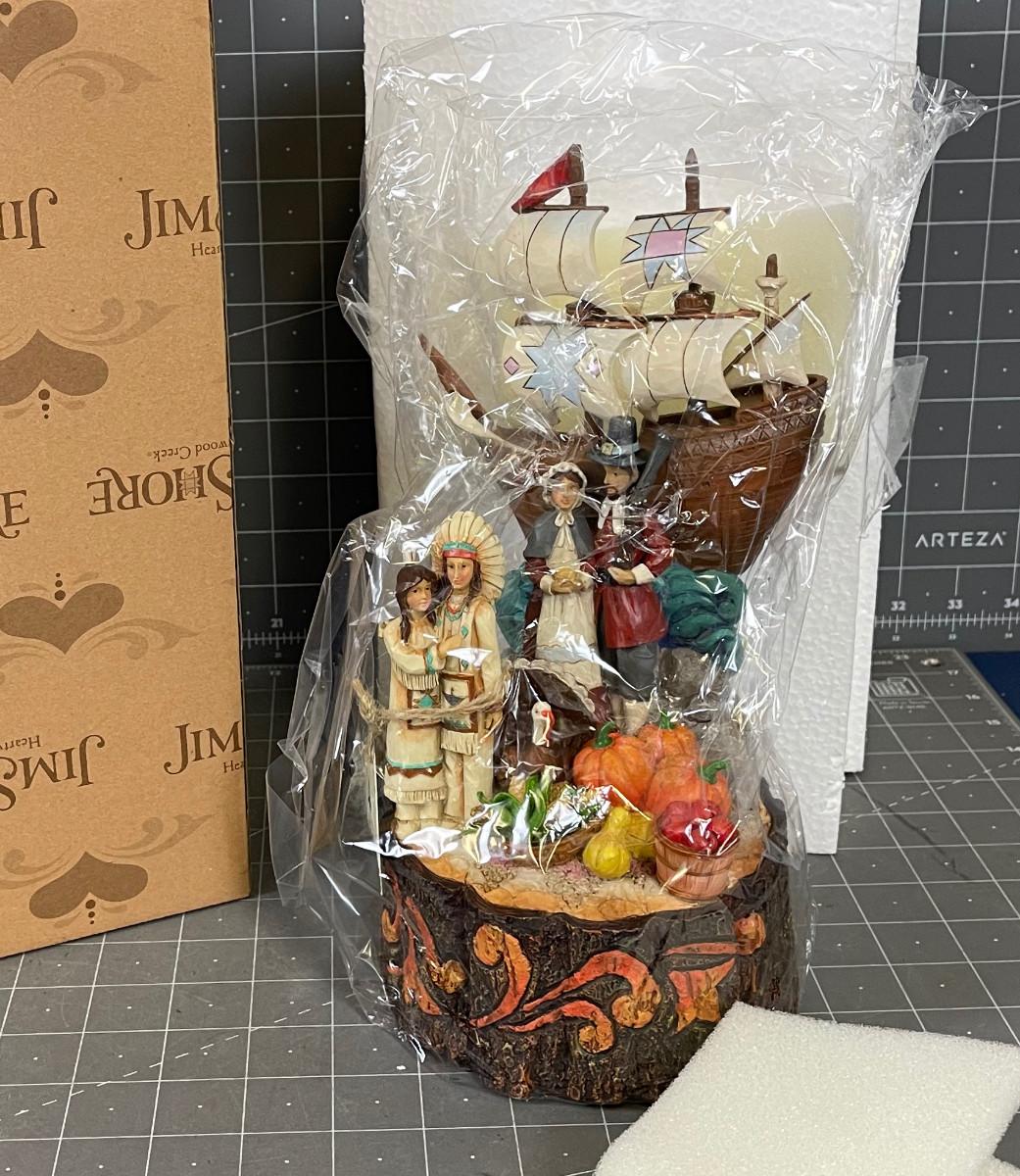 Jim Shore Hartwood Creek Pilgrims With Mayflower Figurine.
