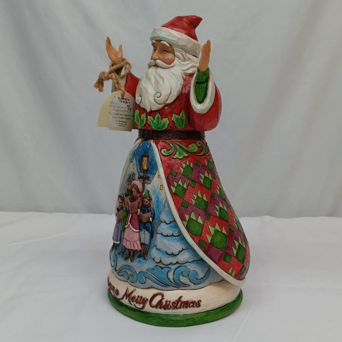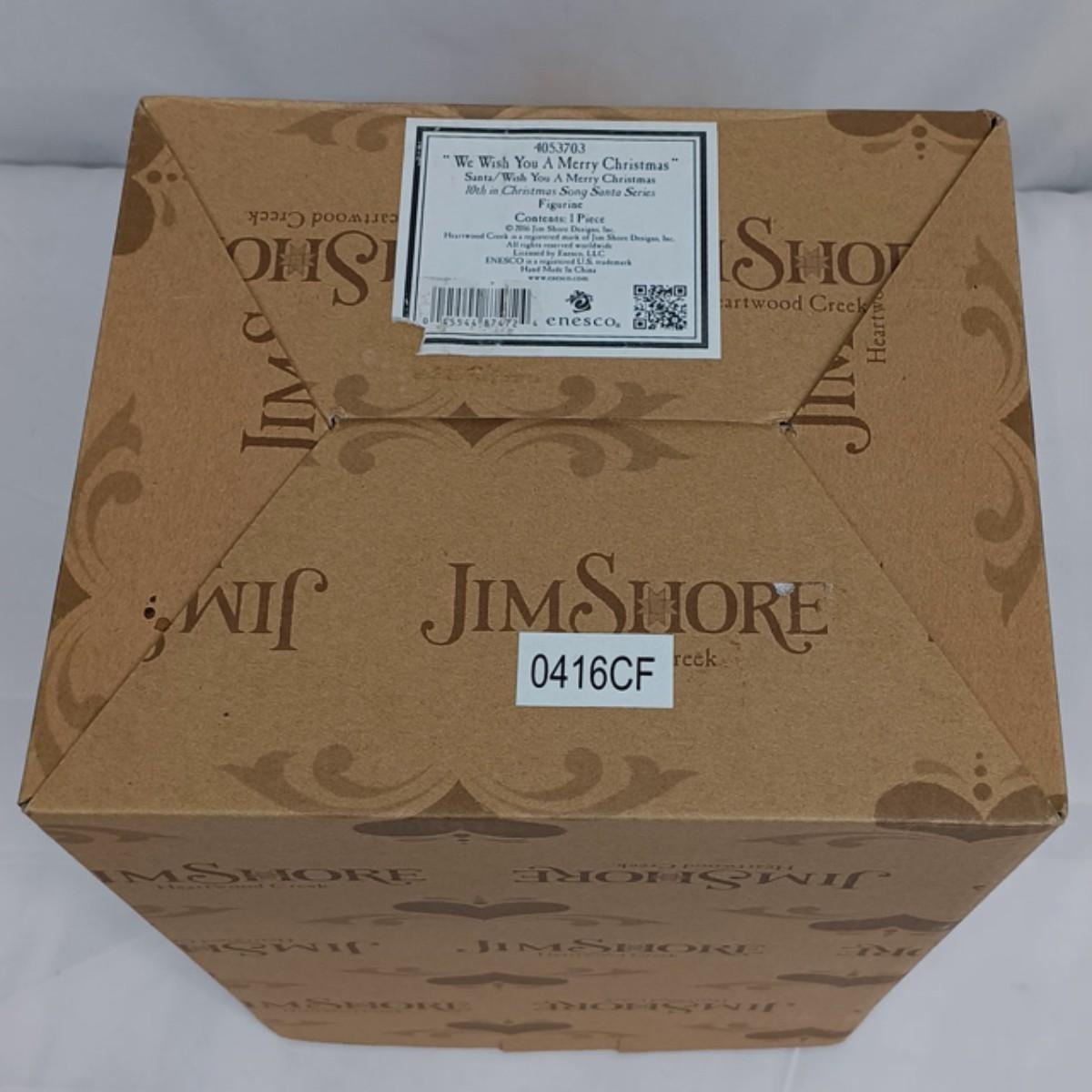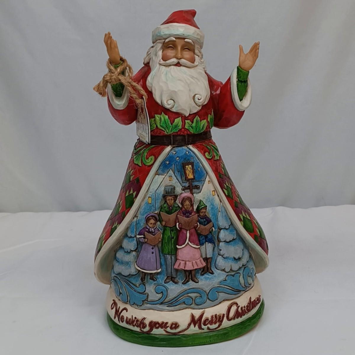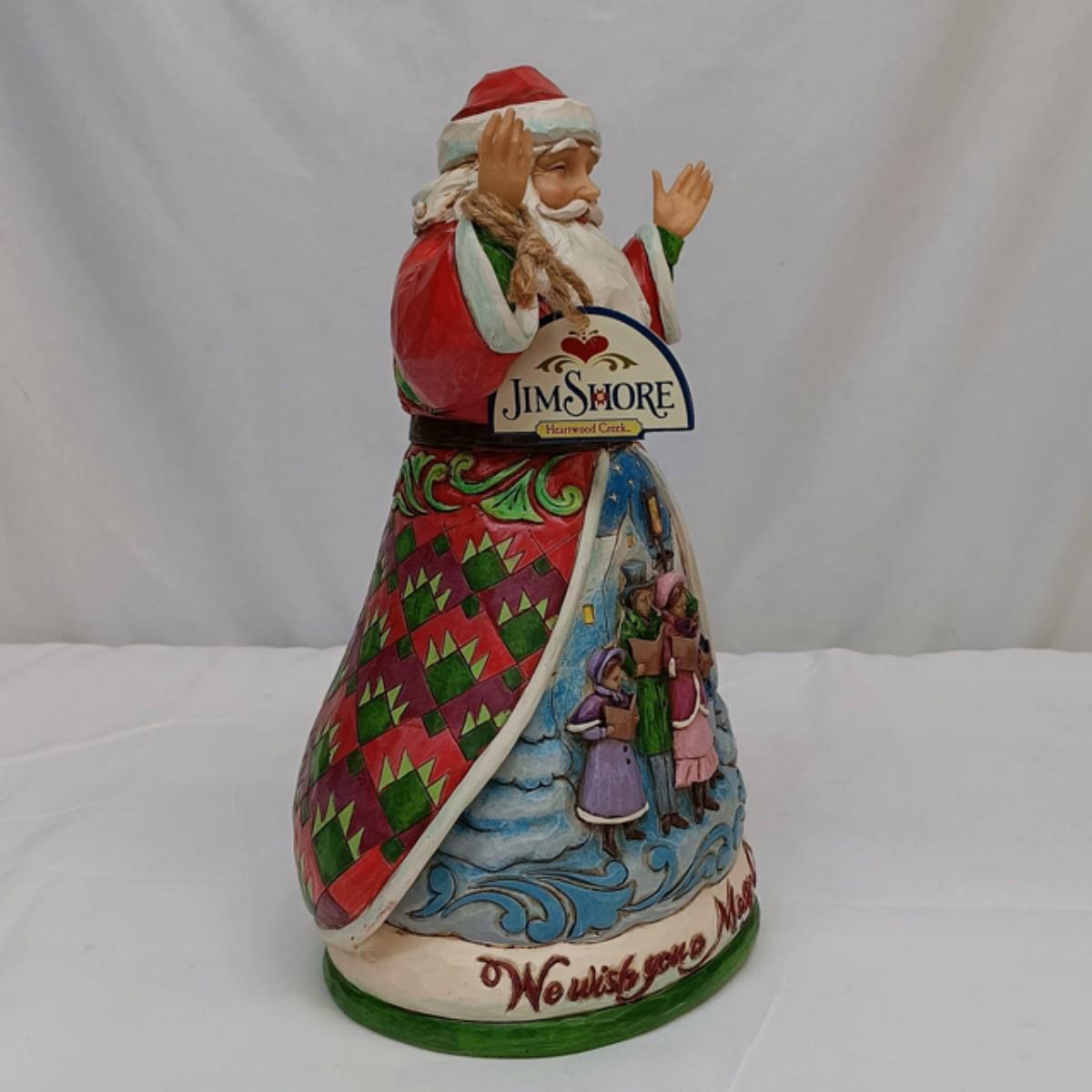 this is a brand new, in the box Jim Shore "We Wish You A Merry Christmas" figurine. The piece measures approximately 10" tall.