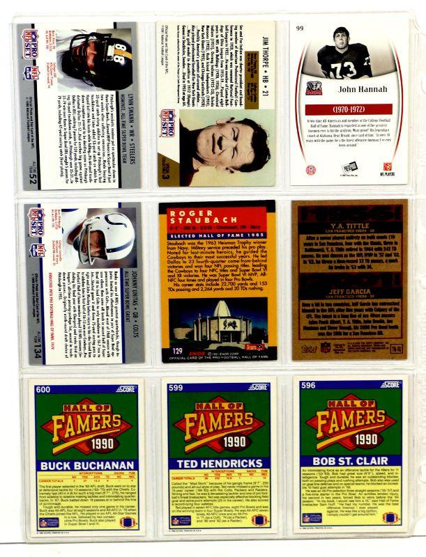 JIM THORPE John Hannah LYNN SWANN BUCK BUCHANAN FOOTBALL CARDS SET OF 9